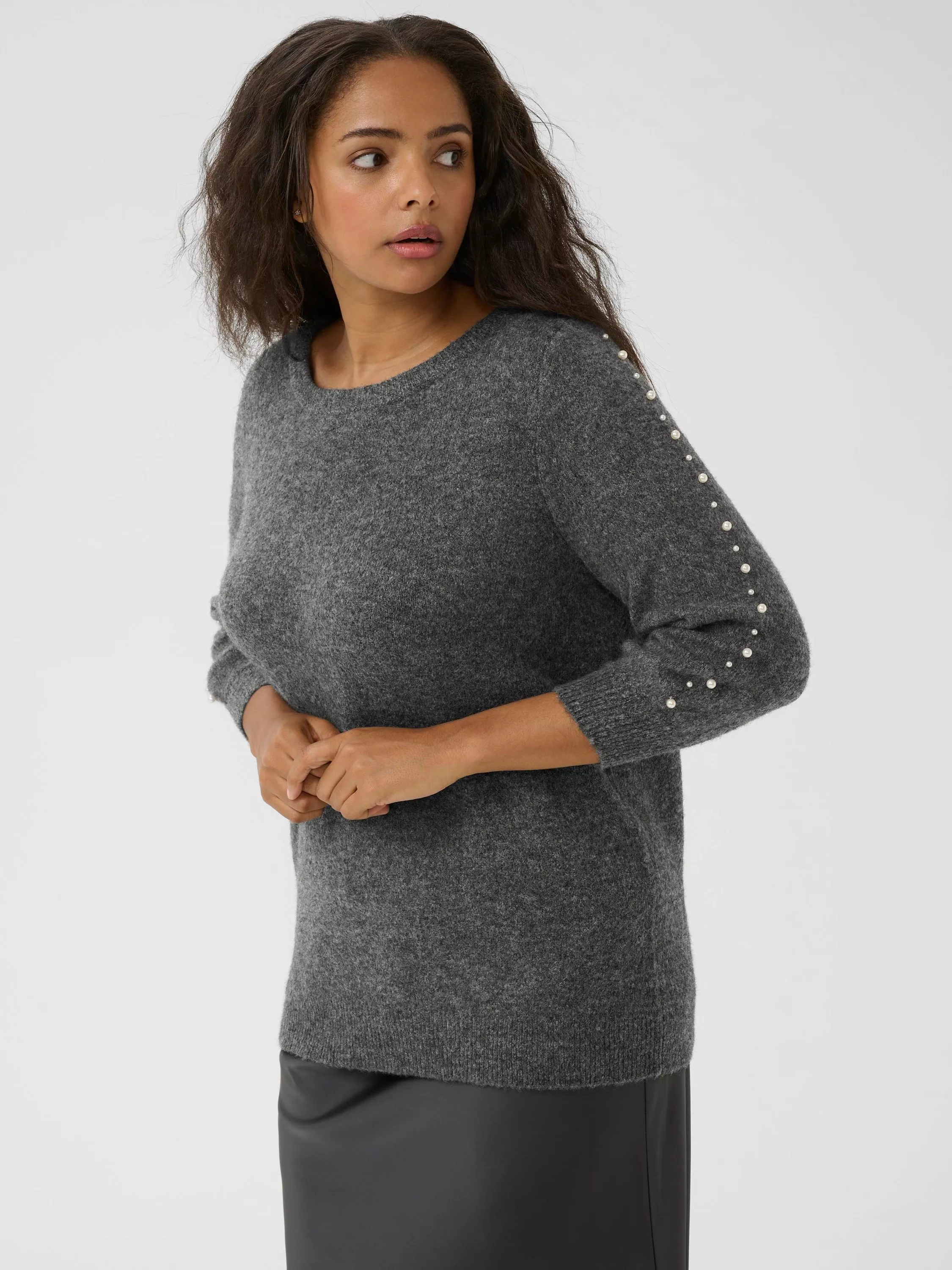 KAFFE reimagines comfort with this wool blend jumper. Its crew neck and three quarter sleeves lend a modern edge, while subtle embellishments invite a second glance.