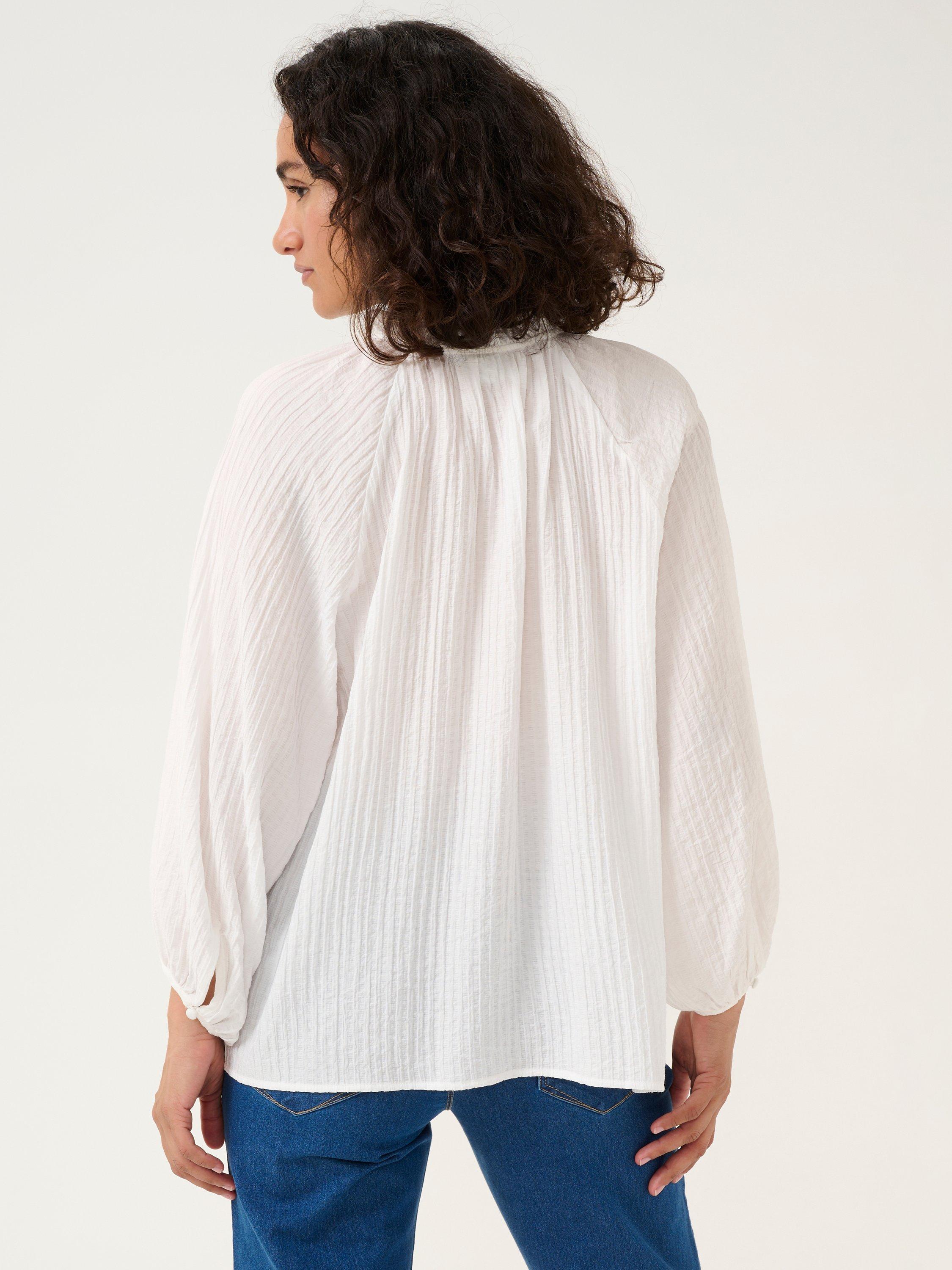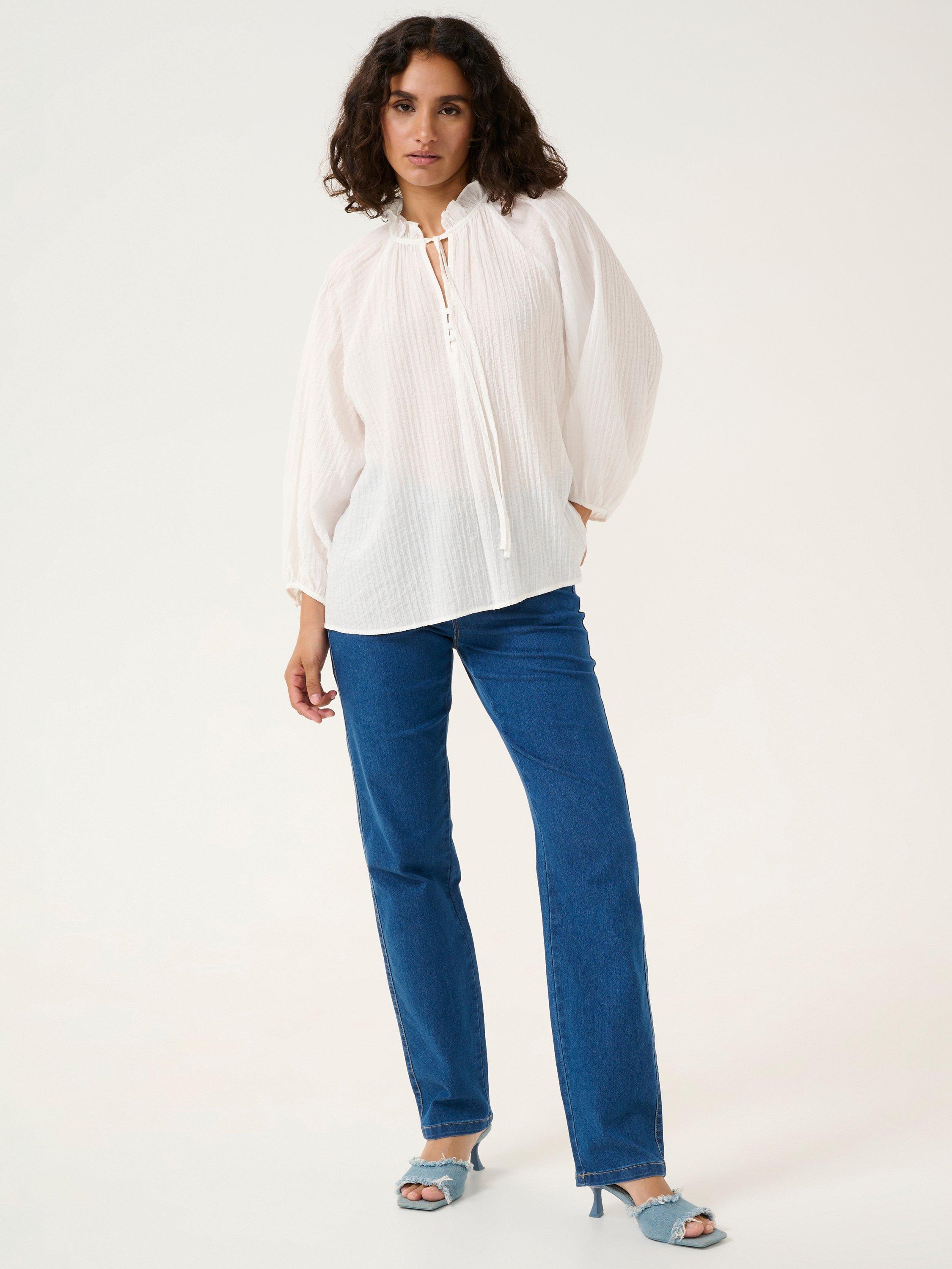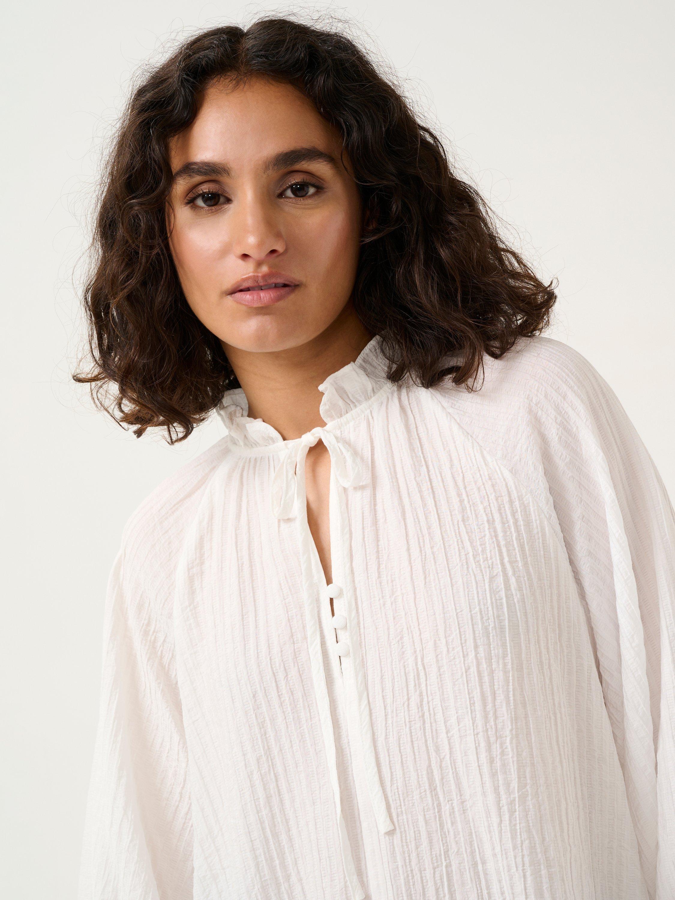 An effortless choice, this blouse from KAFFE will give your wardrobe the refresh it needs. With a V-notch henley neck with a frilled collar, buttons and tie-fastening, it has a regular fit and voluminous elasticated cuff sleeves.