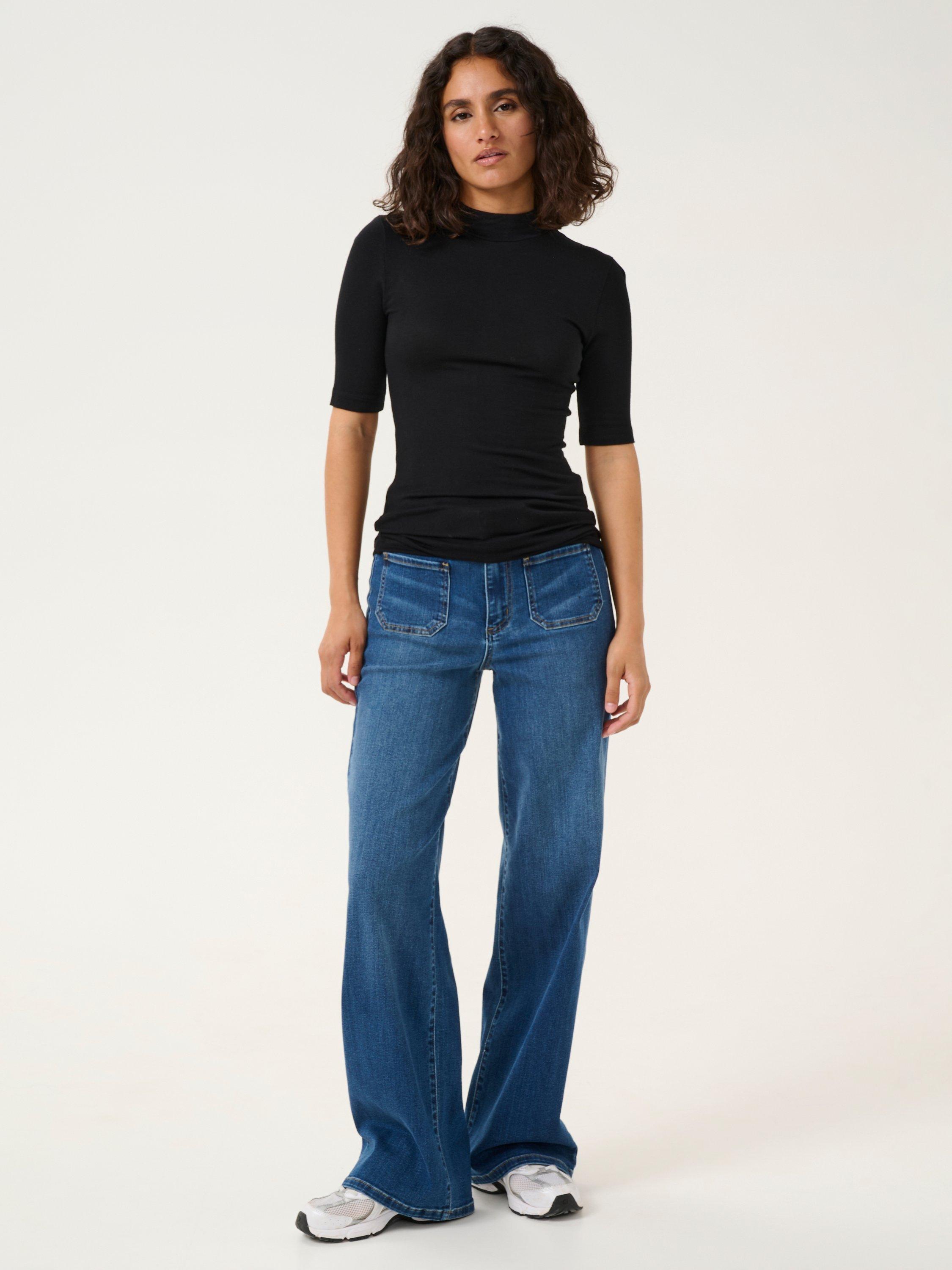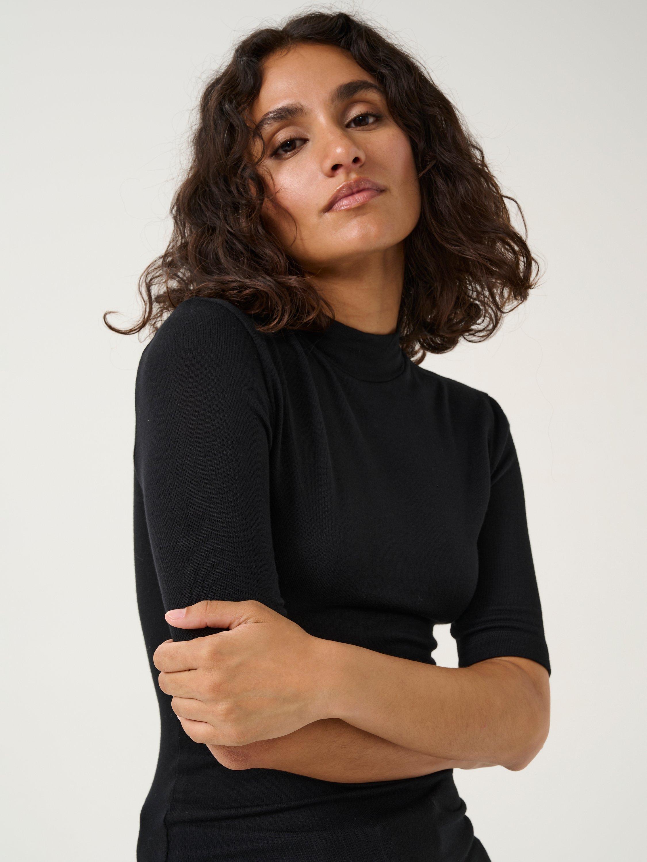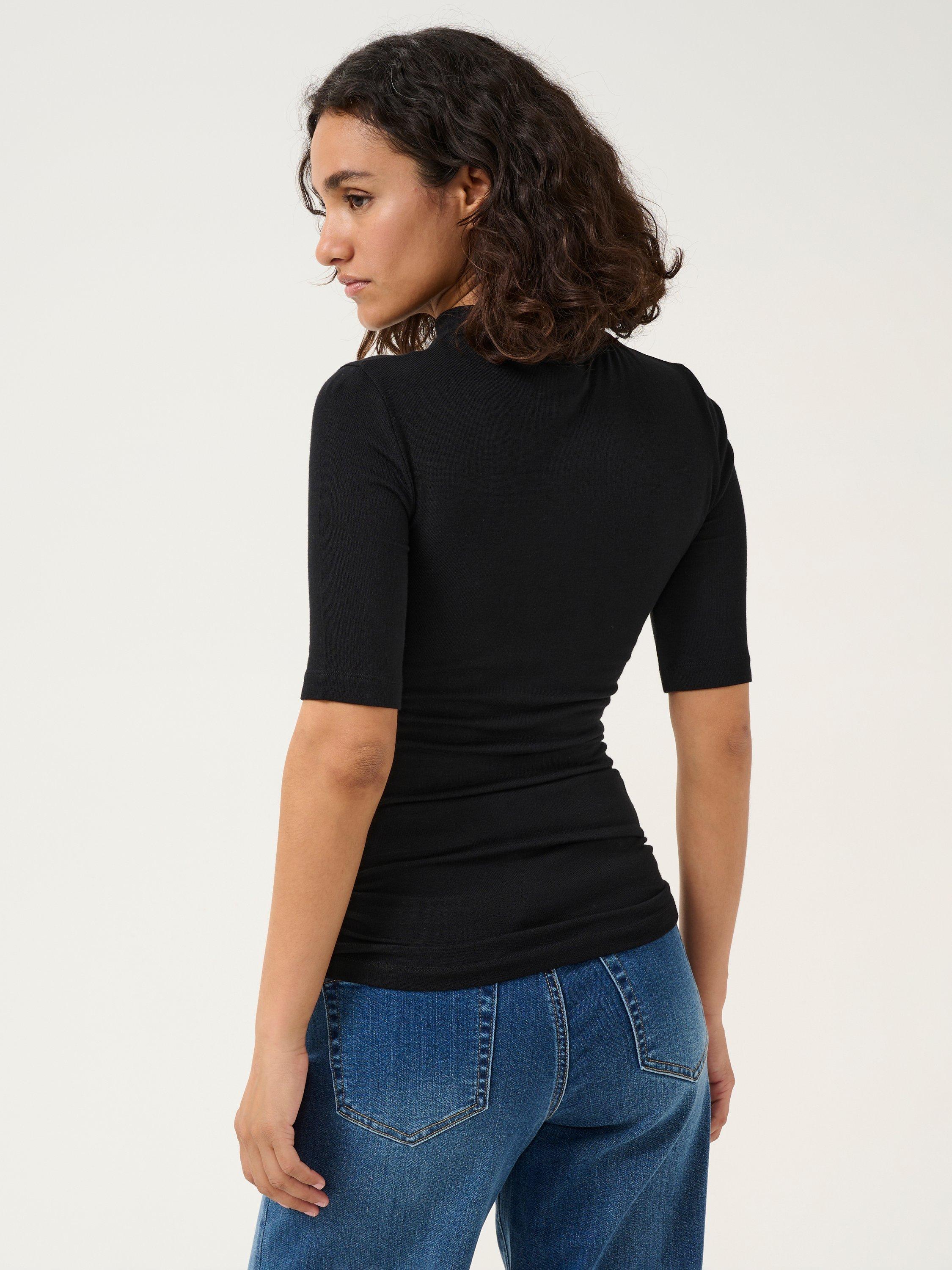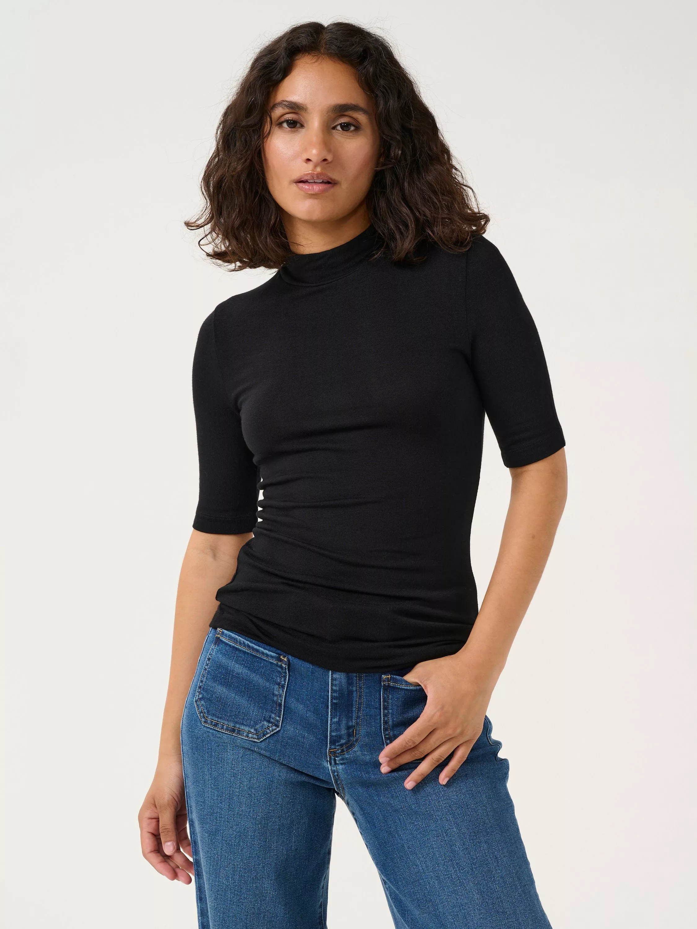 For the casual every day, this t-shirt from KAFFE allows for endless styling opportunities. With a turtleneck, elbow length sleeves and a slim fit, it is made in a soft and stretchy jersey fabric.