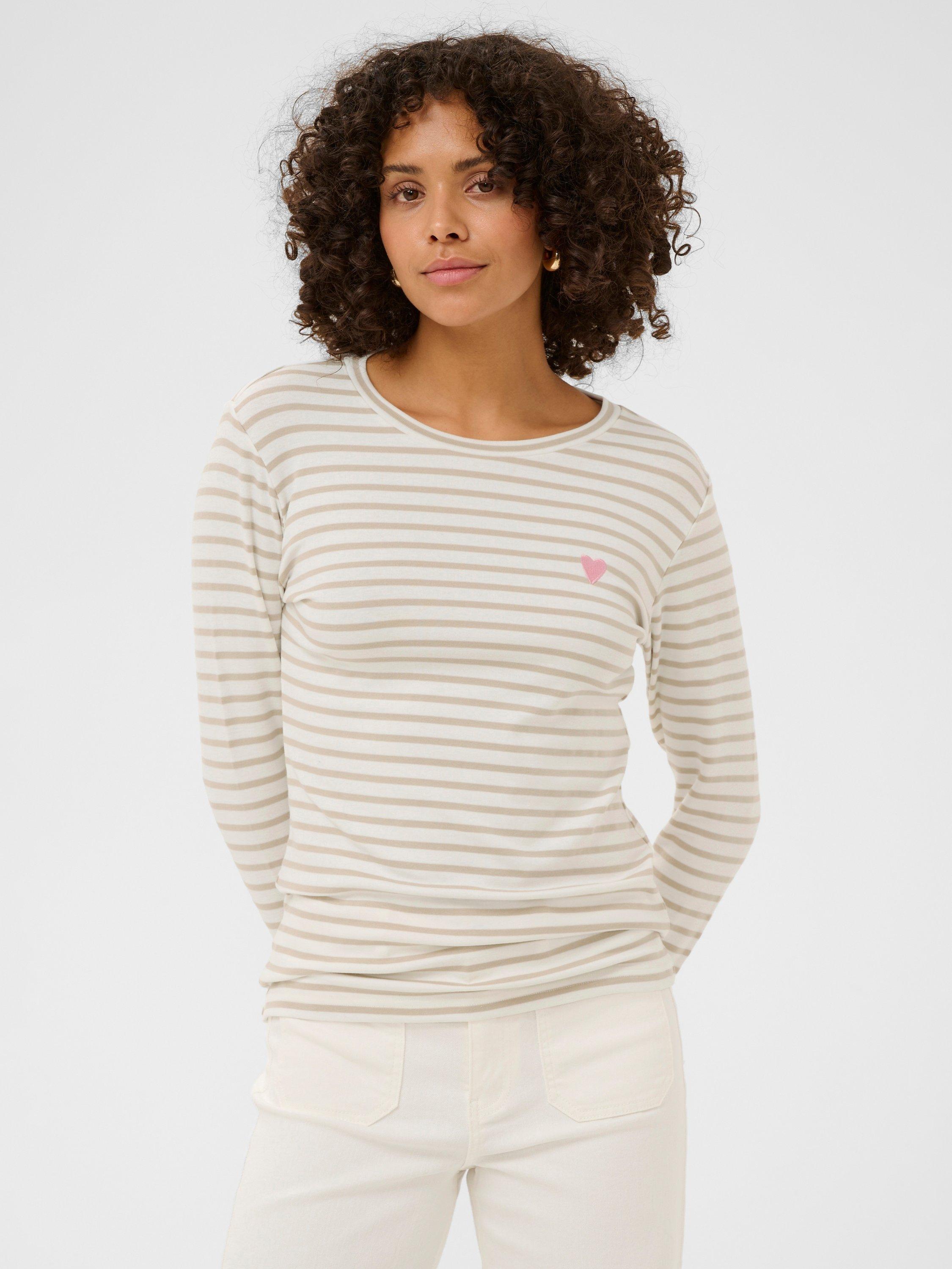 A striped long-sleeve shirt by KAFFE with heart embroidery to the chest. Its thoughtful round neck and regular fit make dressing easy for everyday ease with a stylish twist.