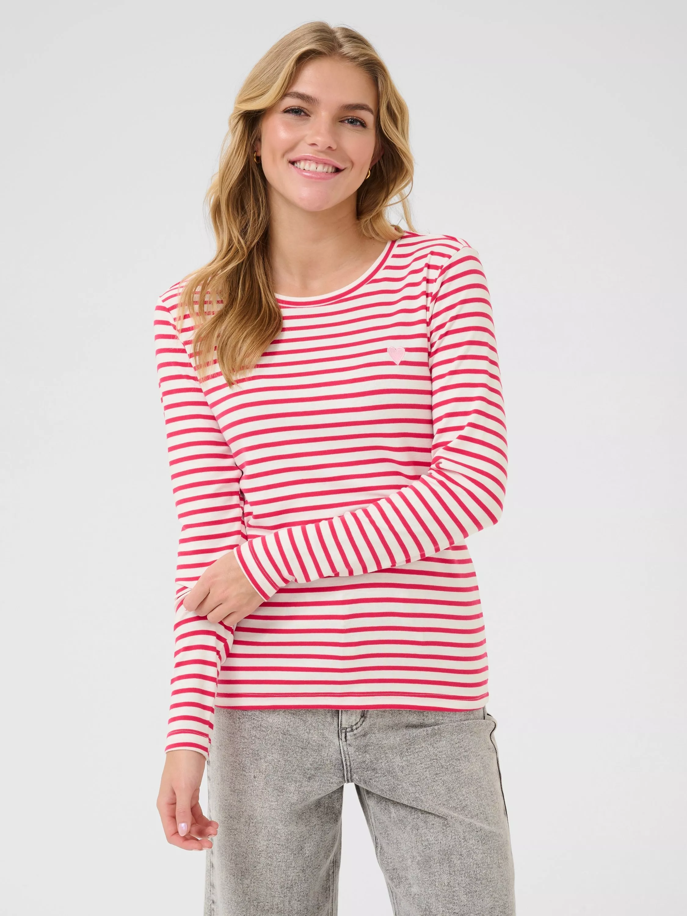 The foundation to all your looks, this t-shirt from KAFFE is detailed with vivid striping. Framed with a neat crew neckline and long sleeves, it is made from a soft cotton blend.