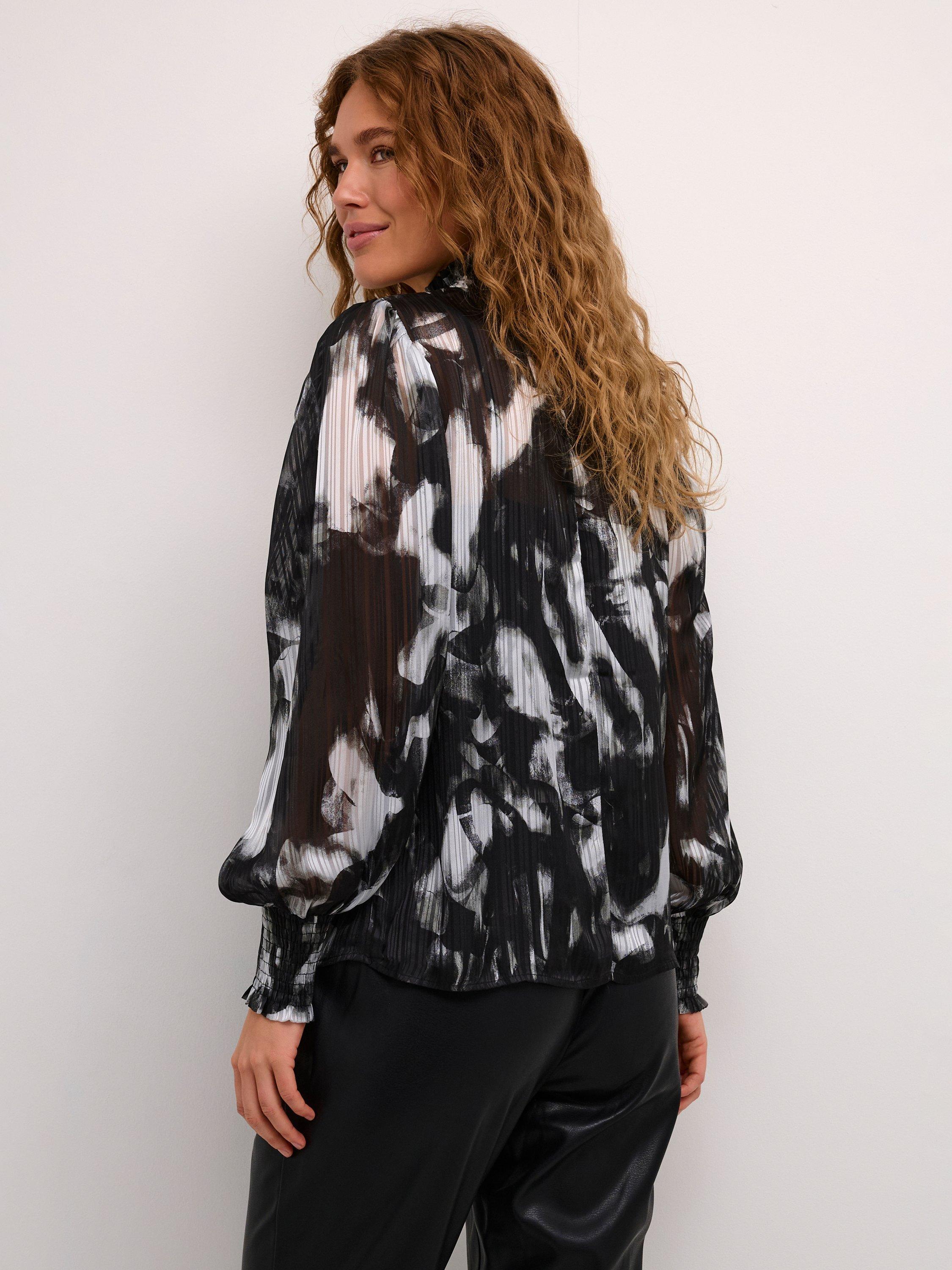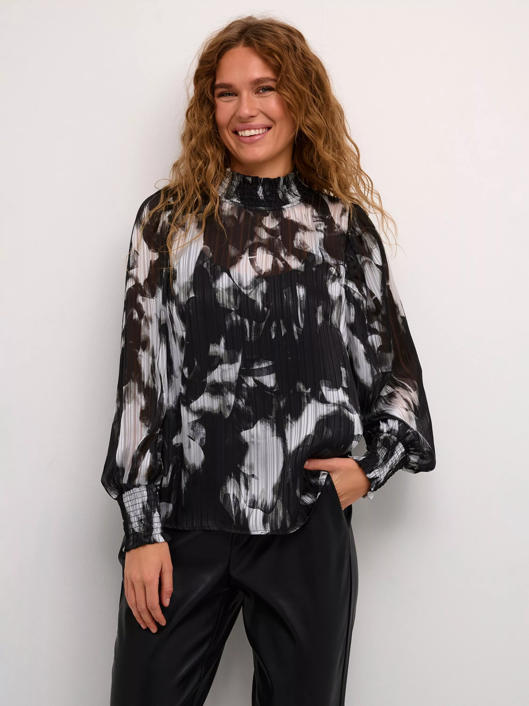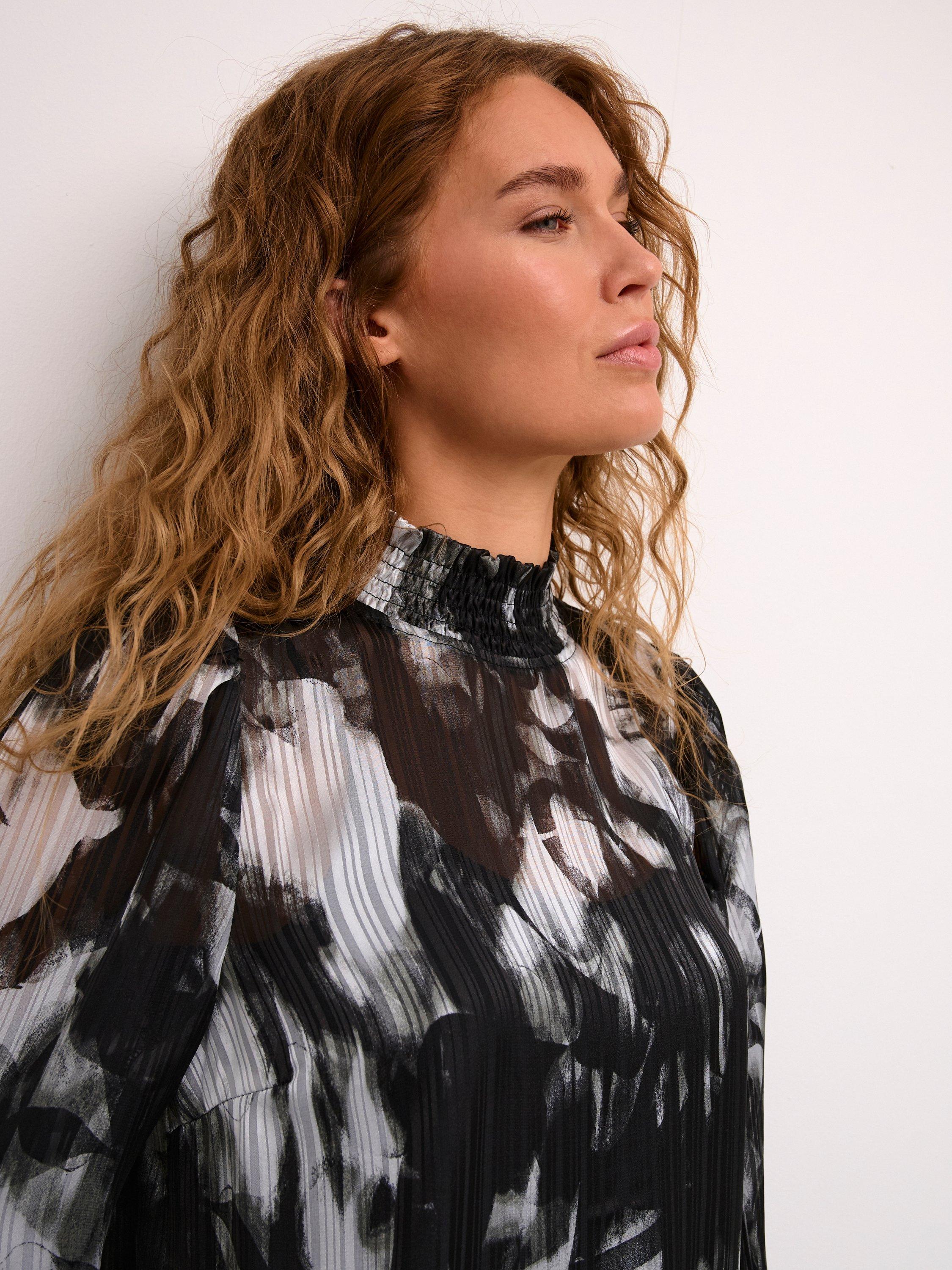 Bringing a neat addition to your wardrobe, this blouse from KAFFE adds impact with its eye-catching abstract pattern. Accented with a high smock neckline and long loose bishop sleeves, it is made in a crinkled chiffon fabric.