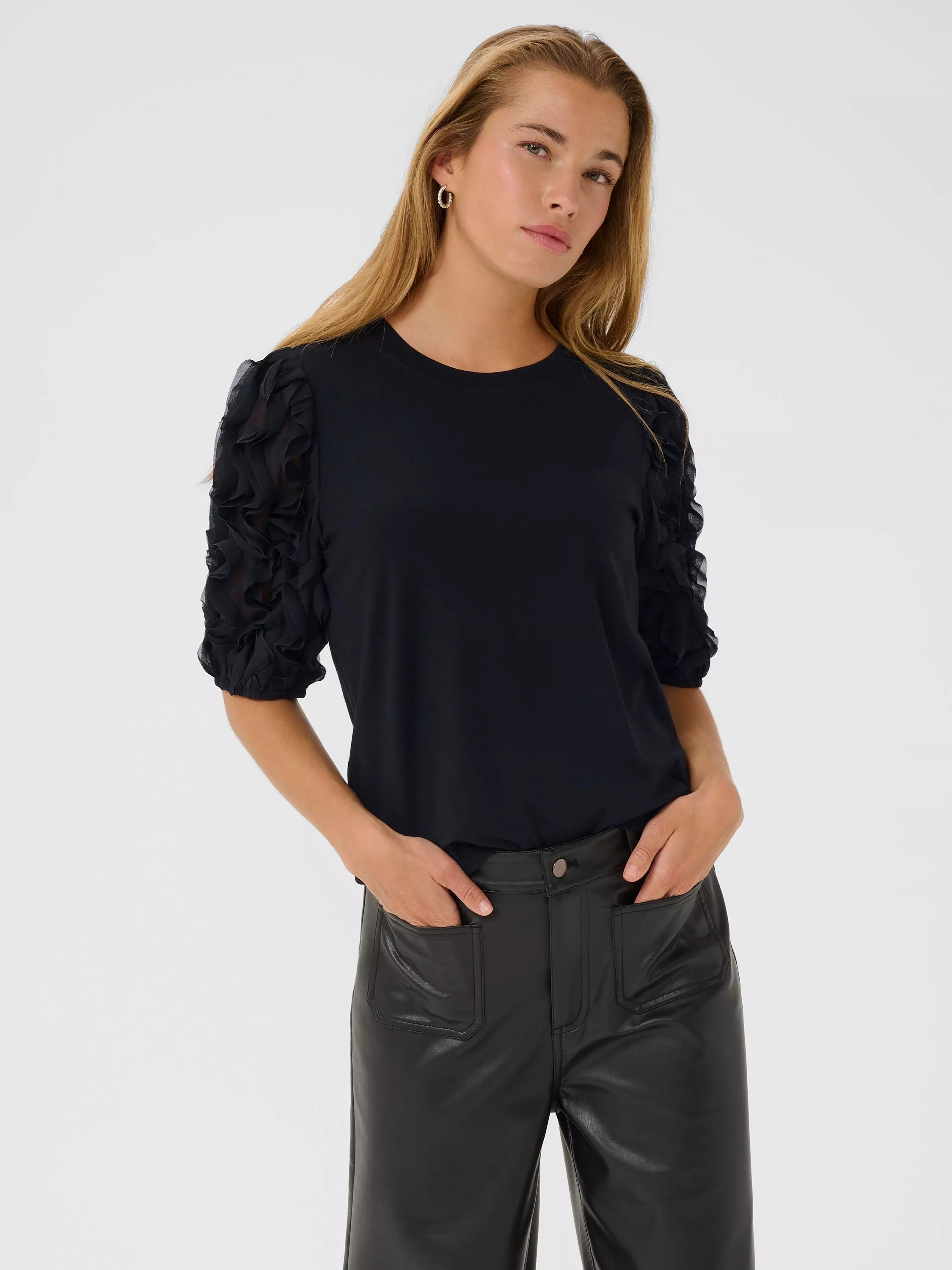 A T-shirt from KAFFE, made from a soft viscose blend. With a crew neck and short sleeves, its embellished finish makes it a wear-everywhere essential.