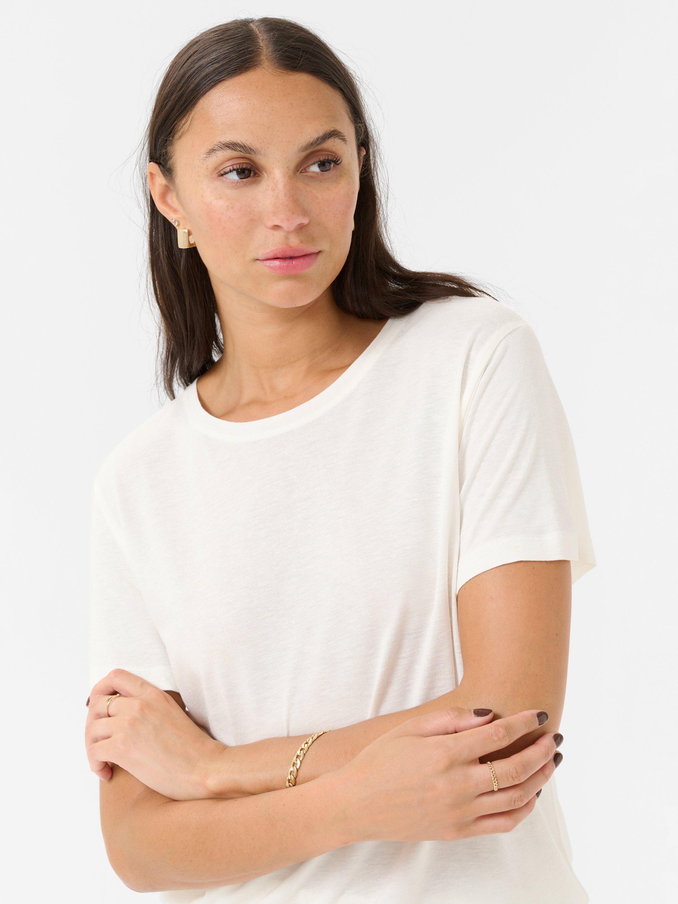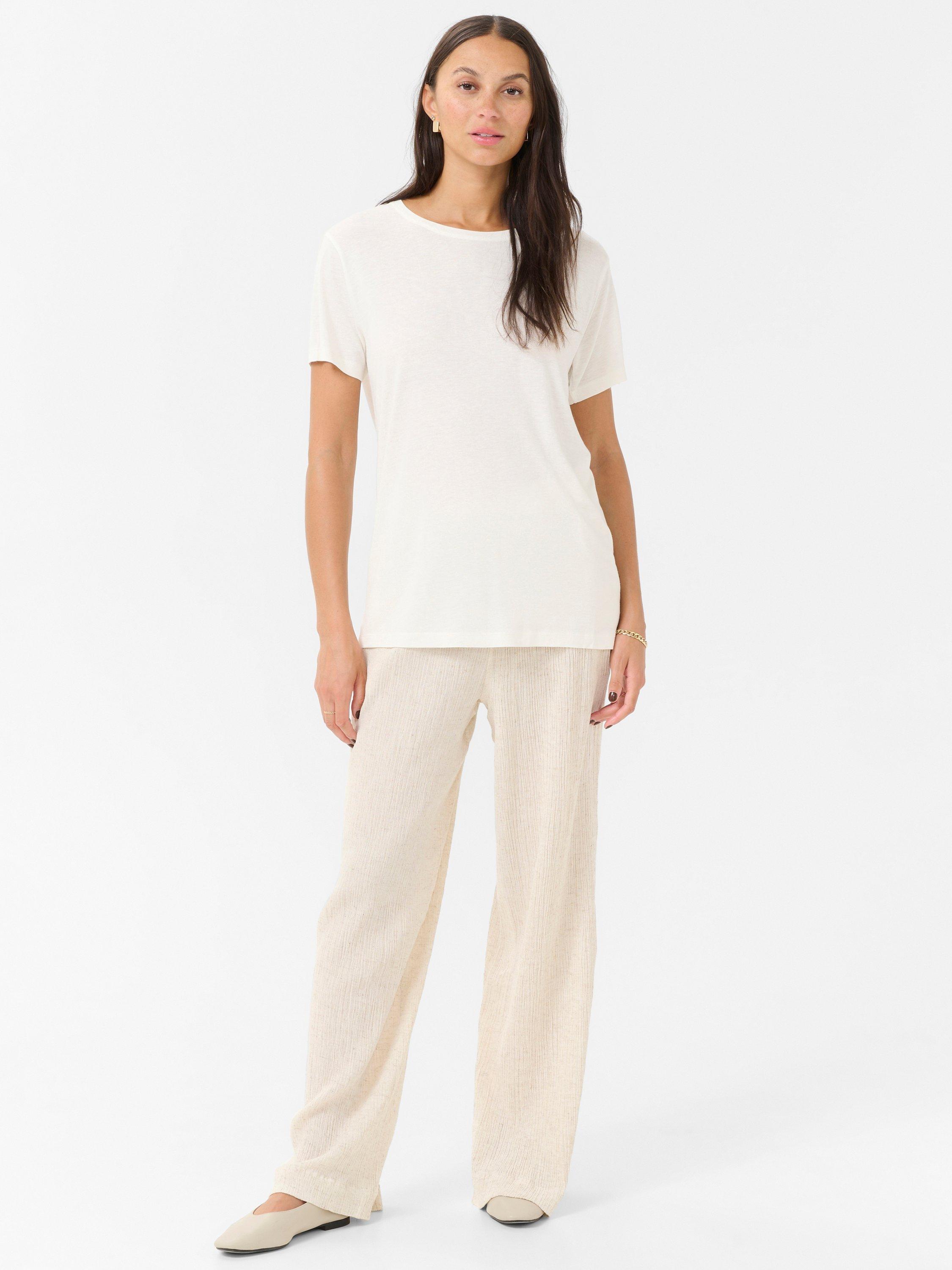 This KAFFE linen blend T-shirt is made for easy pairing and lasting confidence, whether you're at brunch, on errands or relaxing outside. Simple, smart design meets effortless versatility.