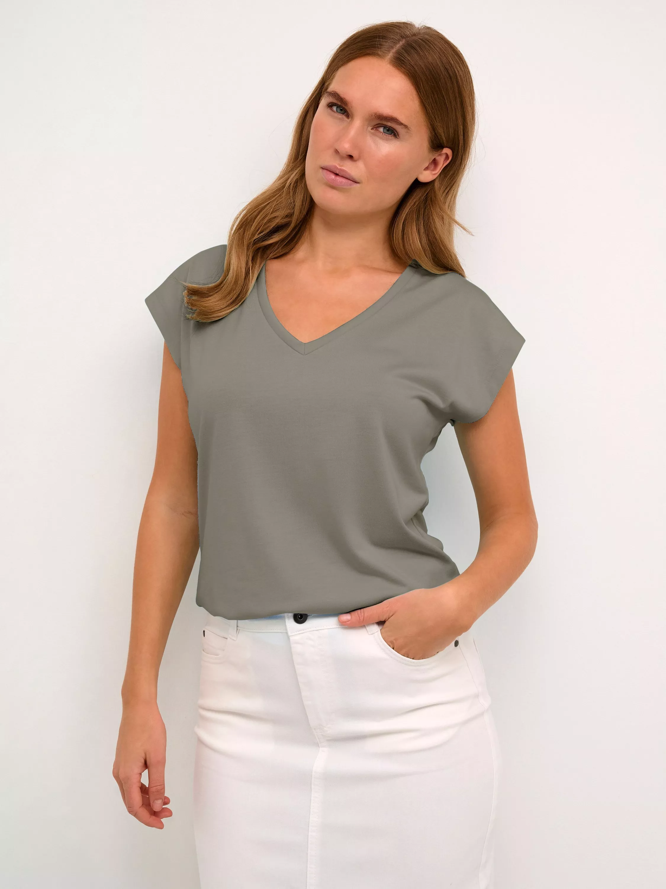 The lise t-shirt is the perfect basic item for your wardrobe. The t-shirt has short batwing sleeves that gives it a smooth look. It has a flattering V-neck and a relaxed regular fit. The t-shirt can be used with any item from jeans or shorts to a skirt or pair of suit trousers.