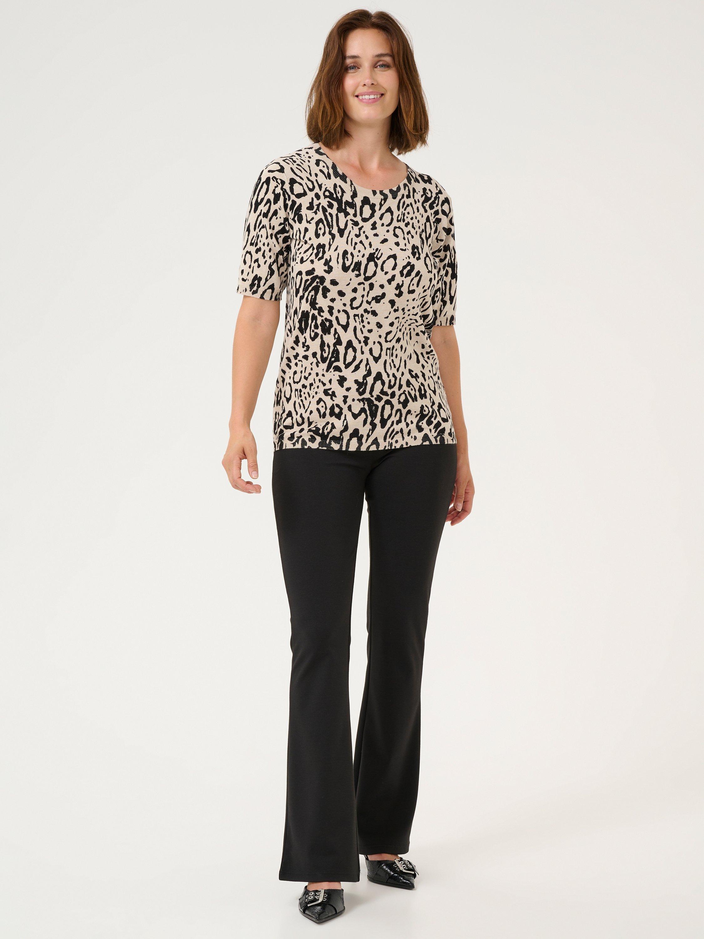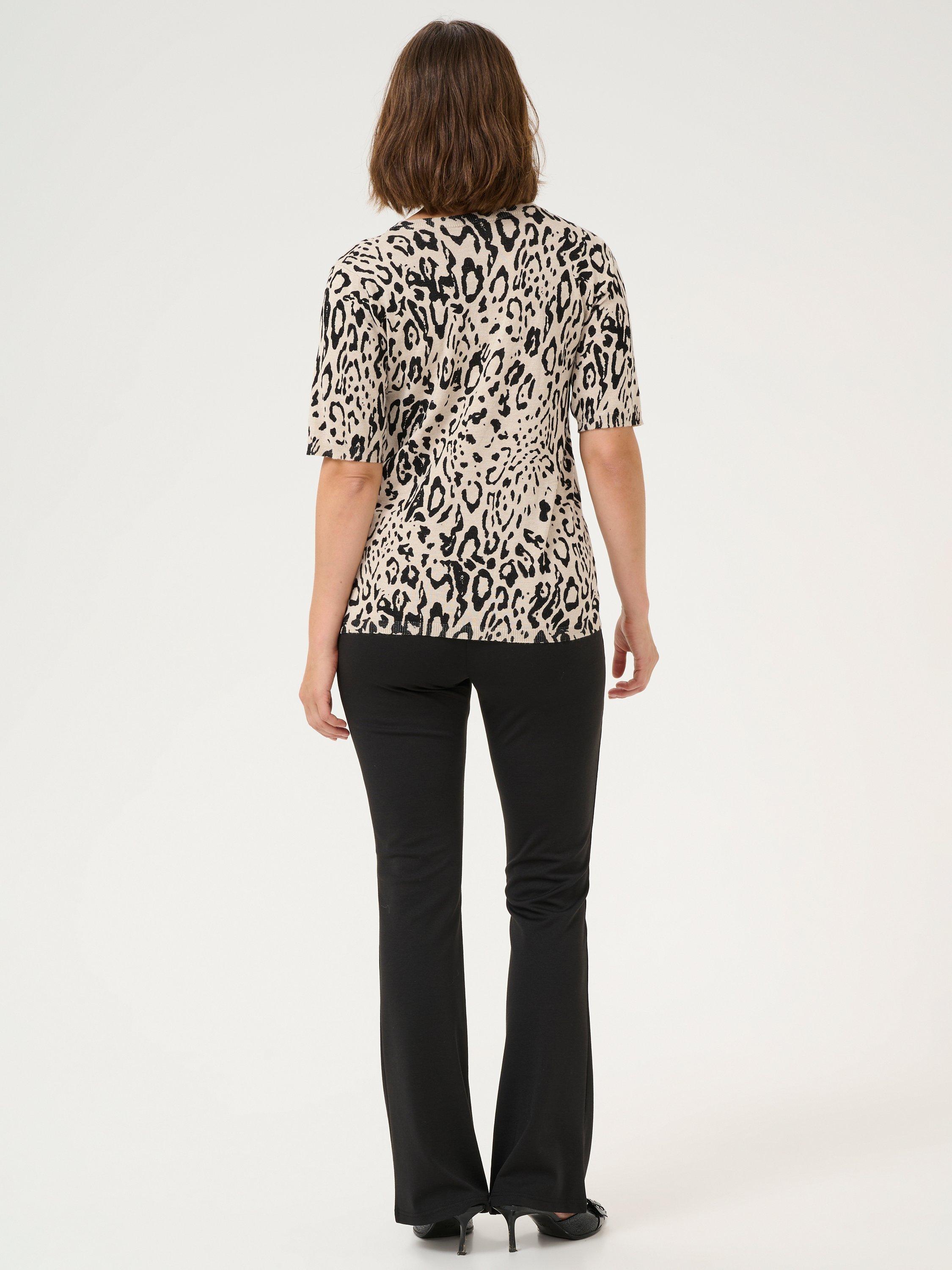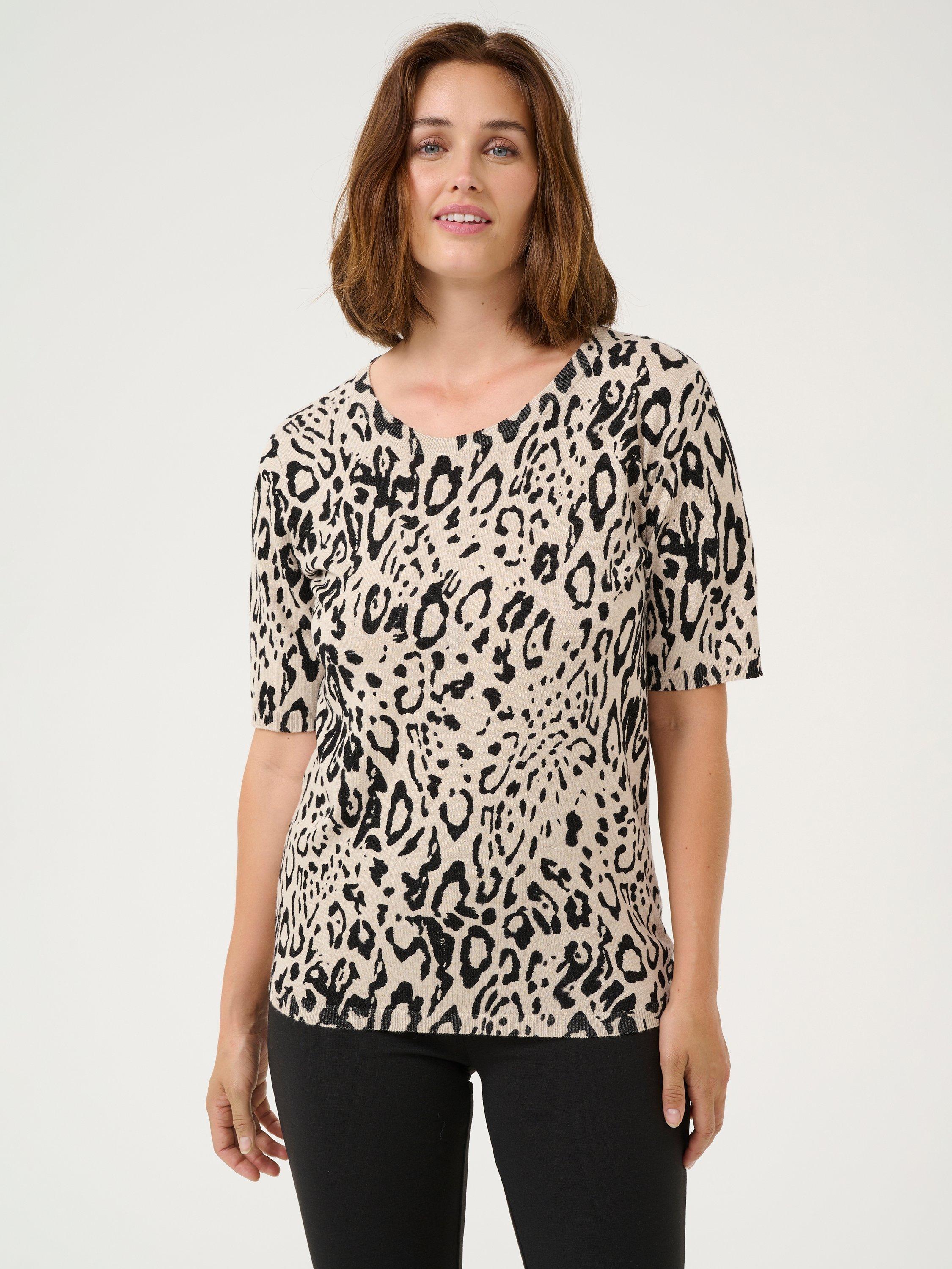 With a fuss-free round neck and short sleeves, this fine leopard print jumper from KAFFE will take the cool weather in its stride.