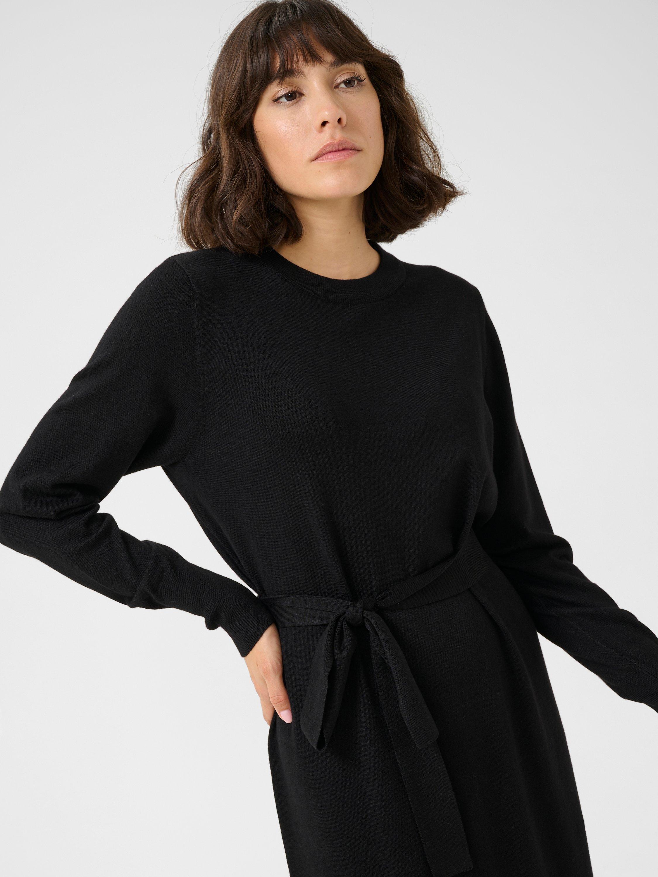 A cosy choice that delivers on comfort and style, this knee length dress from KAFFE is made from a whisper-weight viscose blend with a tying belt at the waist. Featuring a round neckline and full-length sleeves with gathered wide cuffs, this style is the epitome of sheer minimalism.