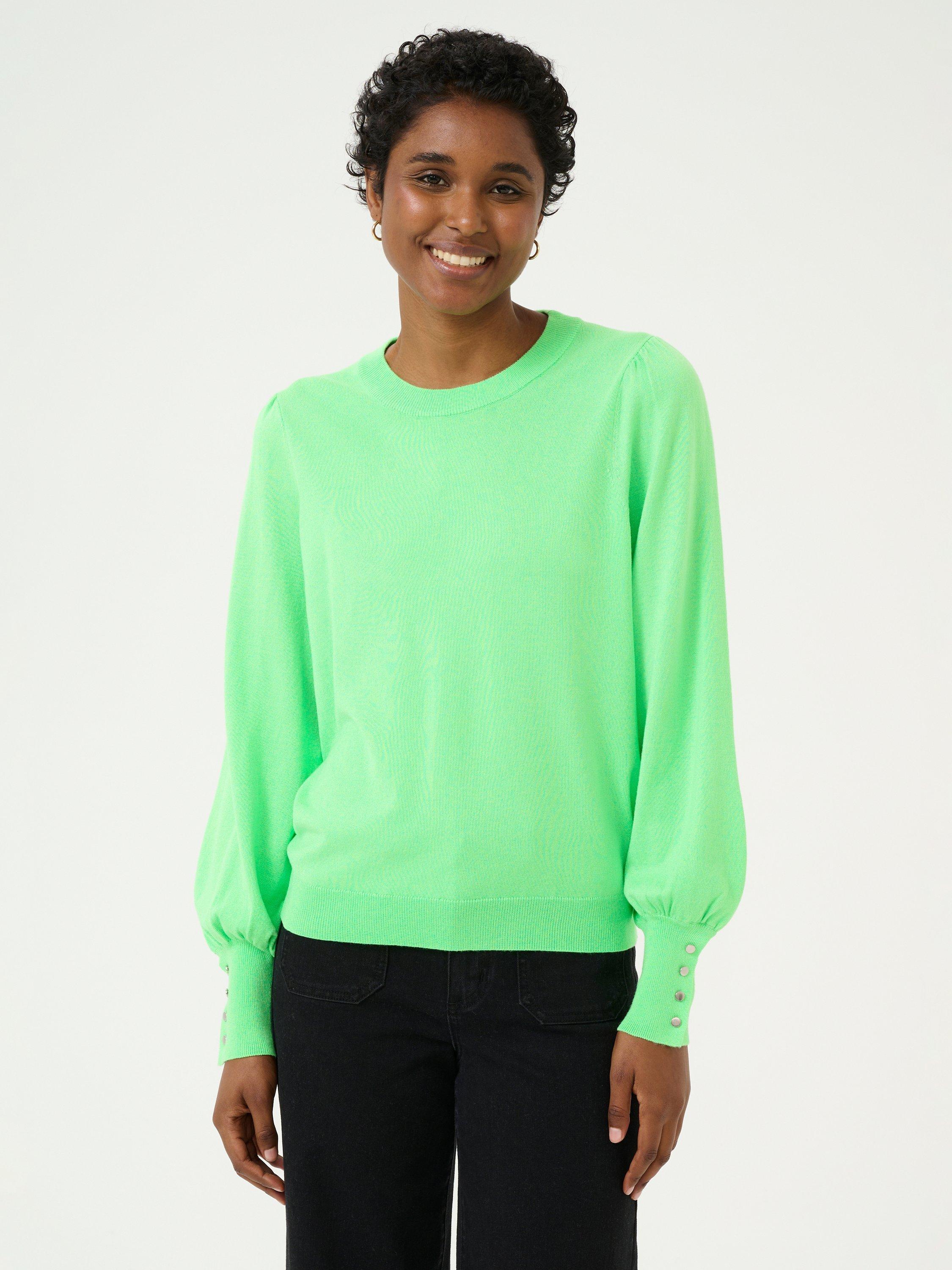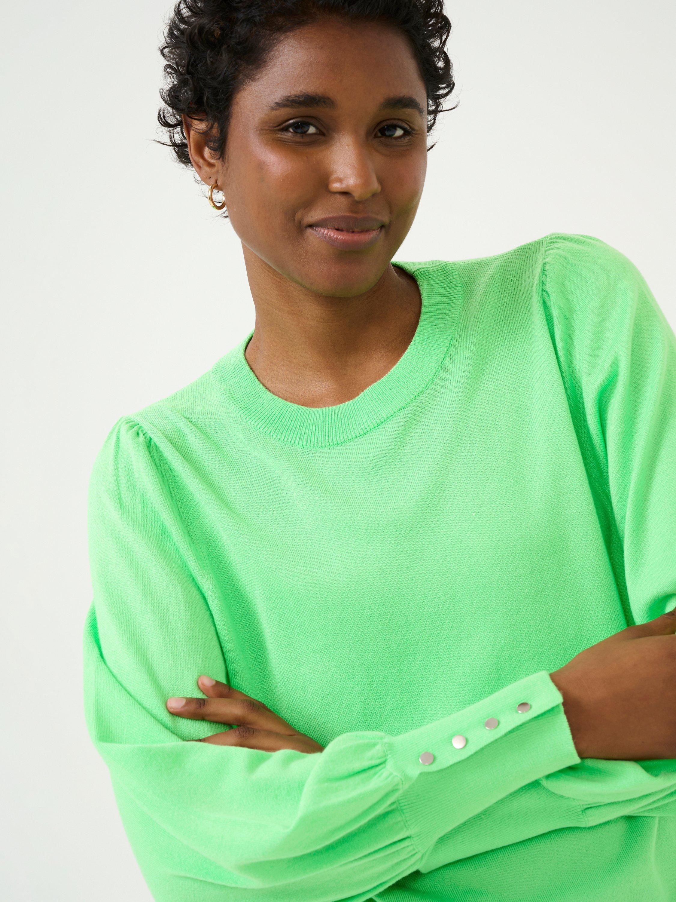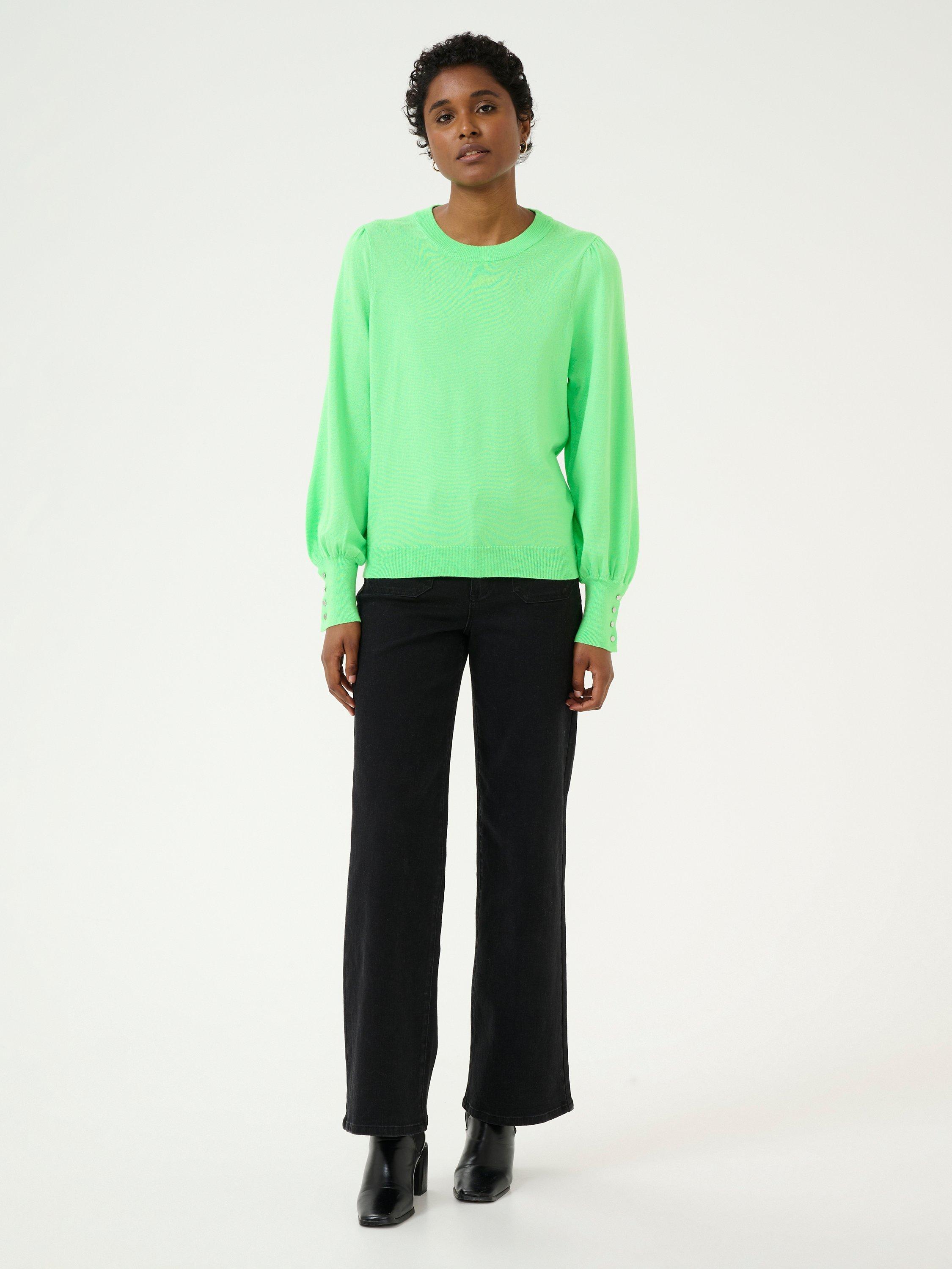The lizza pullover is an elegant everyday style, that you can use on any occasion. It has a regular fit and simple crew neck. The sleeves are long and loose, and they are gathered in a wide, buttoned cuff. The pullover is cut at the hips, and all edges are finished with a rib knit.