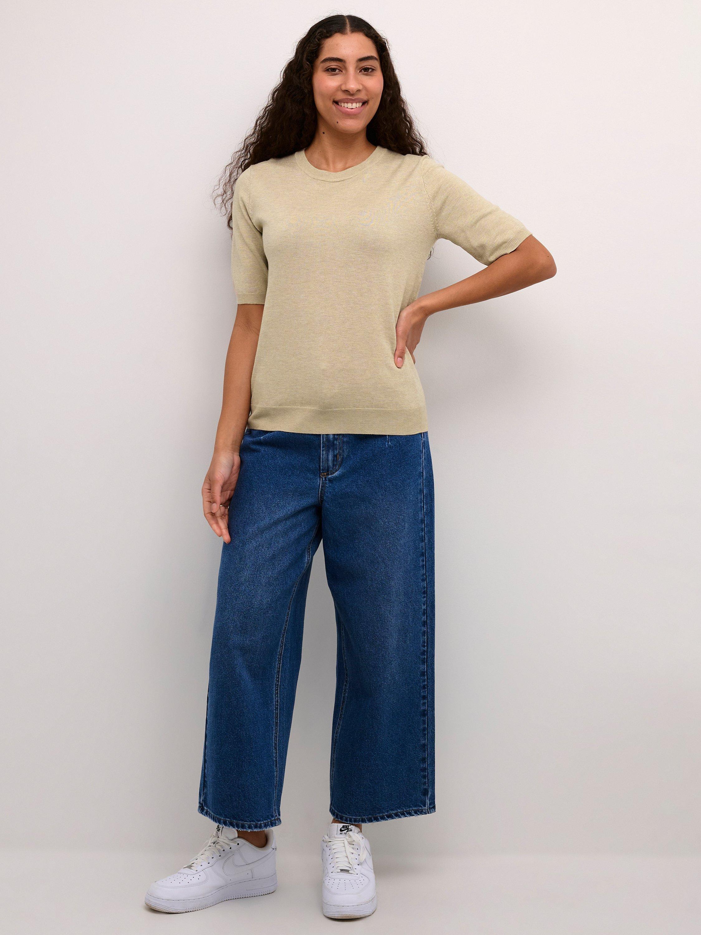 Cut with a simple round neck and short sleeves, it is made from a light yet durable blended fabric and is ideal for relaxed daytime wear.