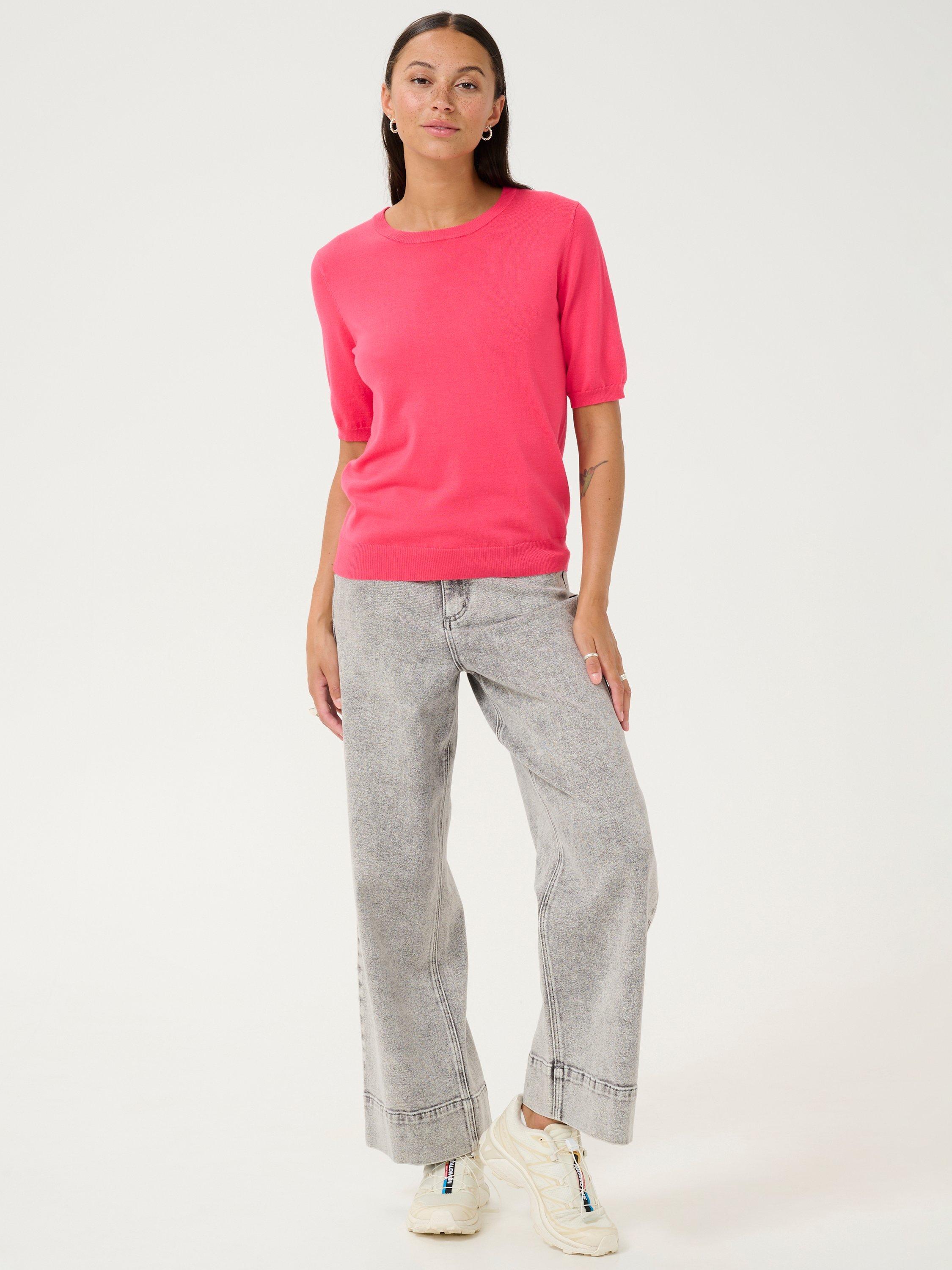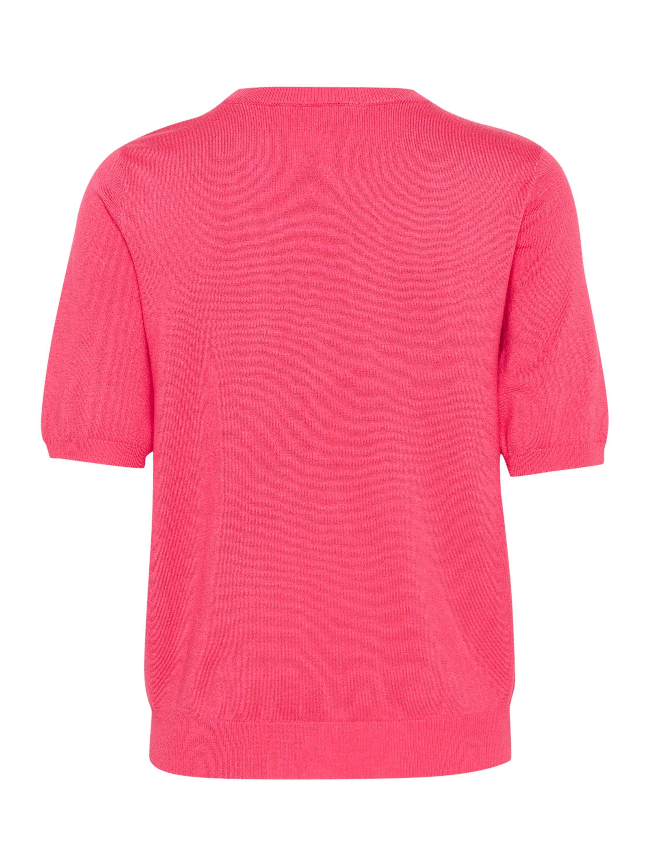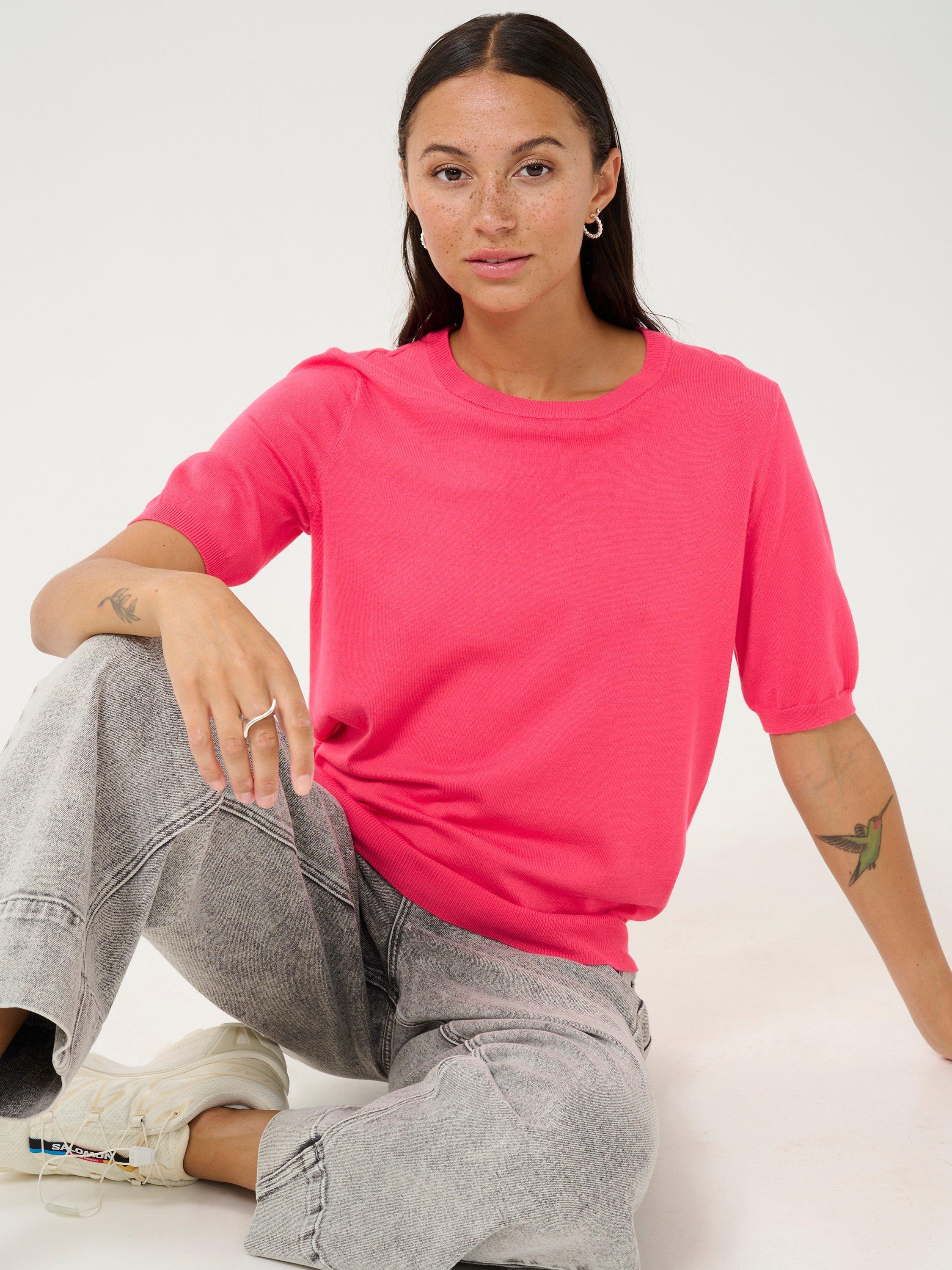 Cut with a simple round neck and short sleeves, it is made from a light yet durable blended fabric and is ideal for relaxed daytime wear.