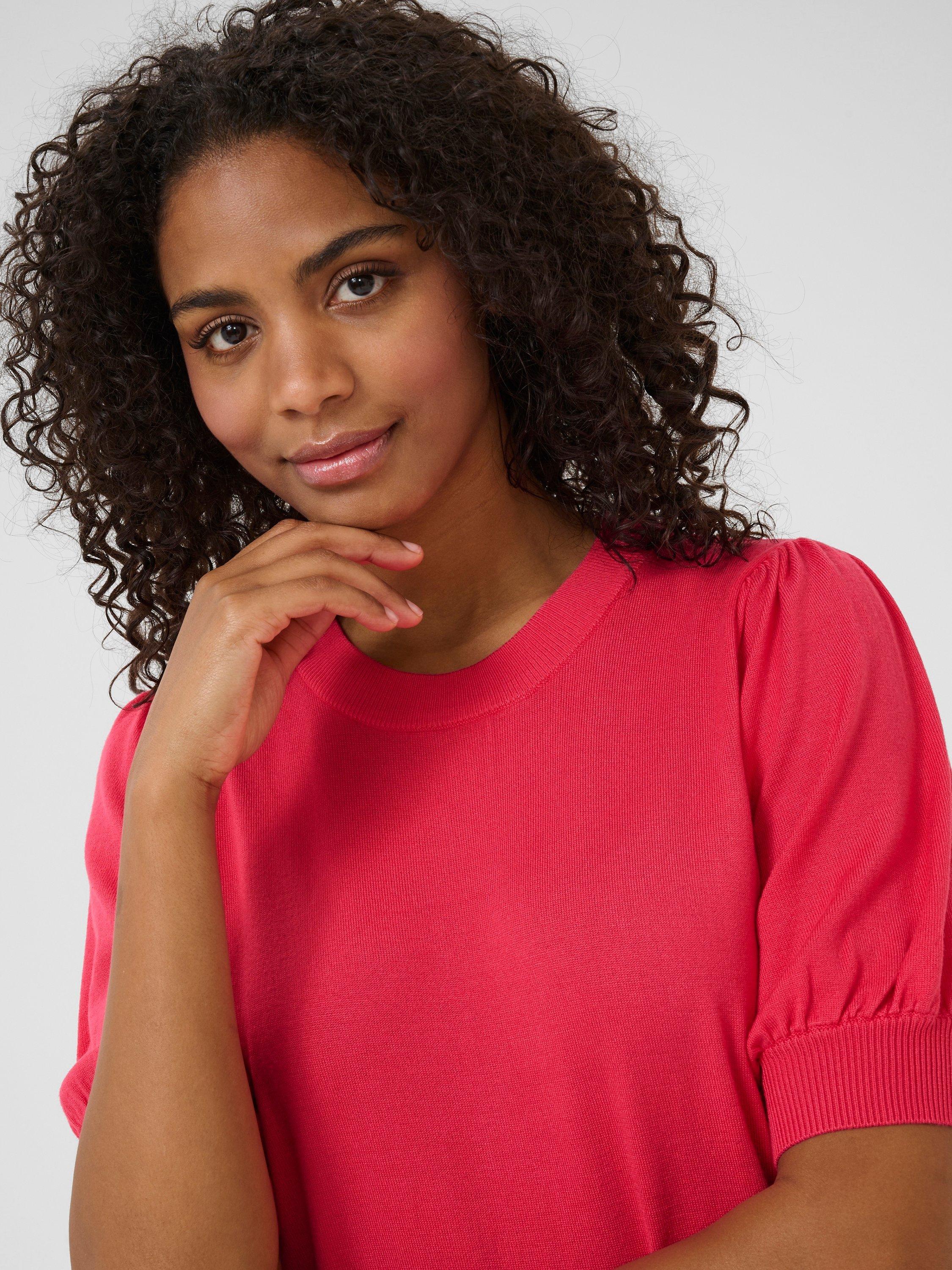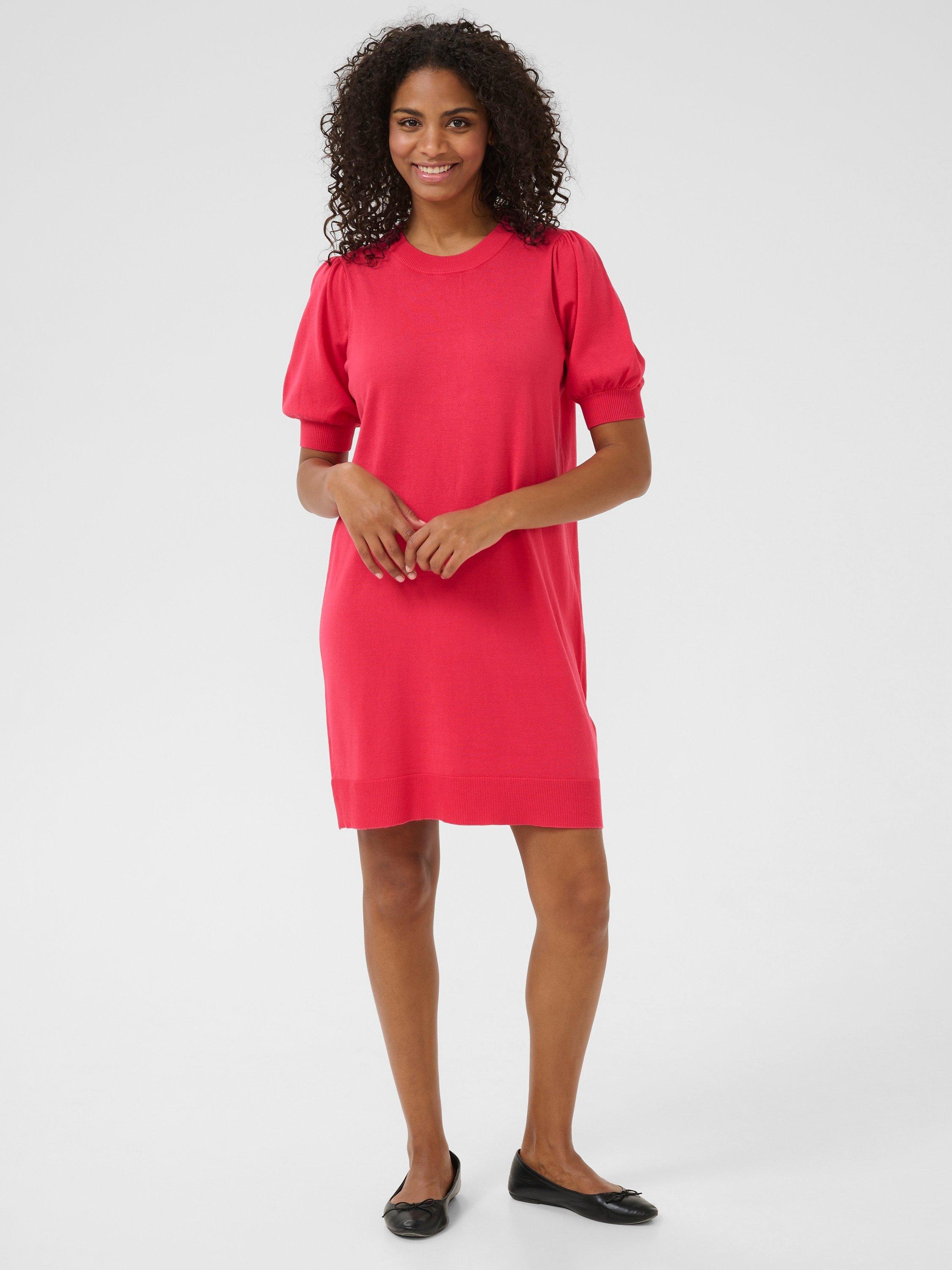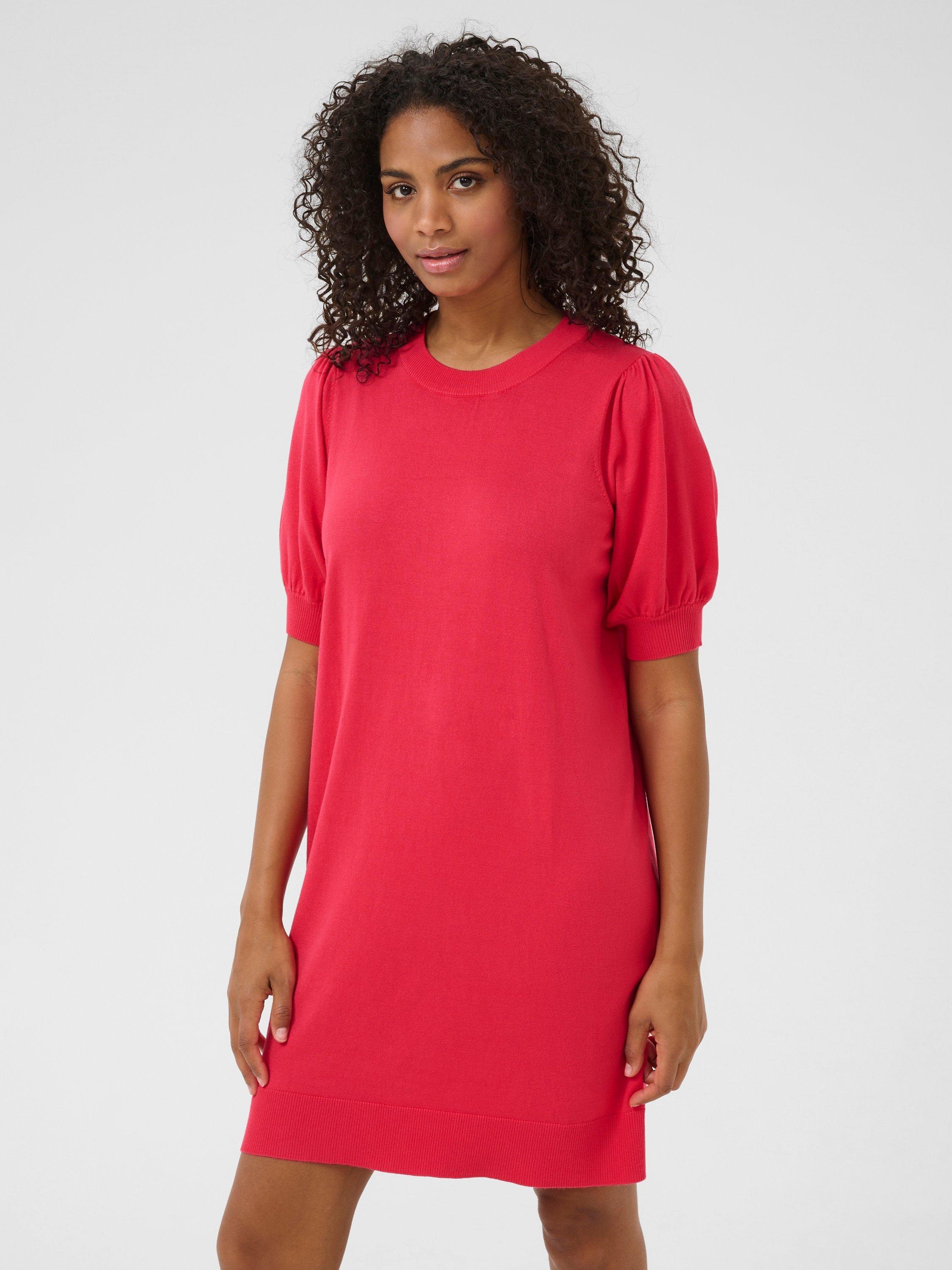 In a cosy jumper silhouette, this knitted dress from KAFFE is perfect for both casual and semi-formal occasions. With a round neck and short slightly puffed sleeves, this dress ensures comfort and style all day long.