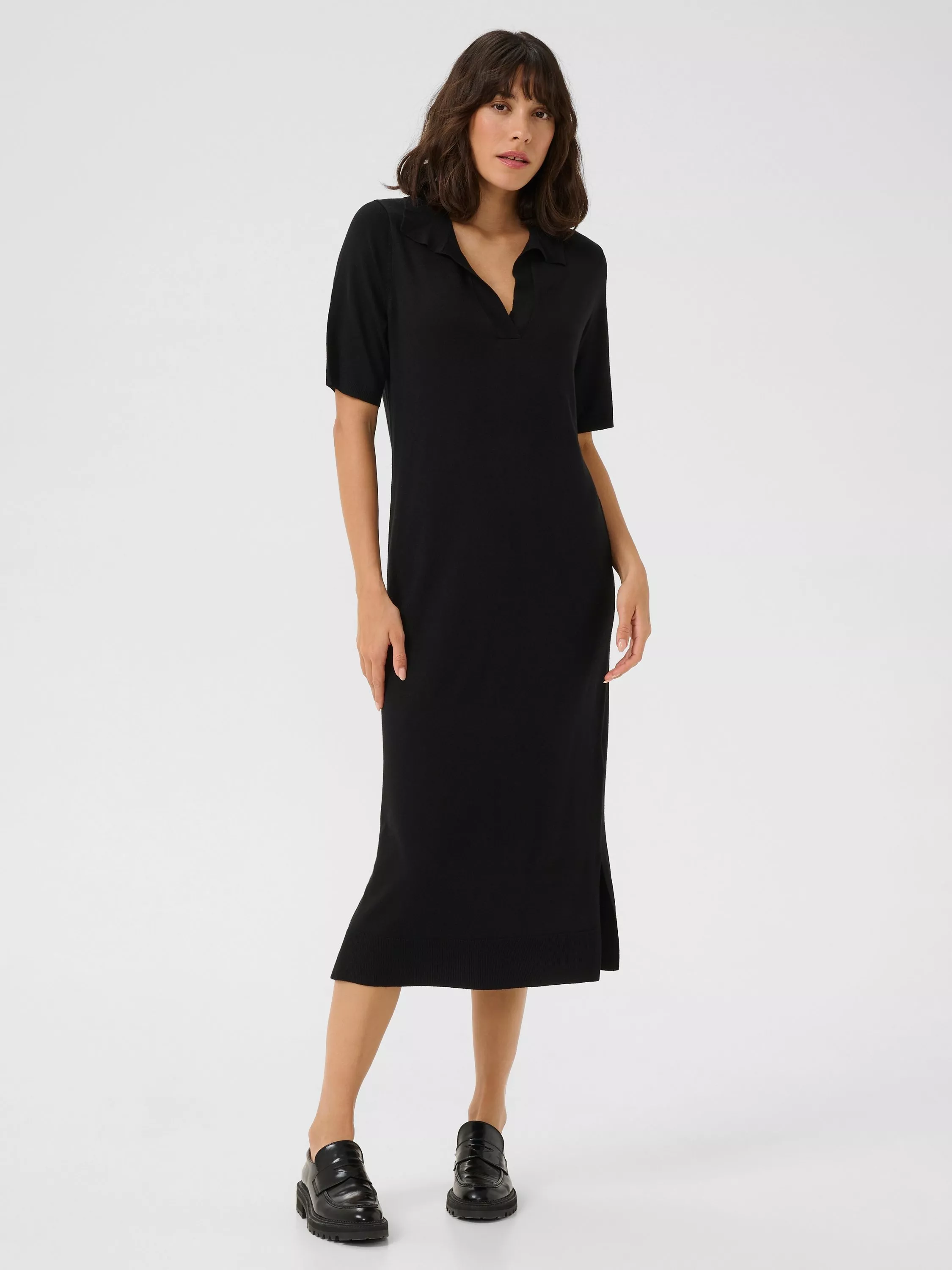 The lizza polo dress is a soft and cosy style - perfect for this seasons wardrobe. It has a polo collar and a casual fit, and it has rib edges. The sleeves are half length with a straight fit, and the dress is cut at the mid-calves.