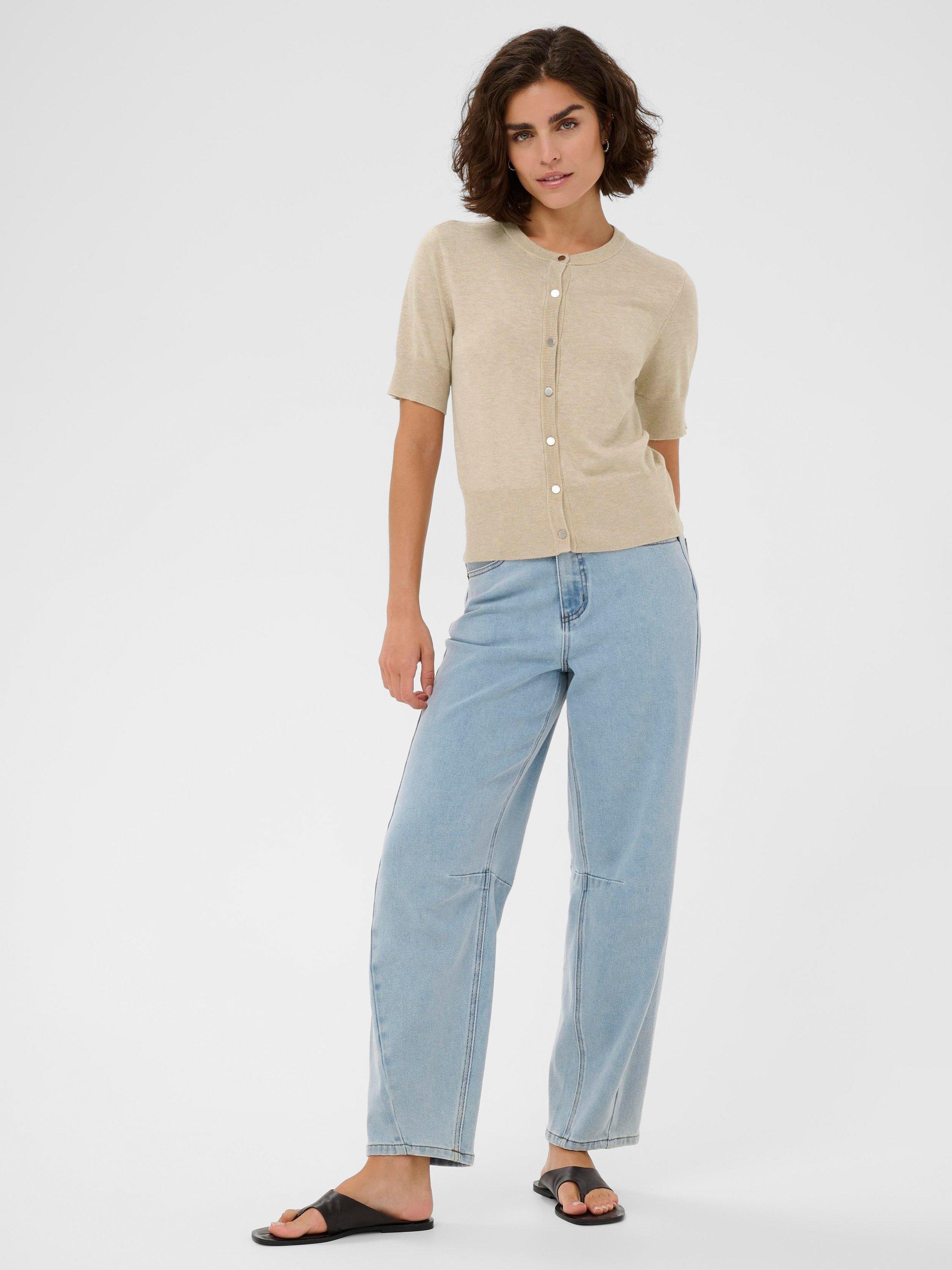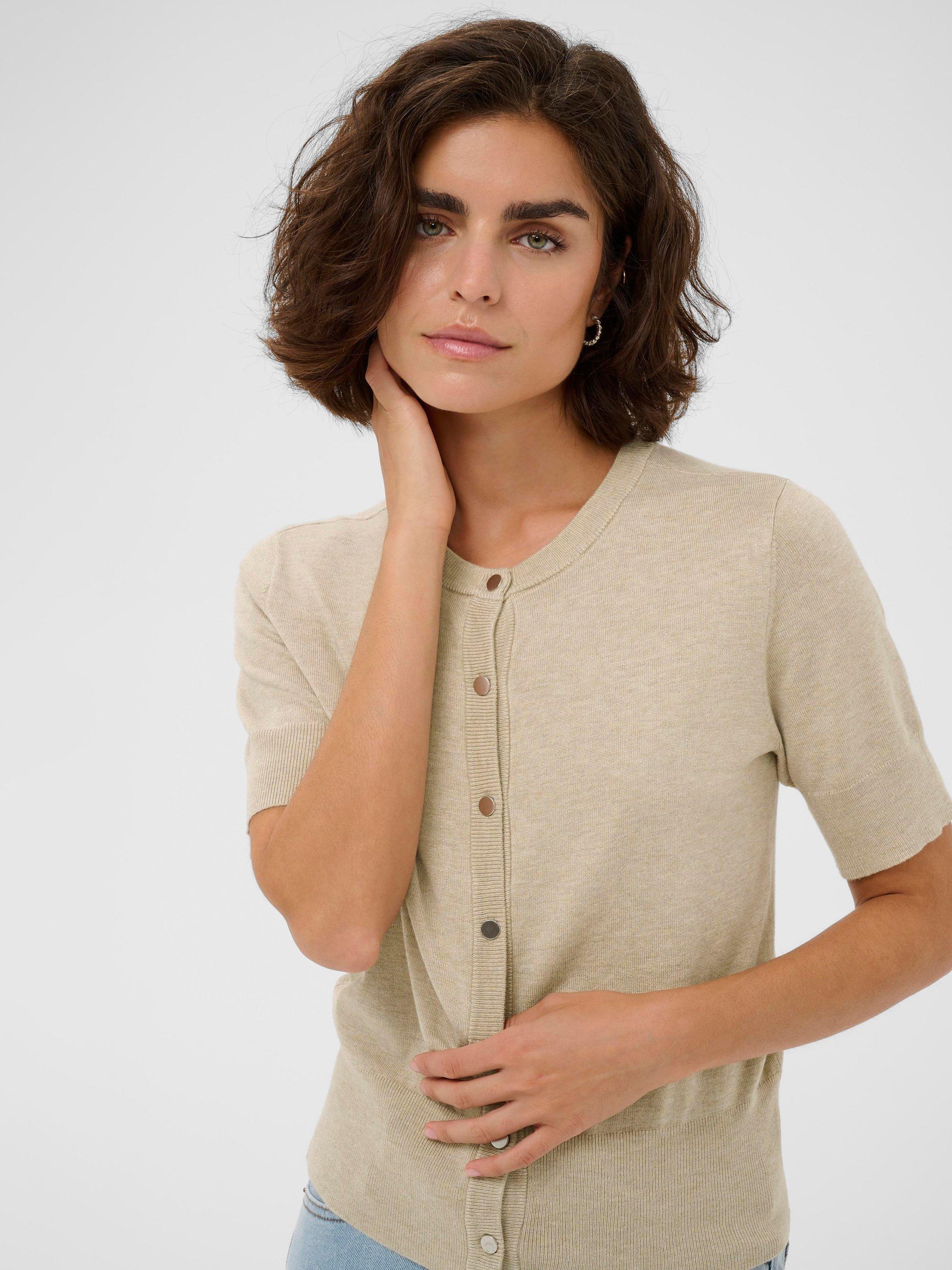 A fine knit cardigan by KAFFE. Its regular fit and round neck offer everyday comfort, while the short sleeves let you move easily. Ideal for layering season after season.