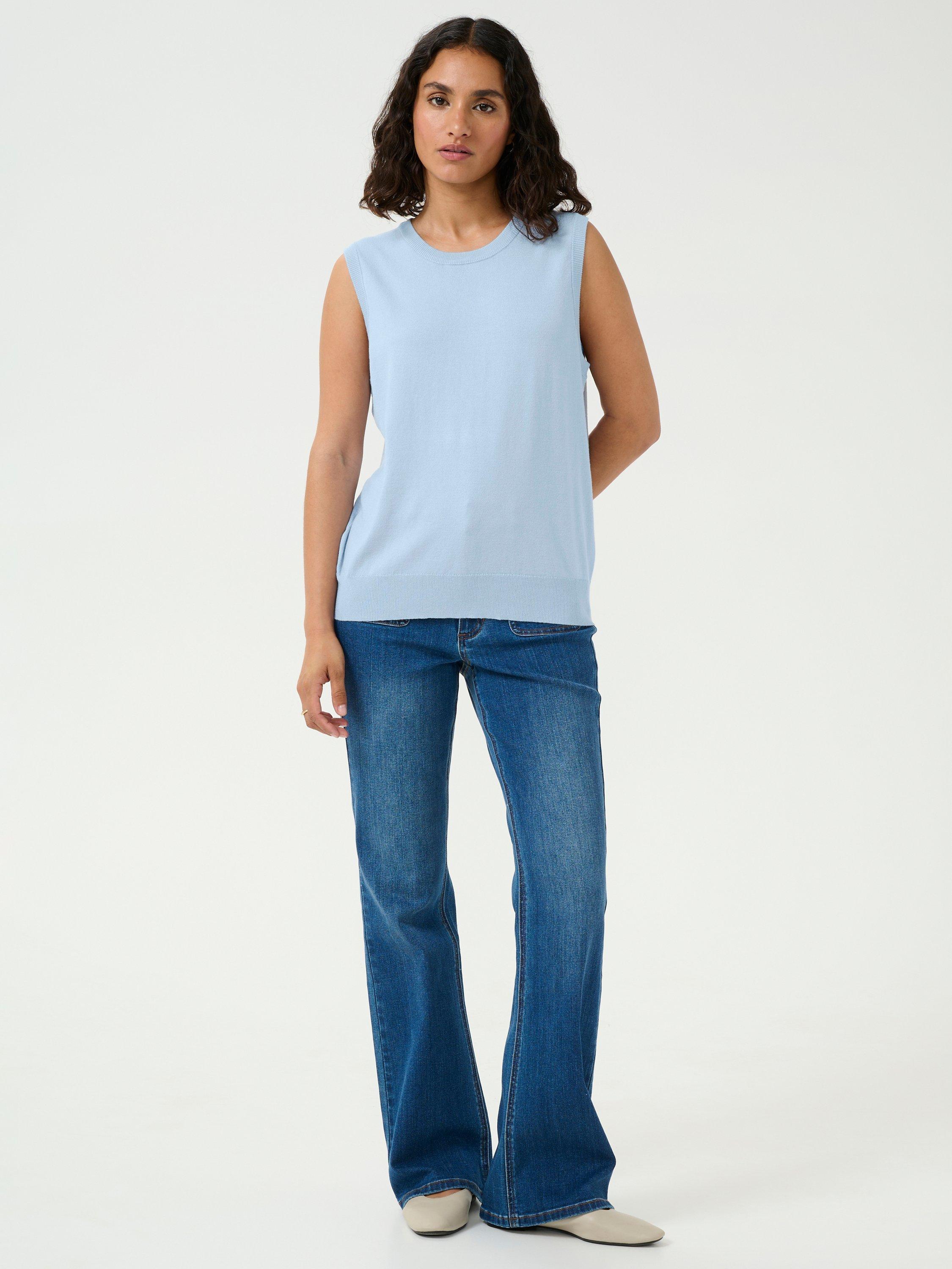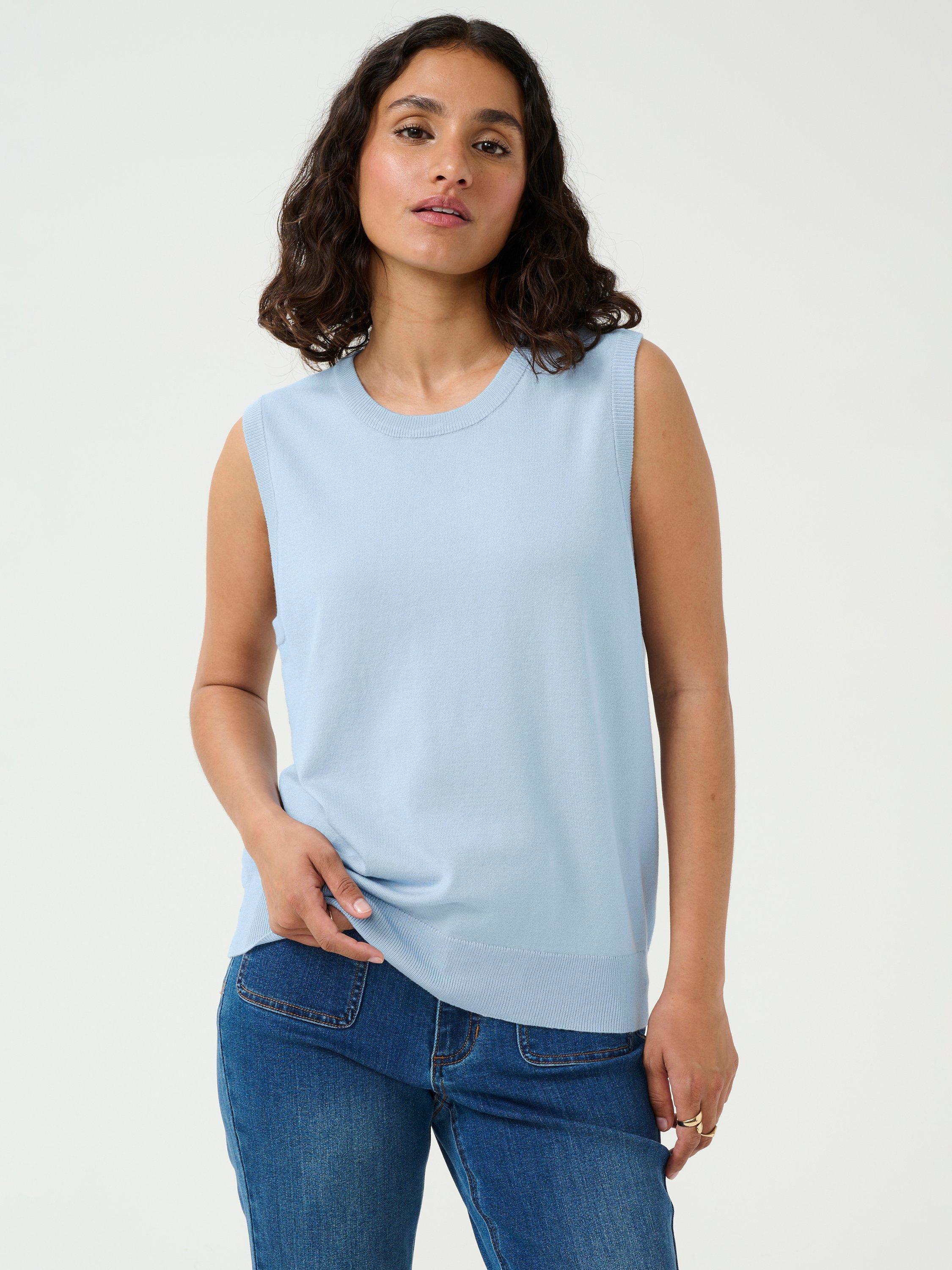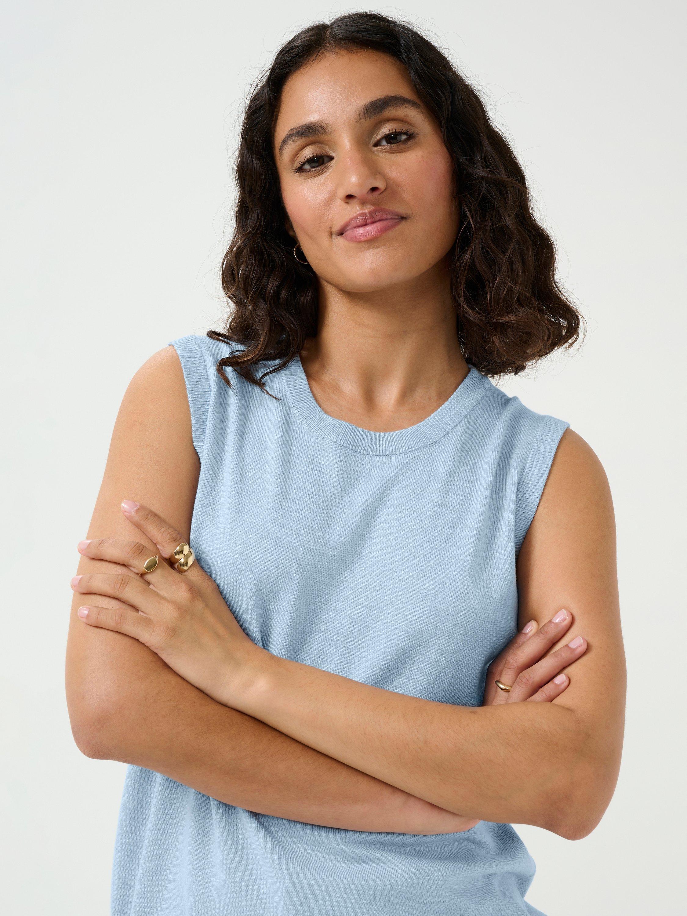 Framed with a crew neckline, this sleeveless fine knit top from KAFFE is set to go out, whatever the weather.