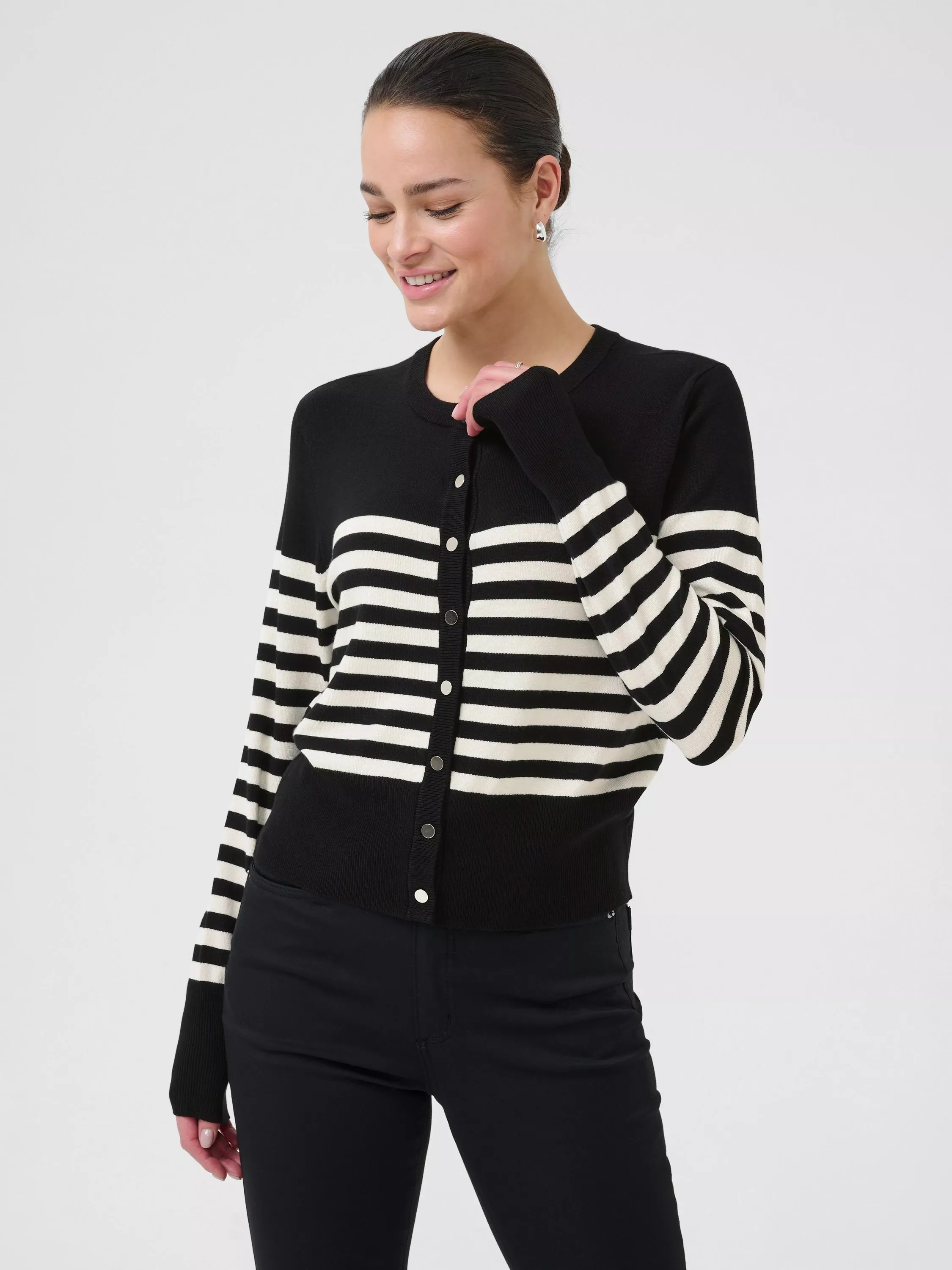 Elevate casual days with this chic stripe cardigan, perfect for layering with its classic good looks.