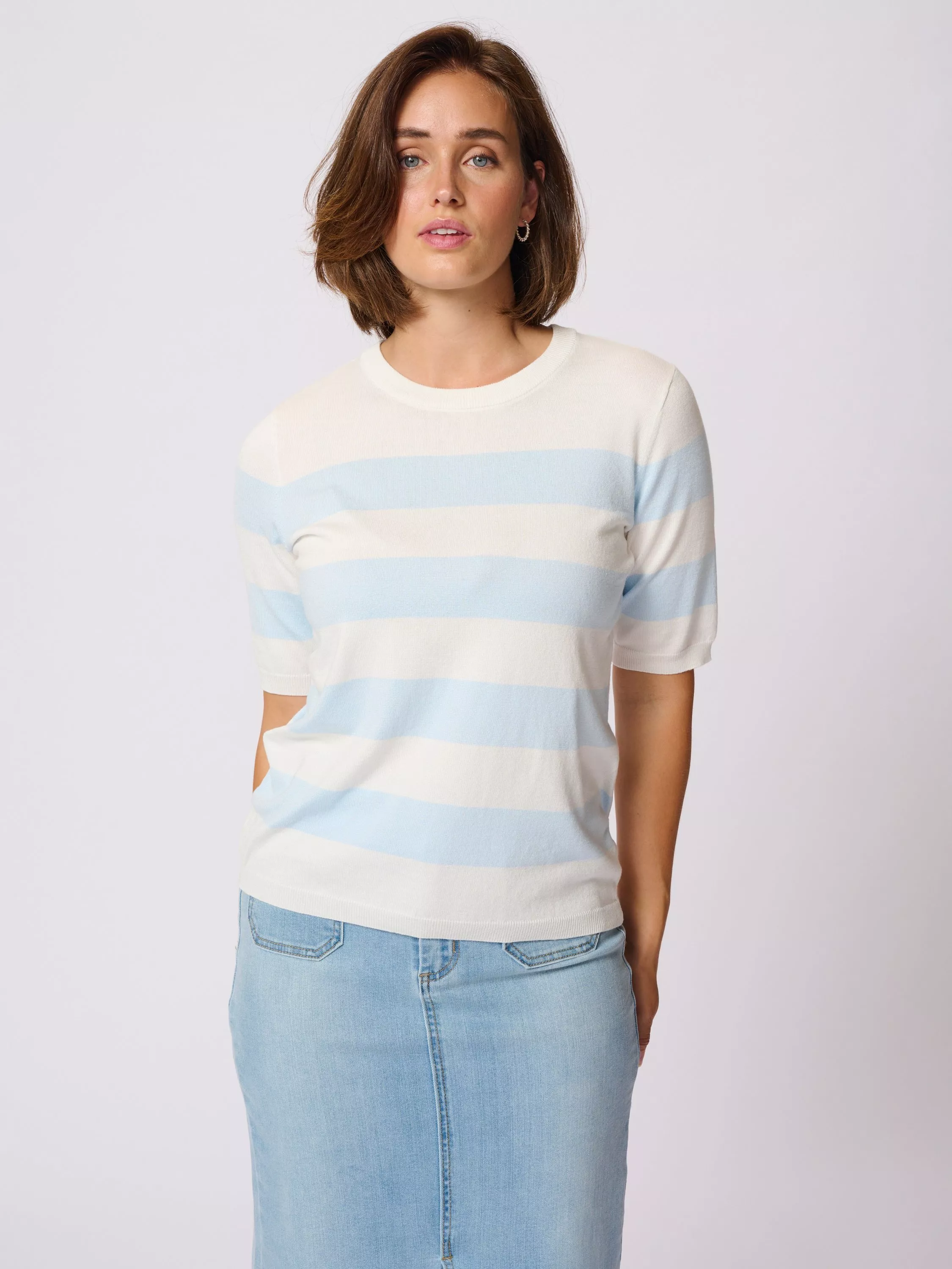 KAFFELizza Stripe Short Sleeve Jumper, Blue/Multi
