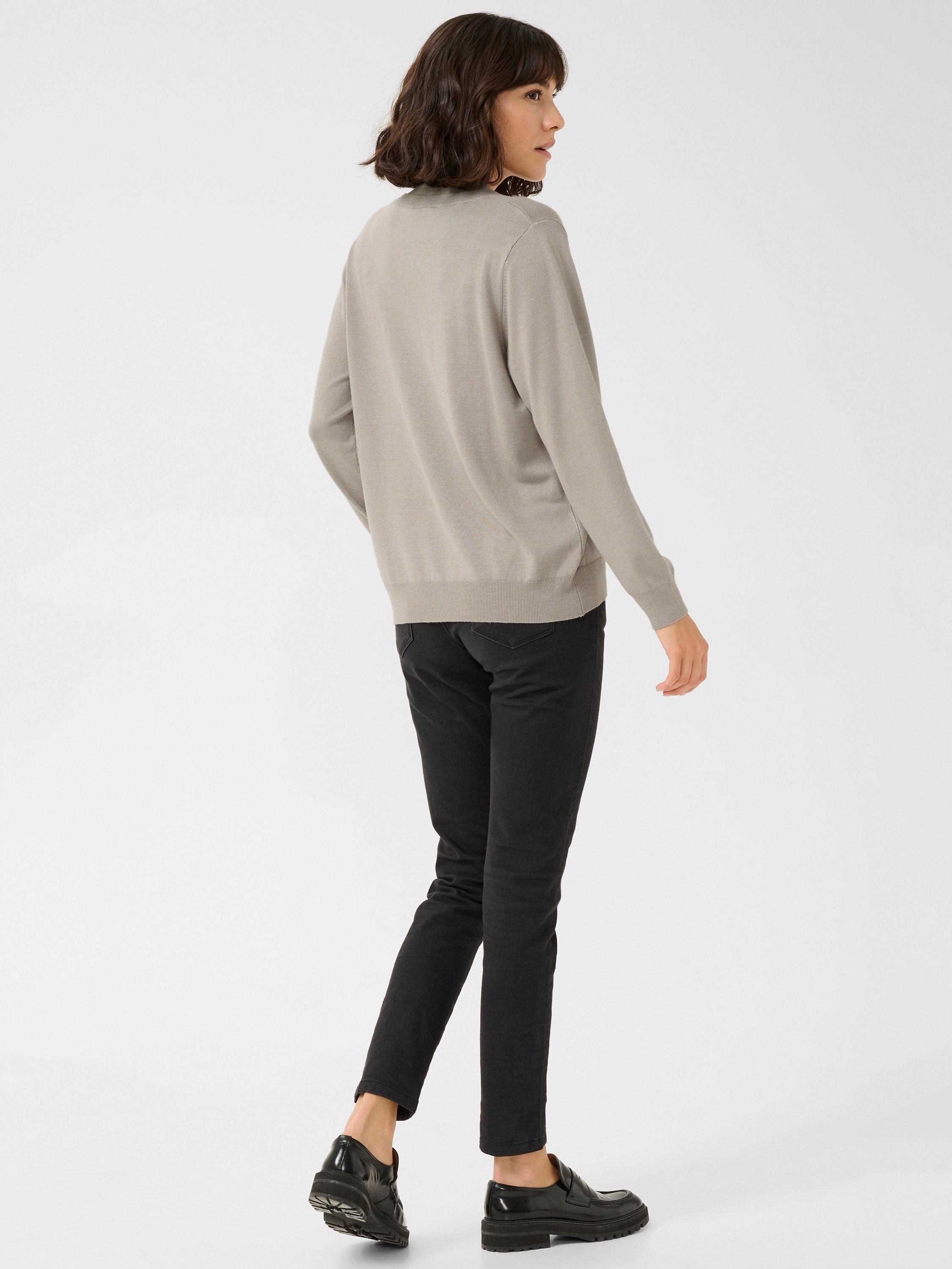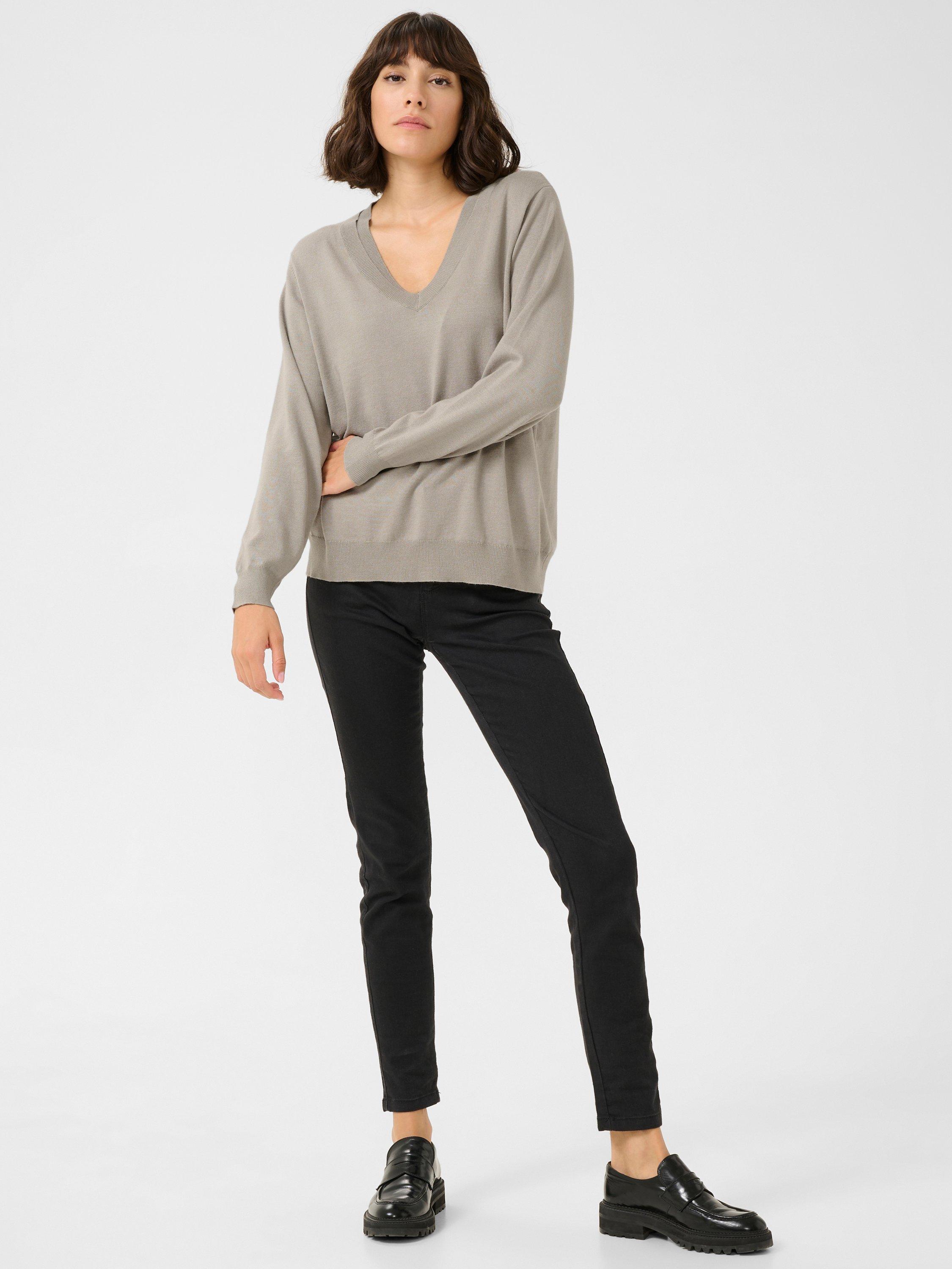 The lizza pullover is a soft and casual top with endless styling options. It has a double V-neck and a regular fit, and the edges are finished with rib knit. The sleeves are long and loose-fitting, and they are gathered in a wide knit cuff.