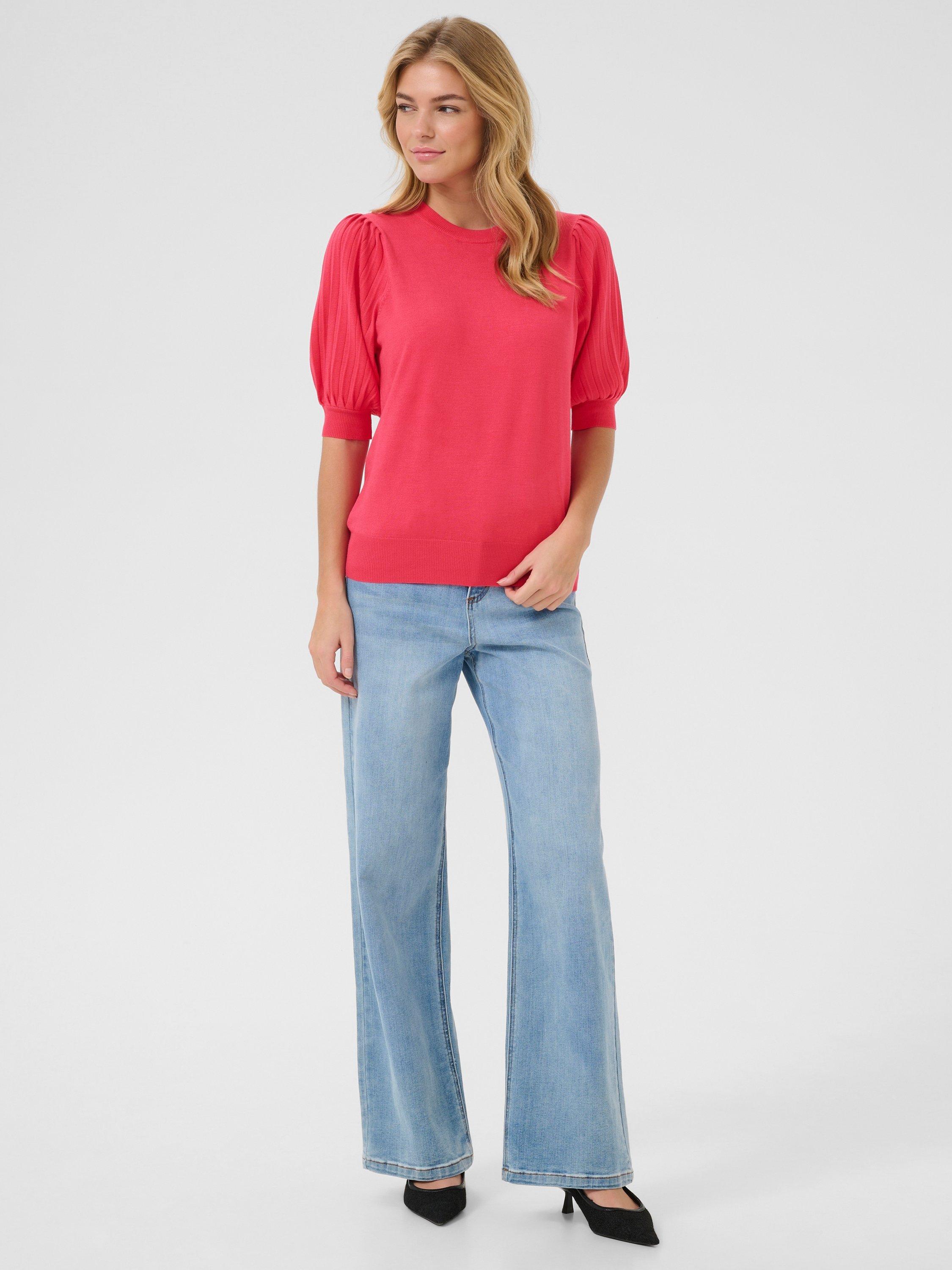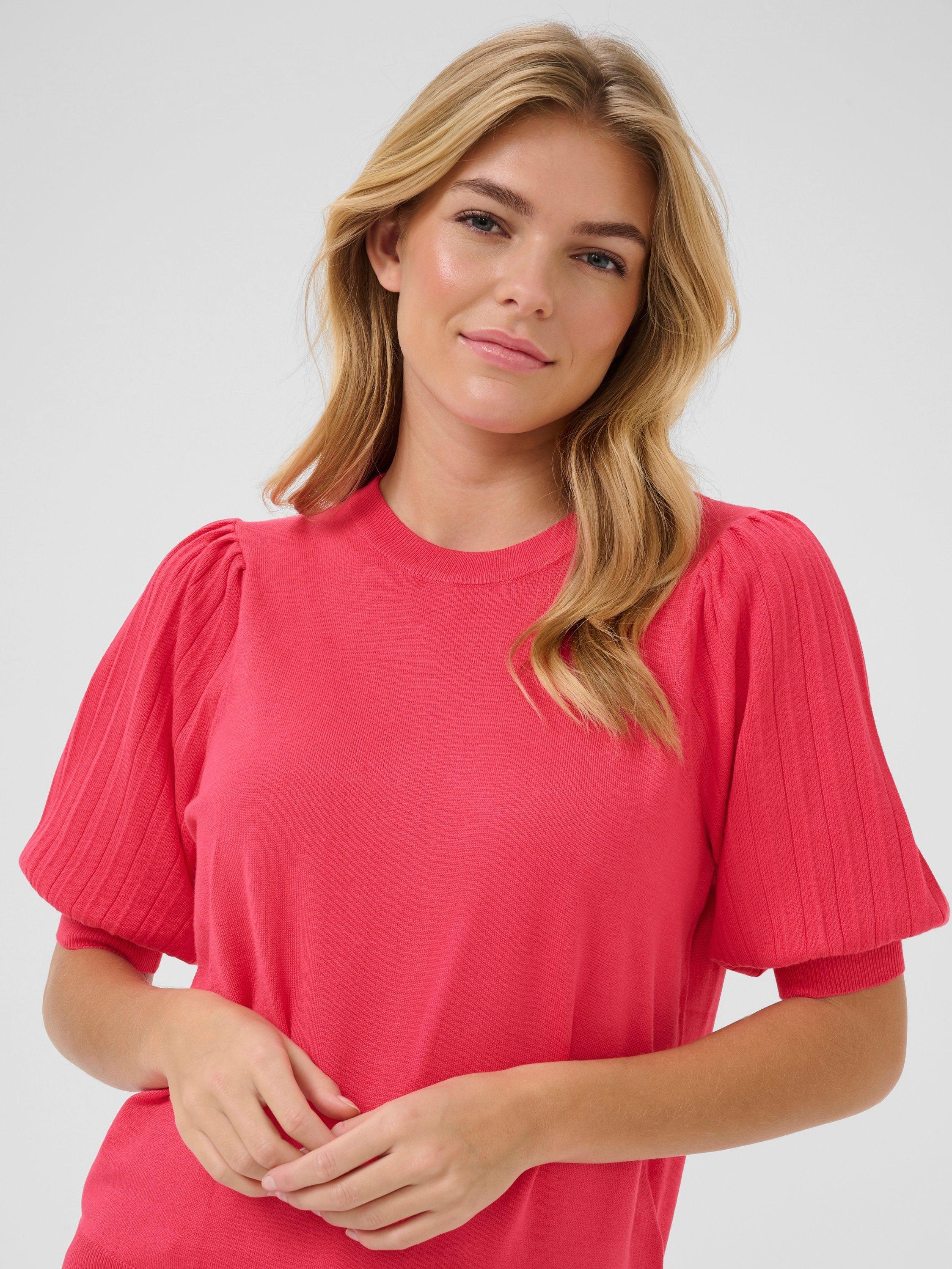 Nice and simple with a round neckline and short puff sleeves, this mid-weight jumper by KAFFE is crafted with breathable fabric for all-day wear.