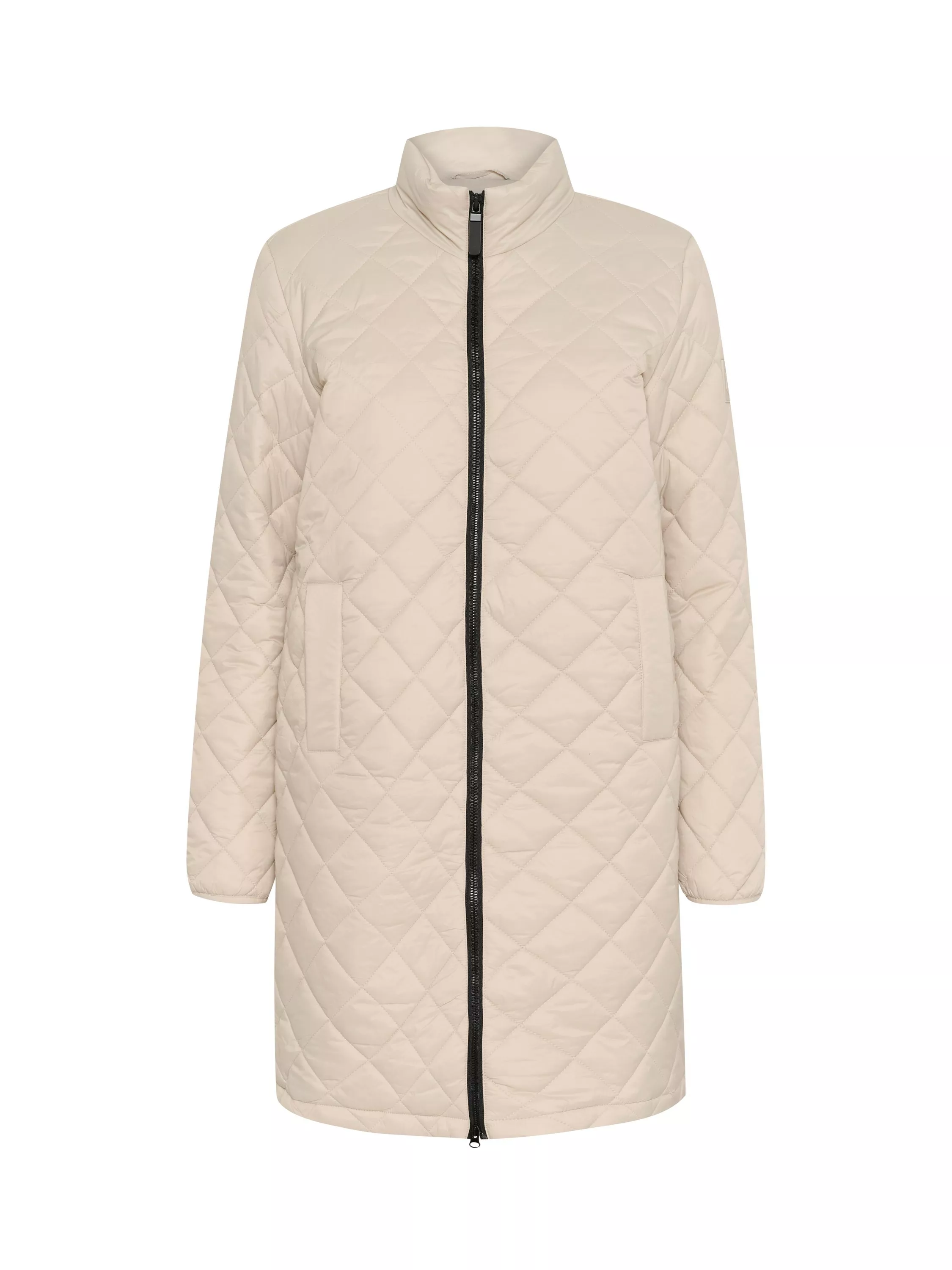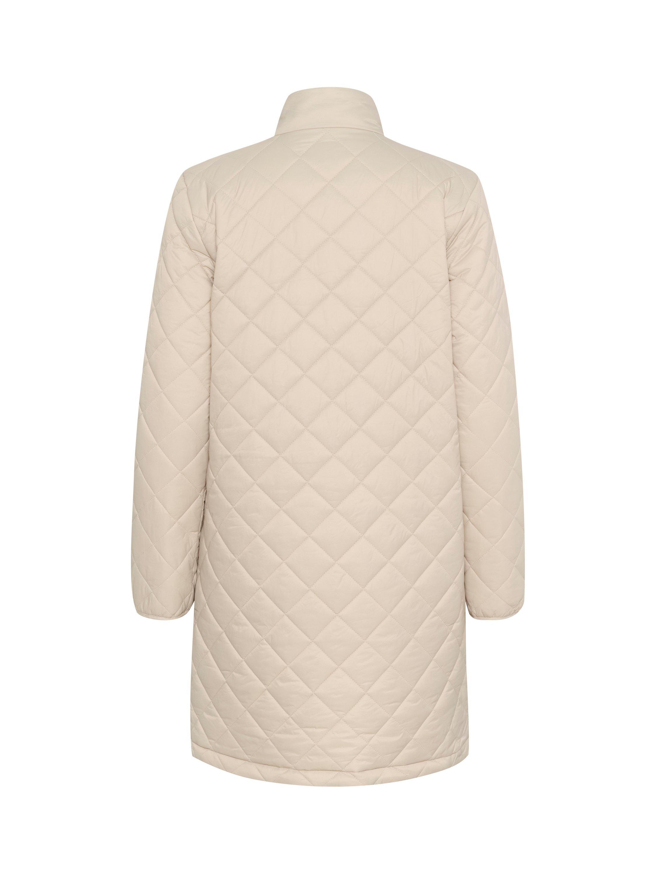 The loreen jacket is a simple piece of outerwear and the perfect choice on a chilly day. It has a high collar and zipper fastening, and it is quilted in a diamond shaped pattern. The sleeves are long with an elastic edge, and the jacket has slanted front pockets and is cut at the mid-thigh.
