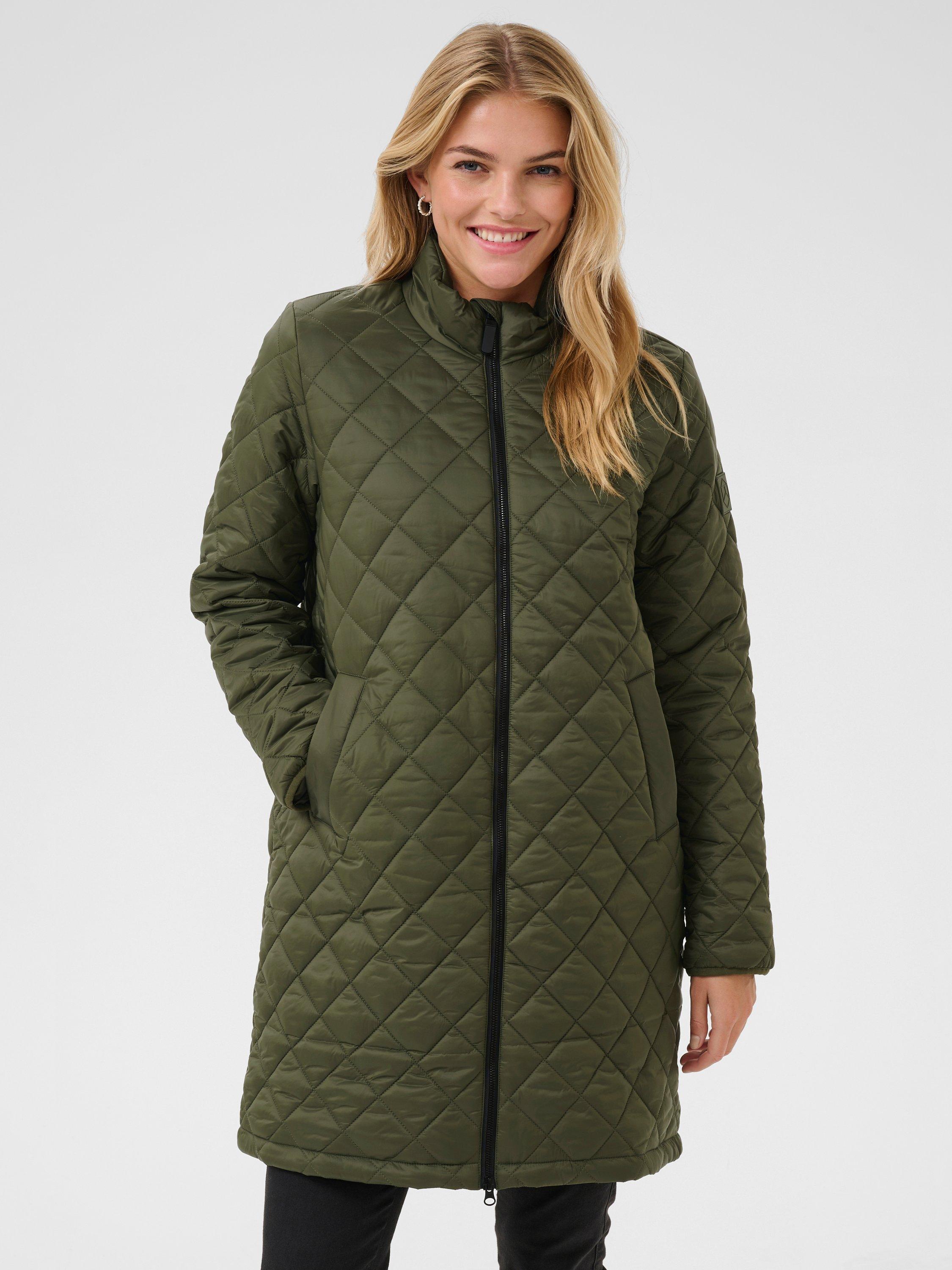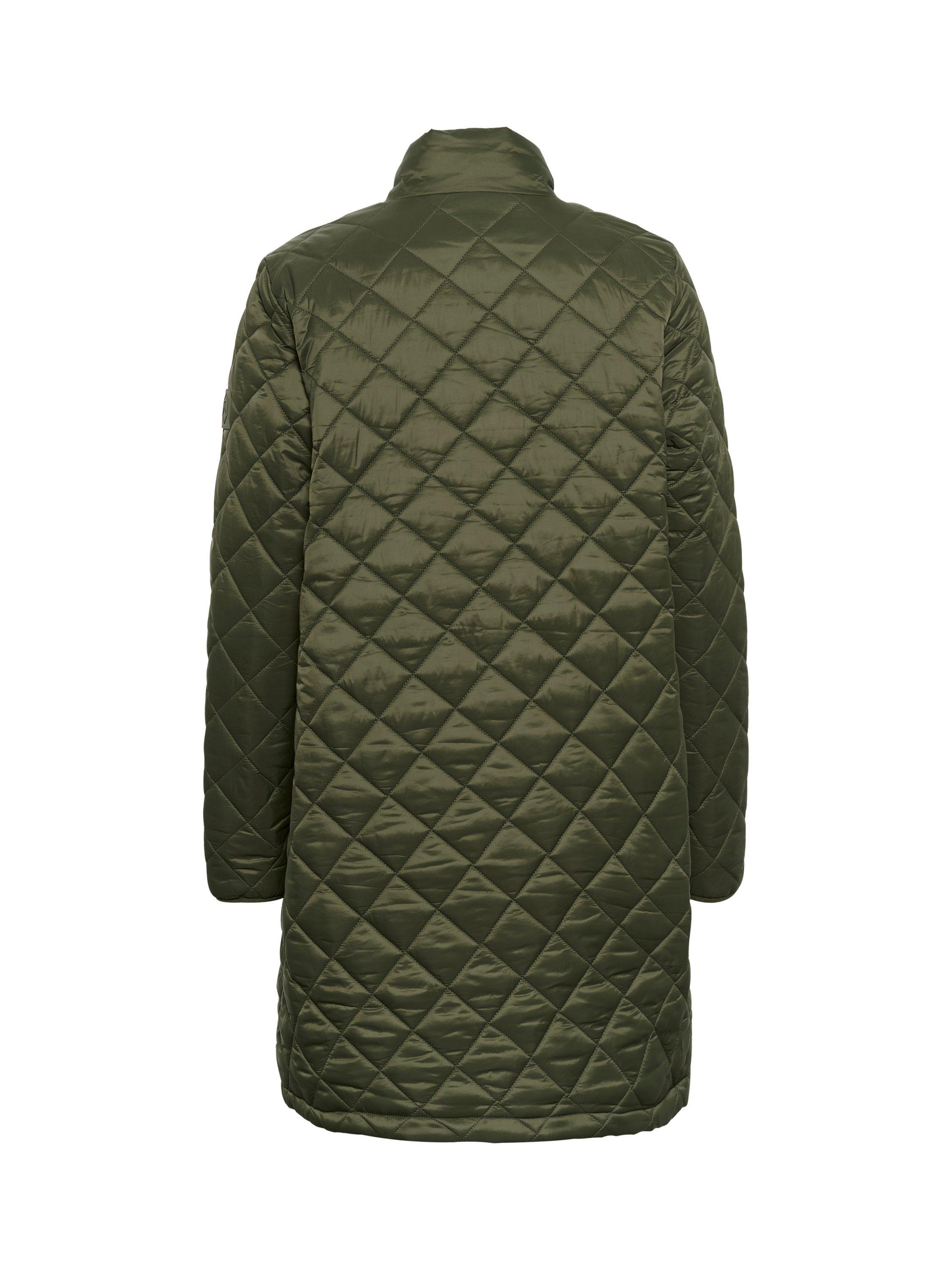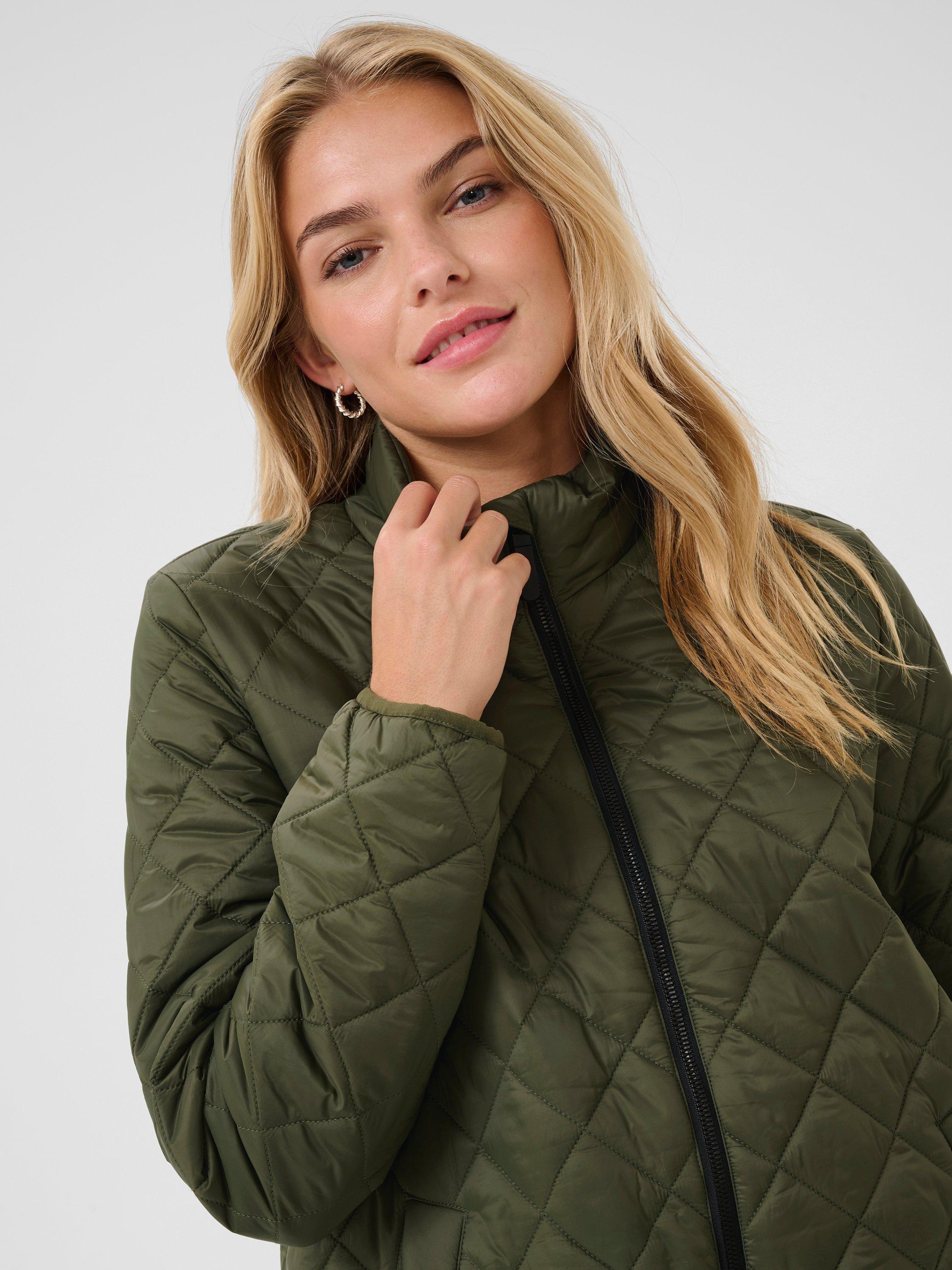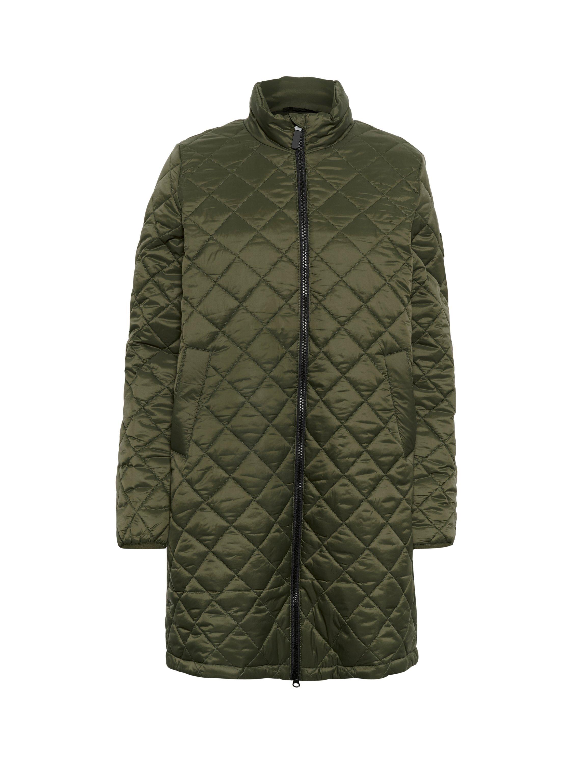 The loreen jacket is a simple piece of outerwear and the perfect choice on a chilly day. It has a high collar and zipper fastening, and it is quilted in a diamond shaped pattern. The sleeves are long with an elastic edge, and the jacket has slanted front pockets and is cut at the mid-thigh.