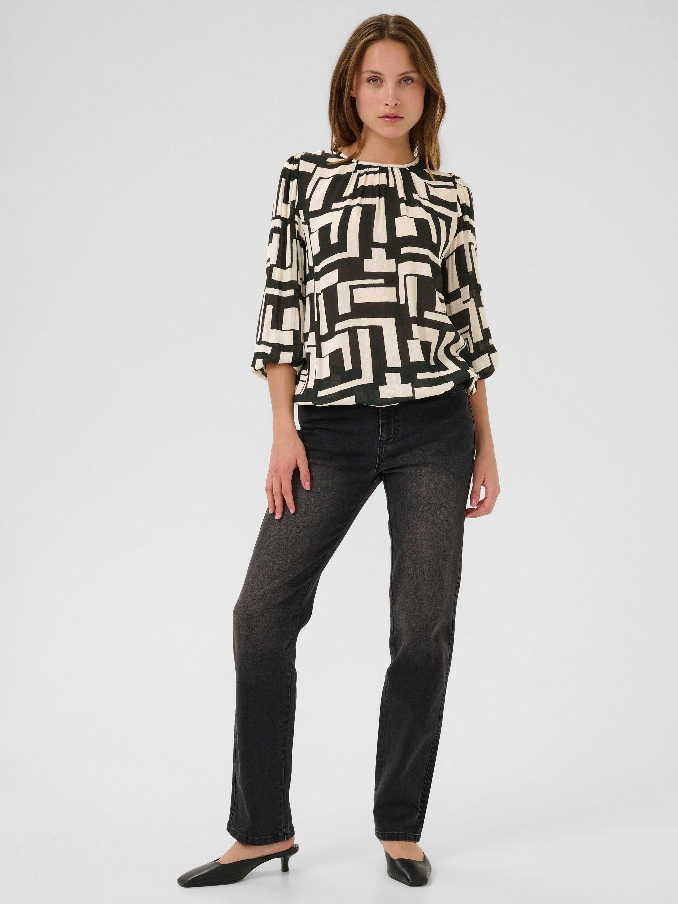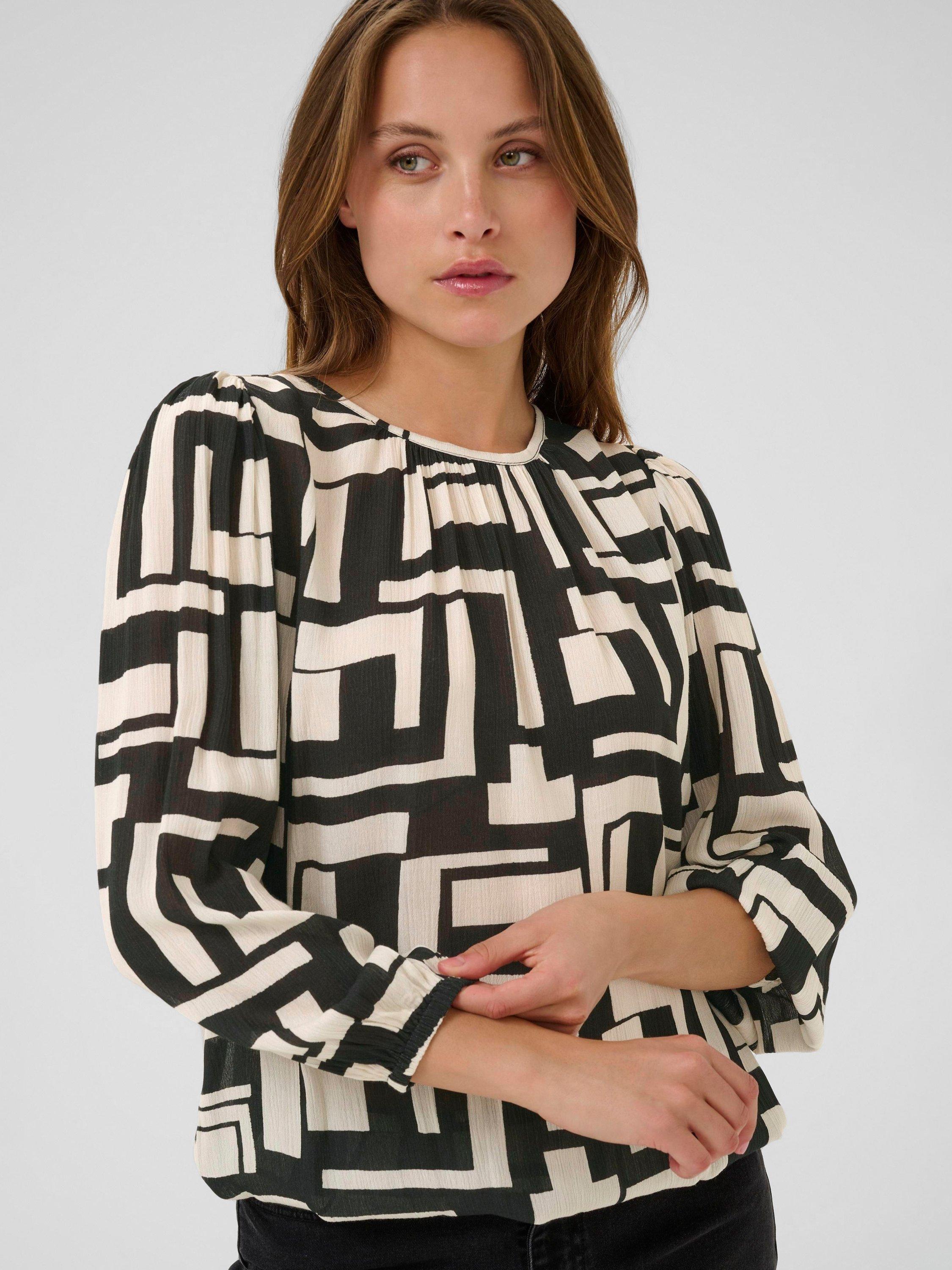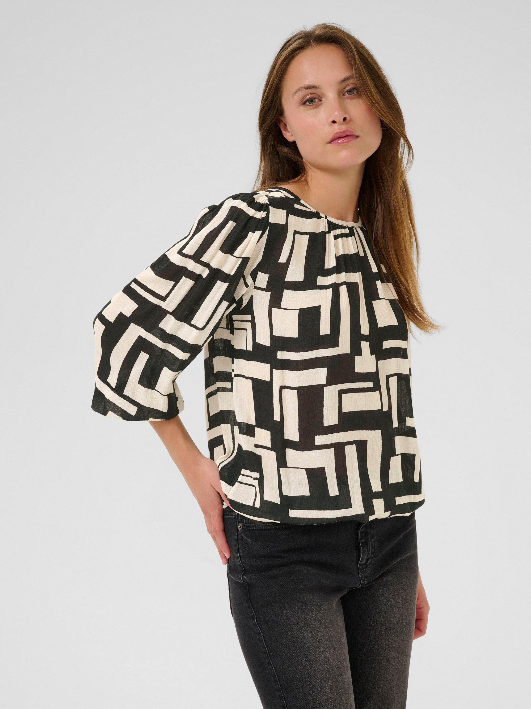 This KAFFE blouse brings a smart twist to any day with its abstract print, easy round neck, and three quarter sleeves. Soft viscose makes it comfortable for work or catching up with friends.