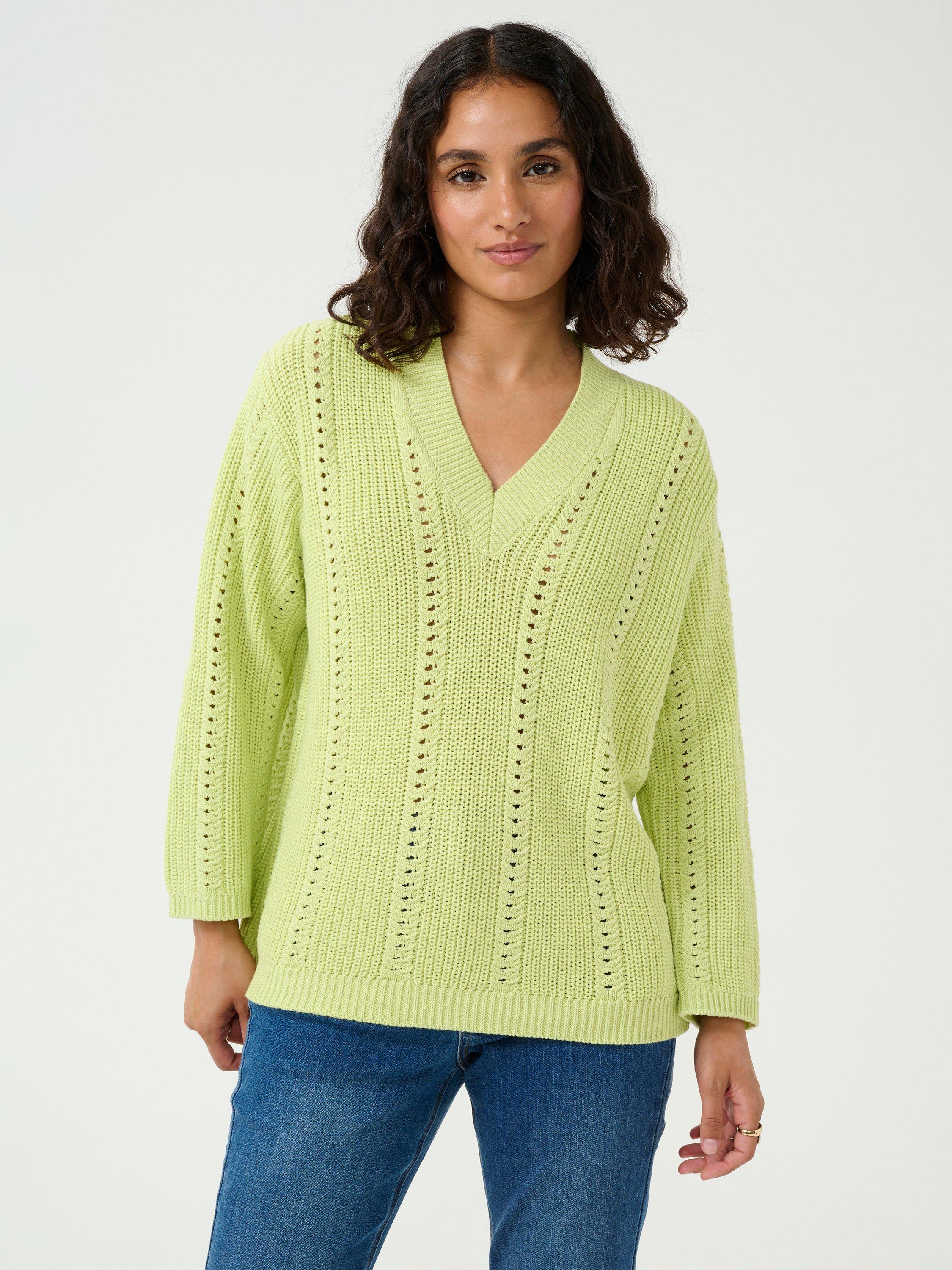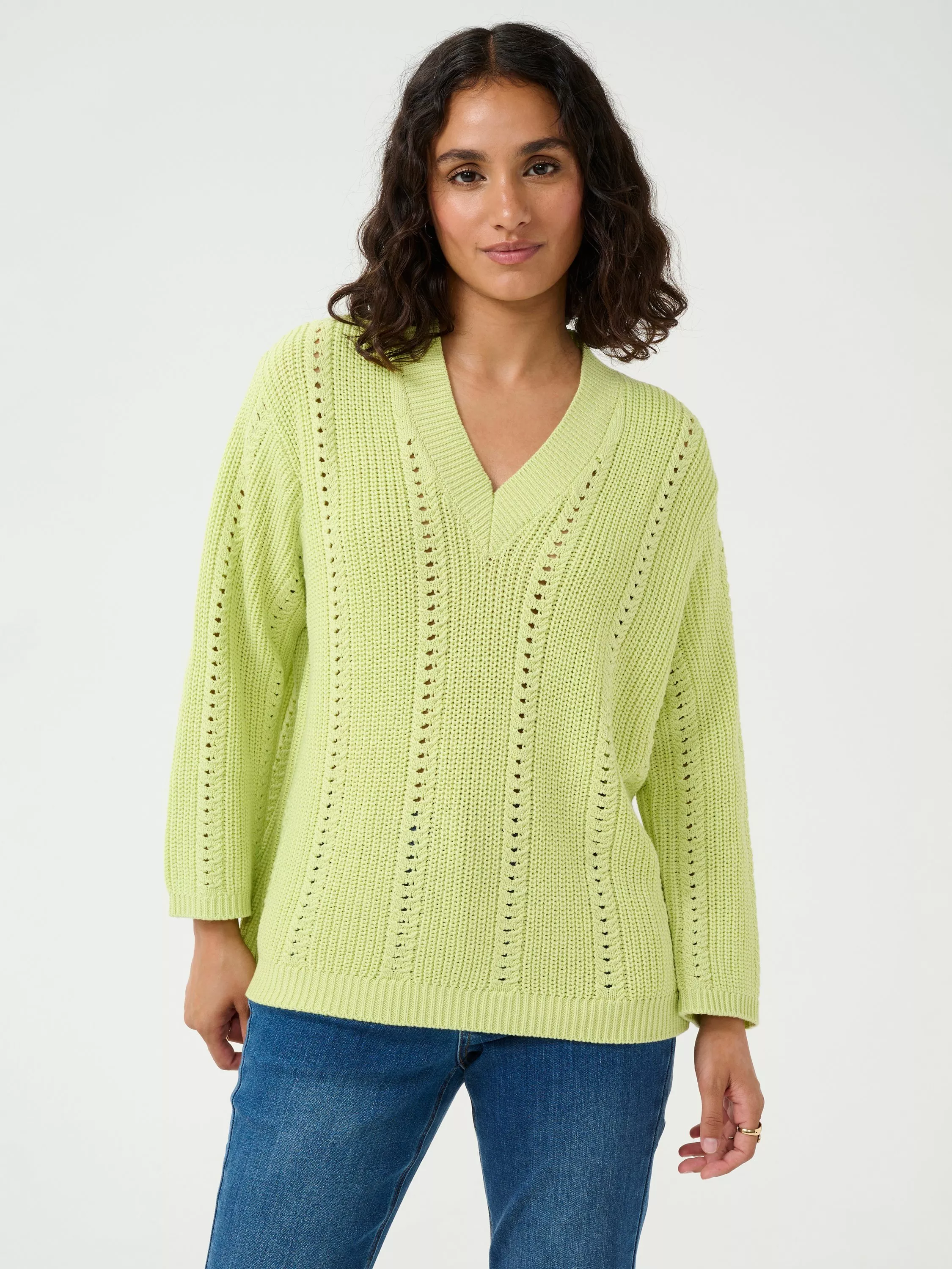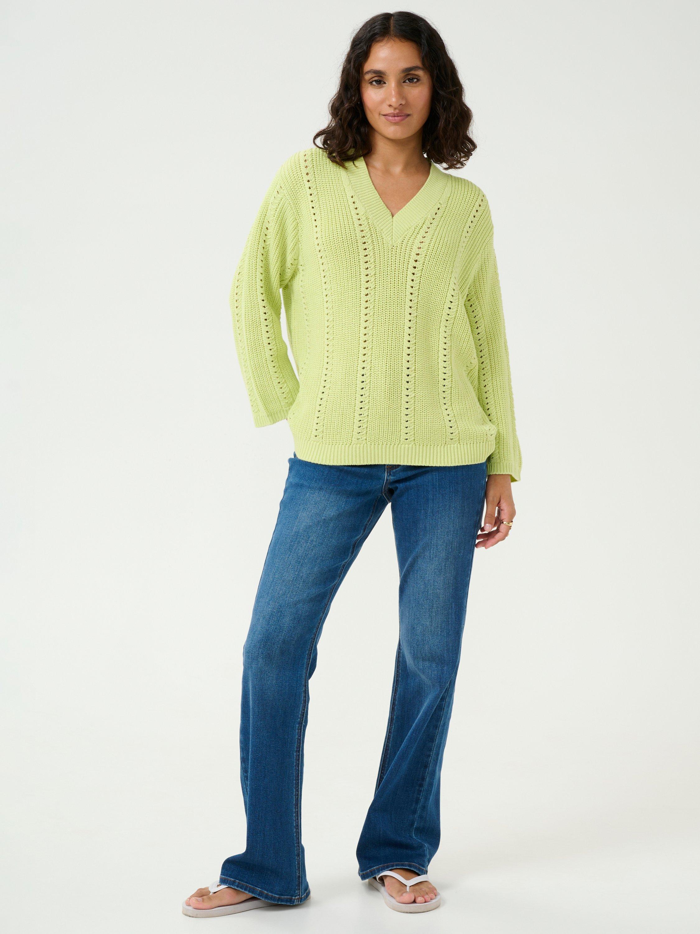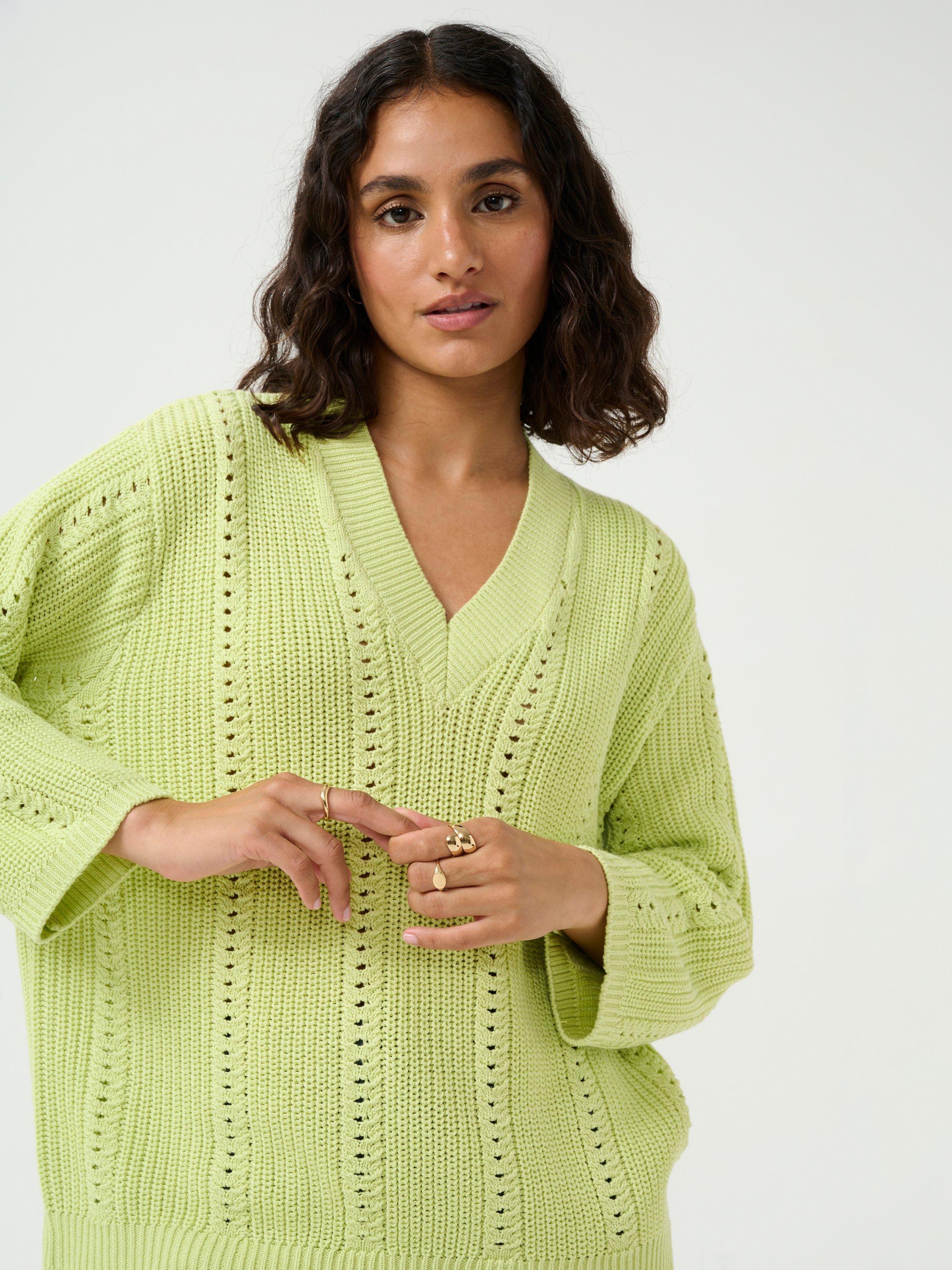 Layering neatly with a v-neckline and long sleeves, this lightweight jumper by KAFFE makes for soft wear in a rich cotton knitted blend.