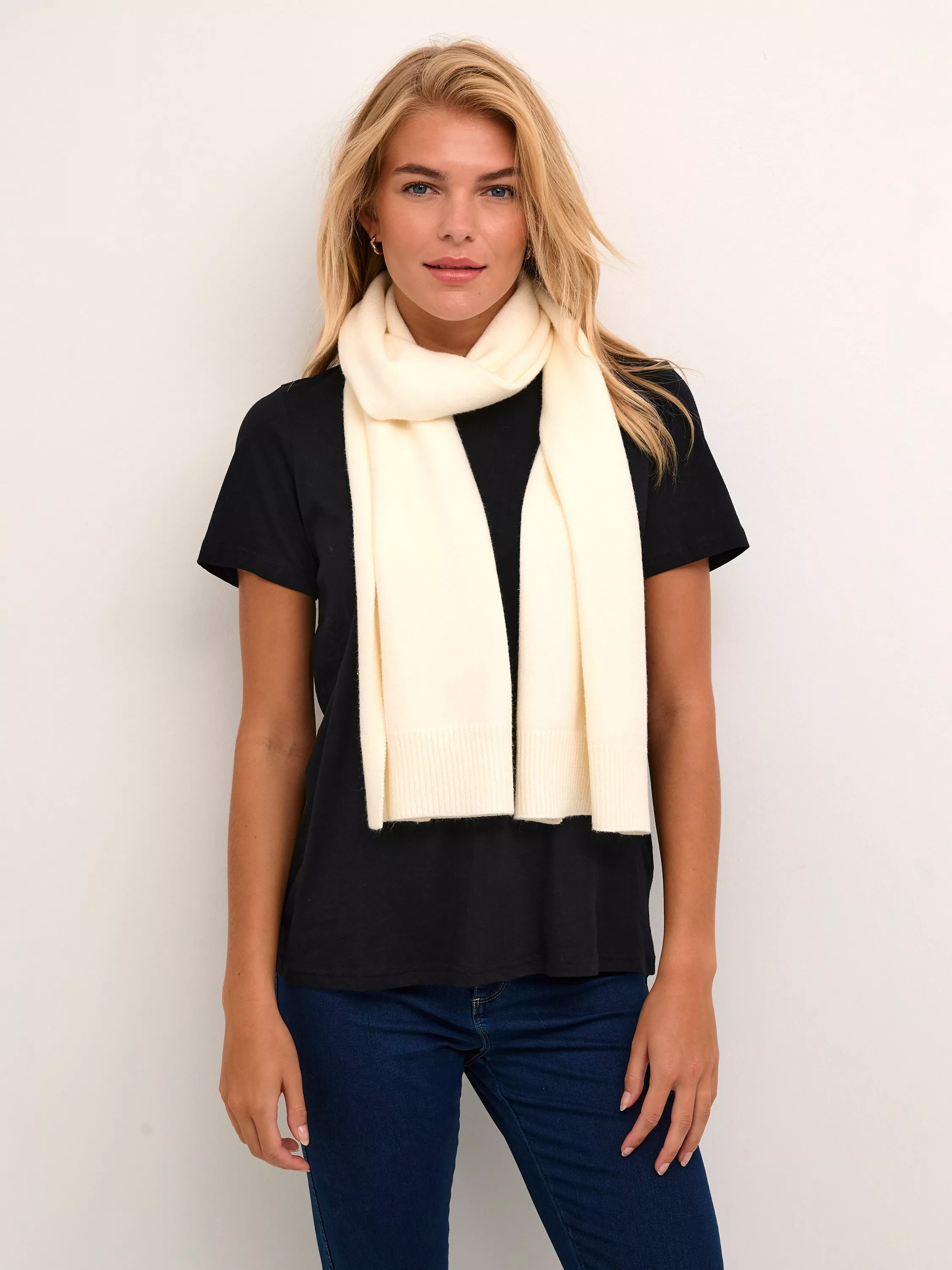 The Lotte scarf is a versatile and simple accessory, that you can style with any outfit this season. The scarf is narrow and long, so you can wrap it around your neck as many times as you want. It is made in an elastic and tightly knitted fabric.
