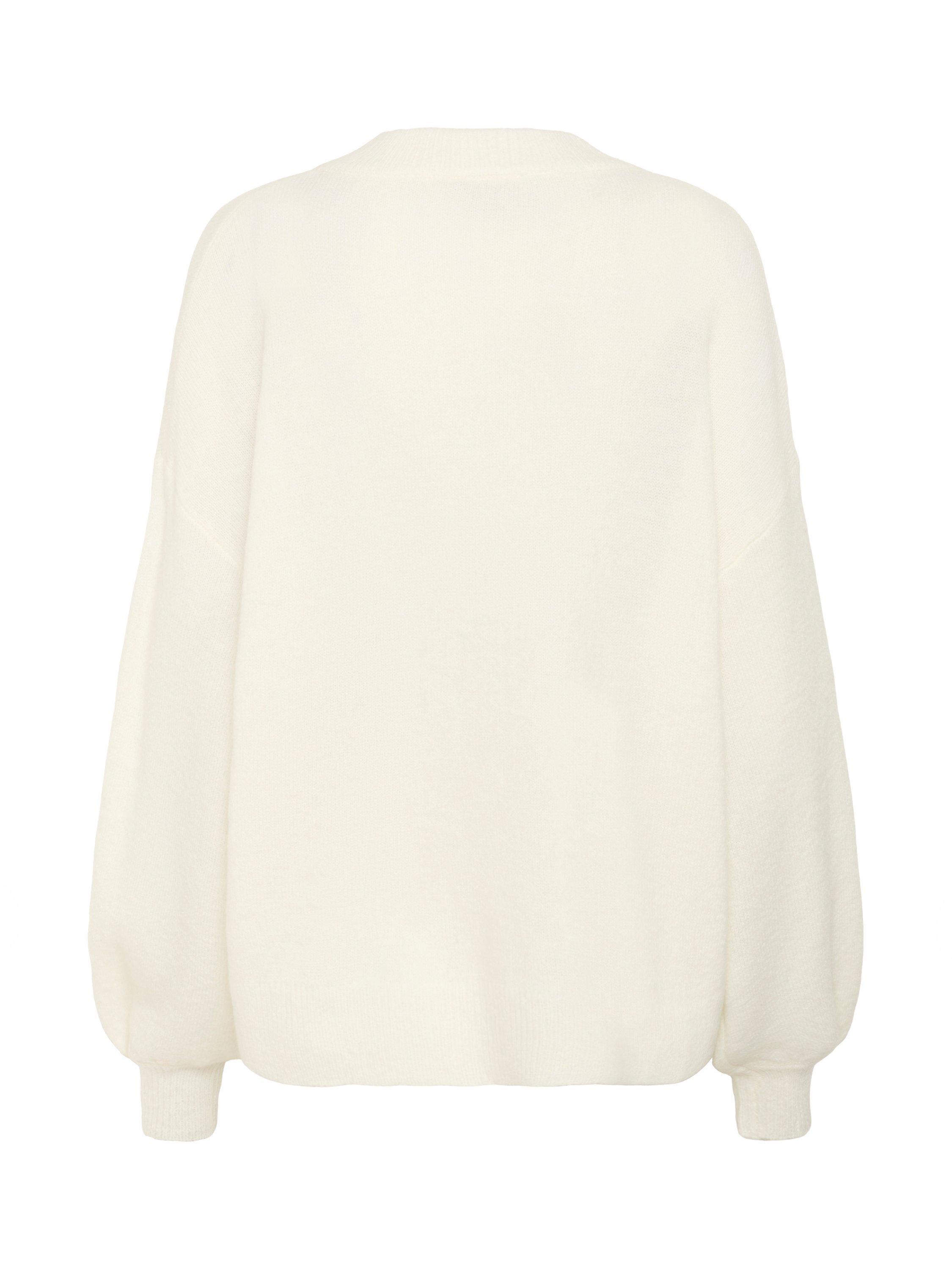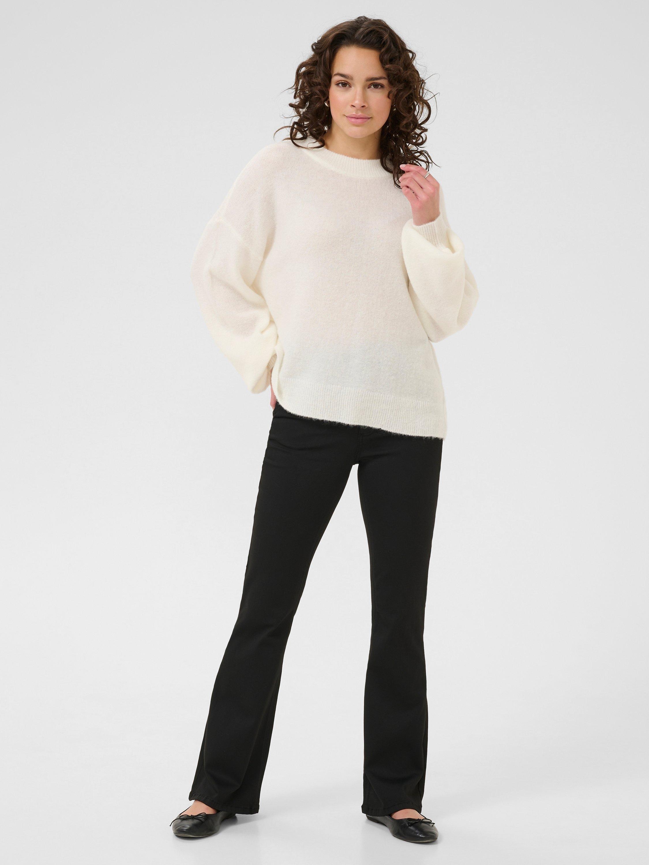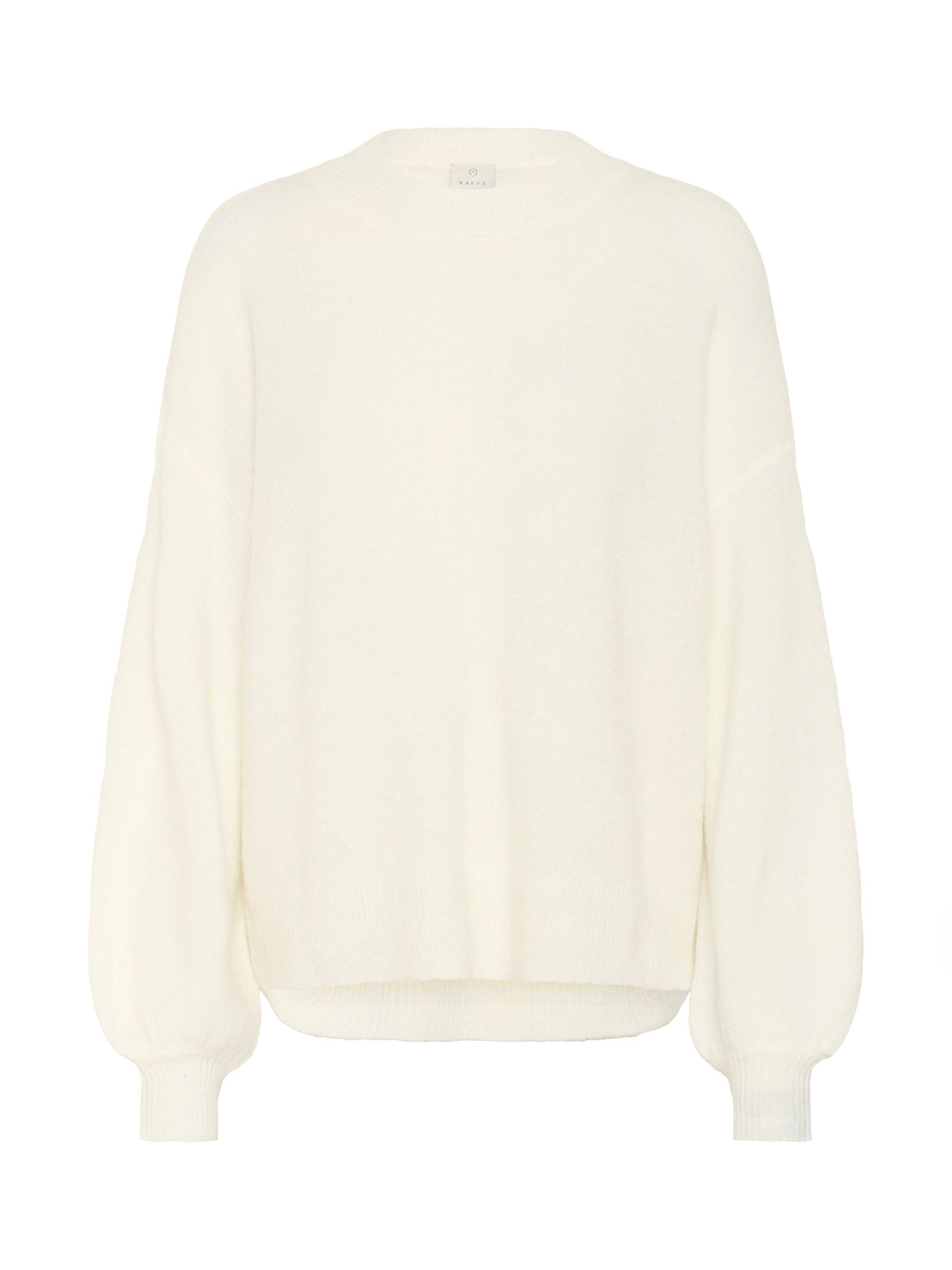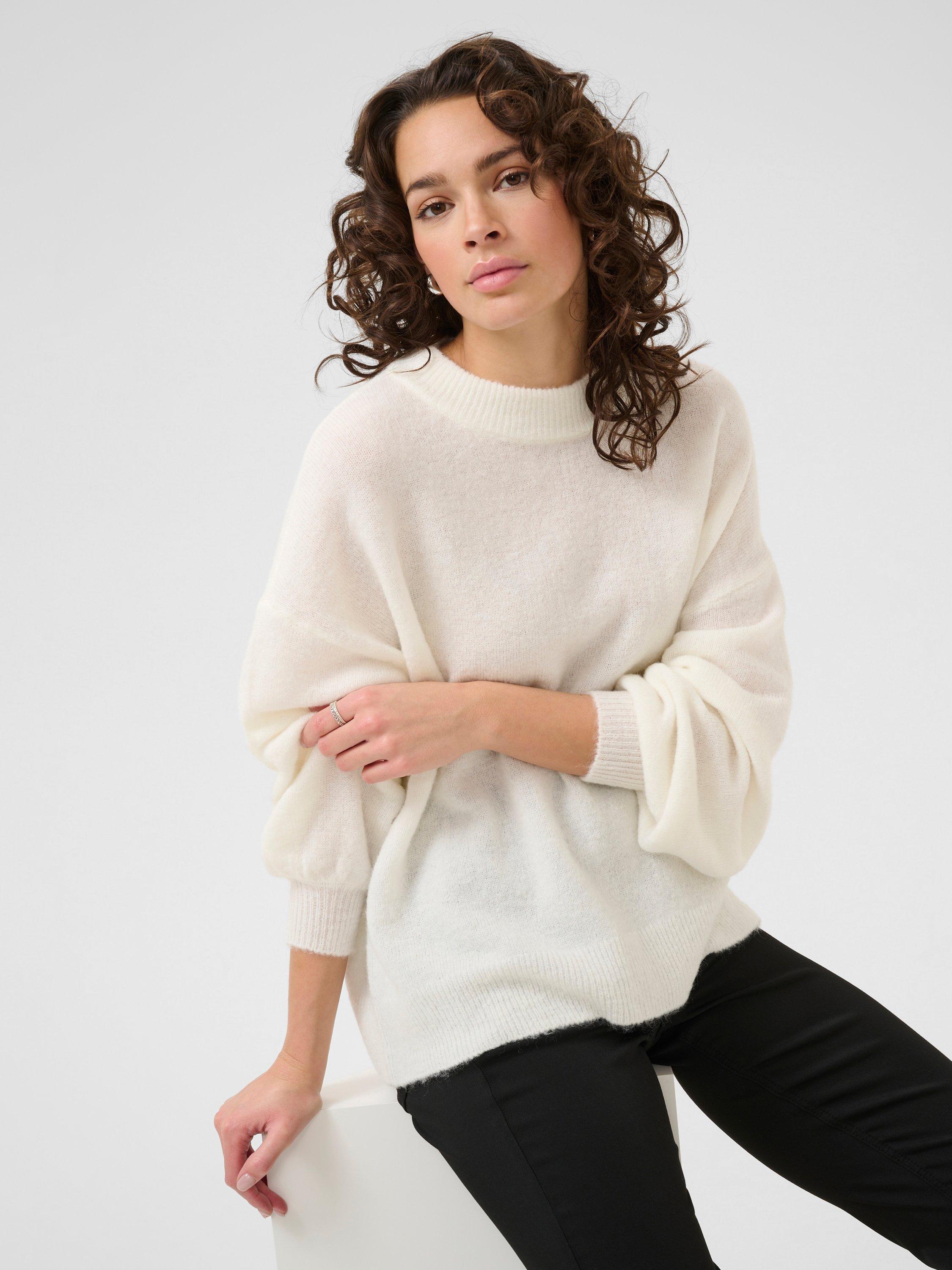 Wrap yourself in cosy elegance with the Kaffe Soft Knit Sweater. Featuring a classic crew neckline, dropped shoulders, and balloon sleeves finished with snug ribbed cuffs, it's designed for effortless layering and a chic silhouette.