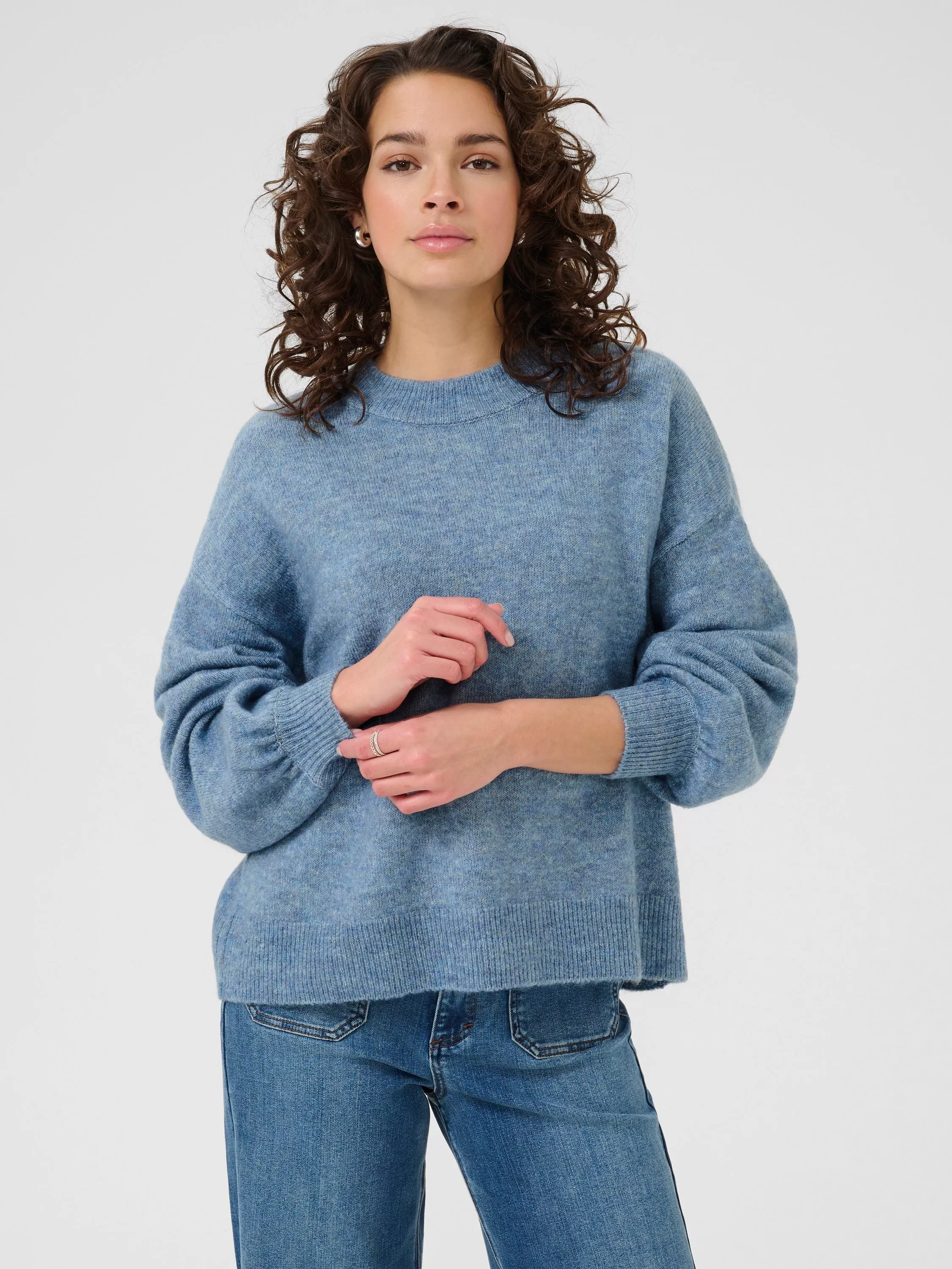 With a simple crew neckline and long sleeves, this mid-weight jumper by KAFFE is blended with wool. An easy choice for crisp mornings or cosy evenings