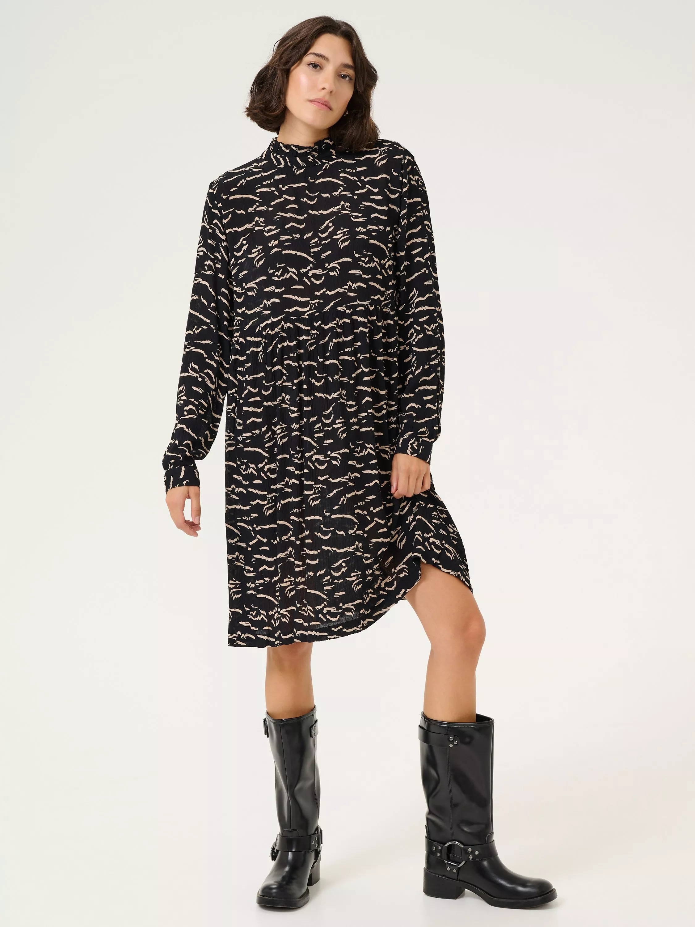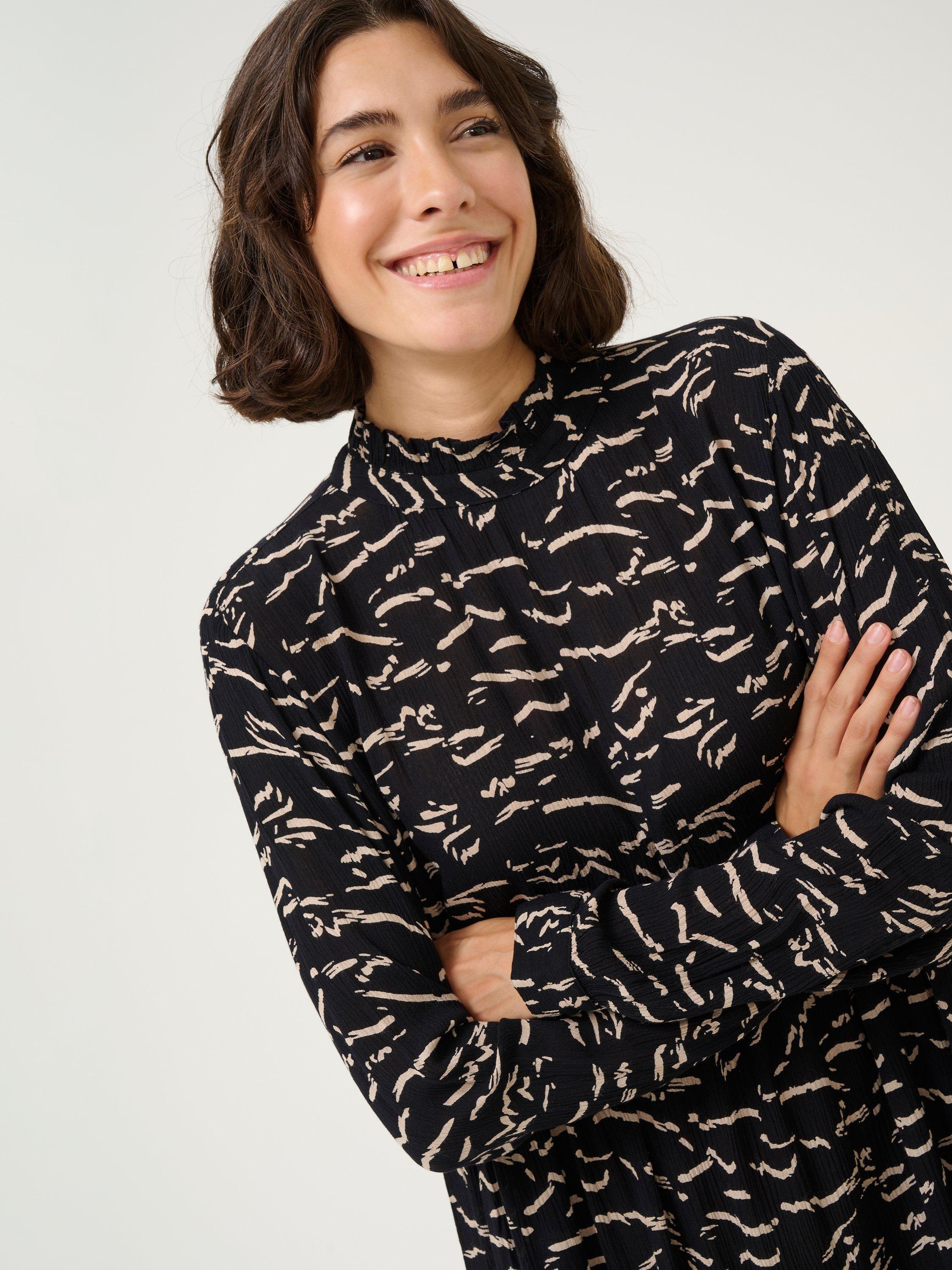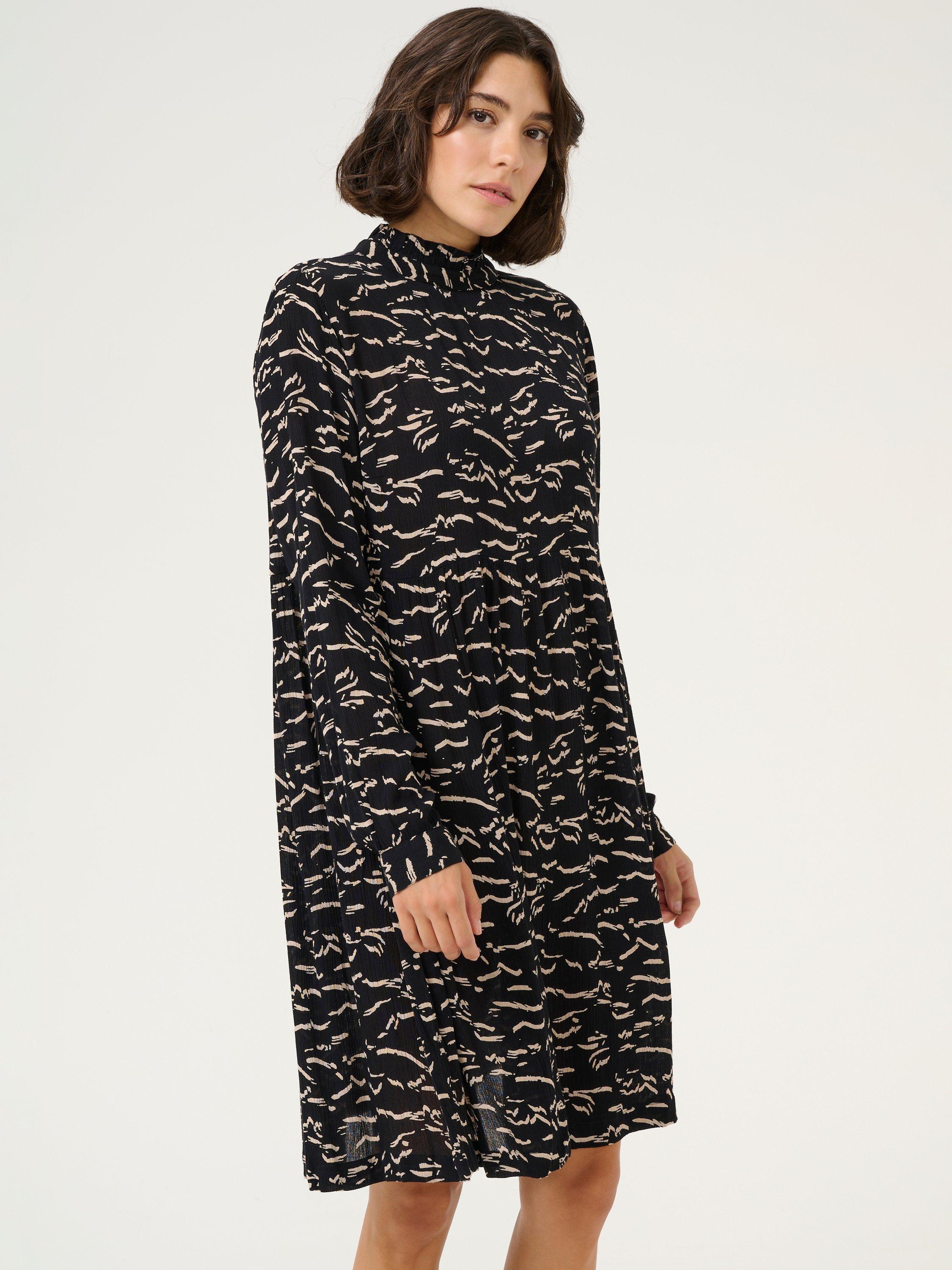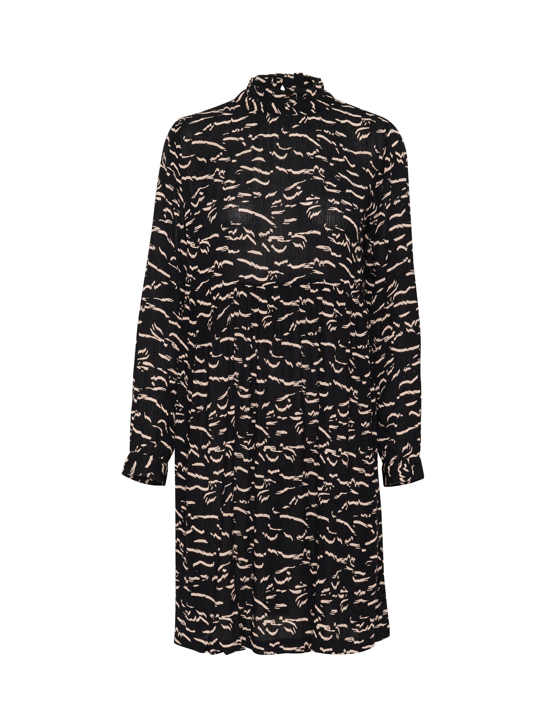 In a fuss-free smock style with an empire line waist, this thigh-grazing dress from KAFFE is crafted from an airy viscose fabric. Defined with a high neckline with frills and full-length loose sleeves with narrow, buttoned cuffs, this style is brought to life with an abstract print.