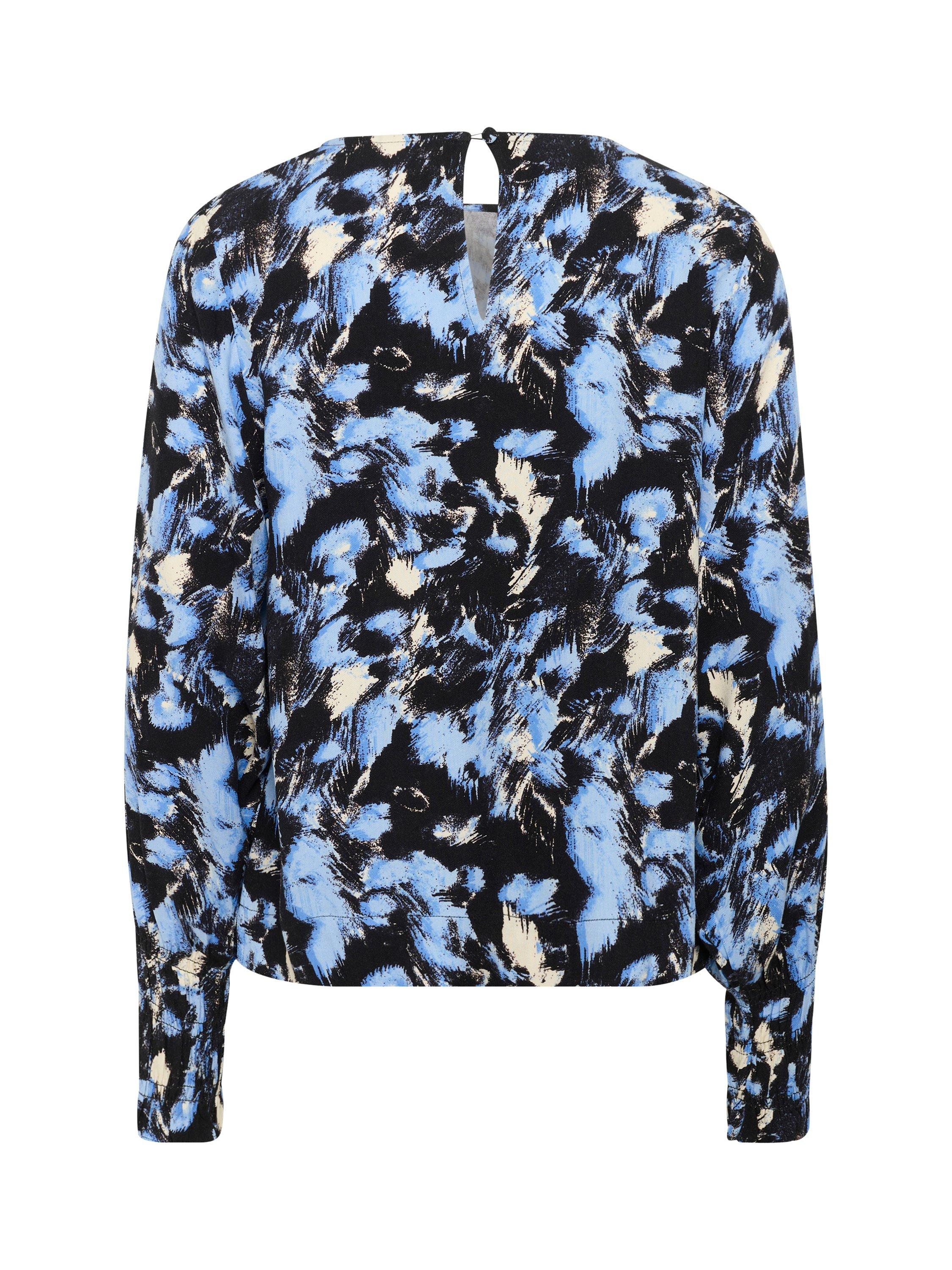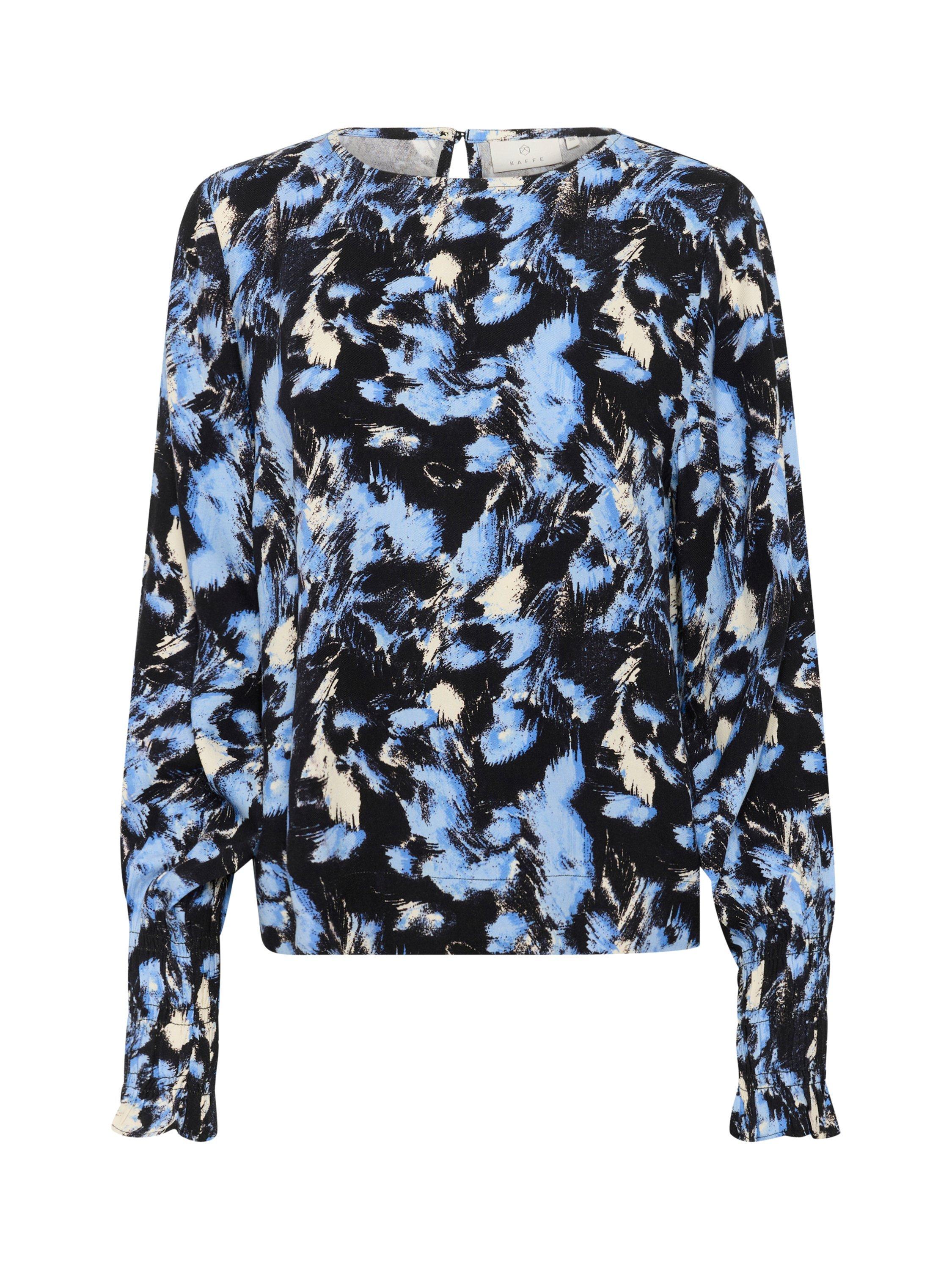 The lura blouse is feminine and versatile top with endless styling options. It has a round neck with a button fastening at the back, and it has a regular fit. The sleeves are long and loose-fitting bishop sleeves, and they are gathered in a wide smock cuff.