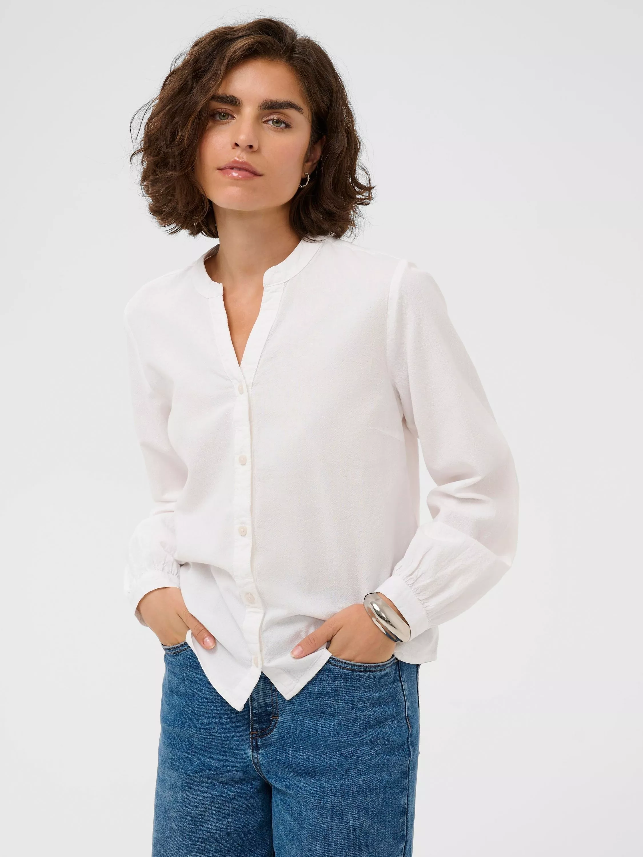 An effortless relaxed-fit blouse from KAFFE, made from soft and breathable cotton. With a mandarin collar neck and long sleeves, it comes in an easily styled plain colouring.