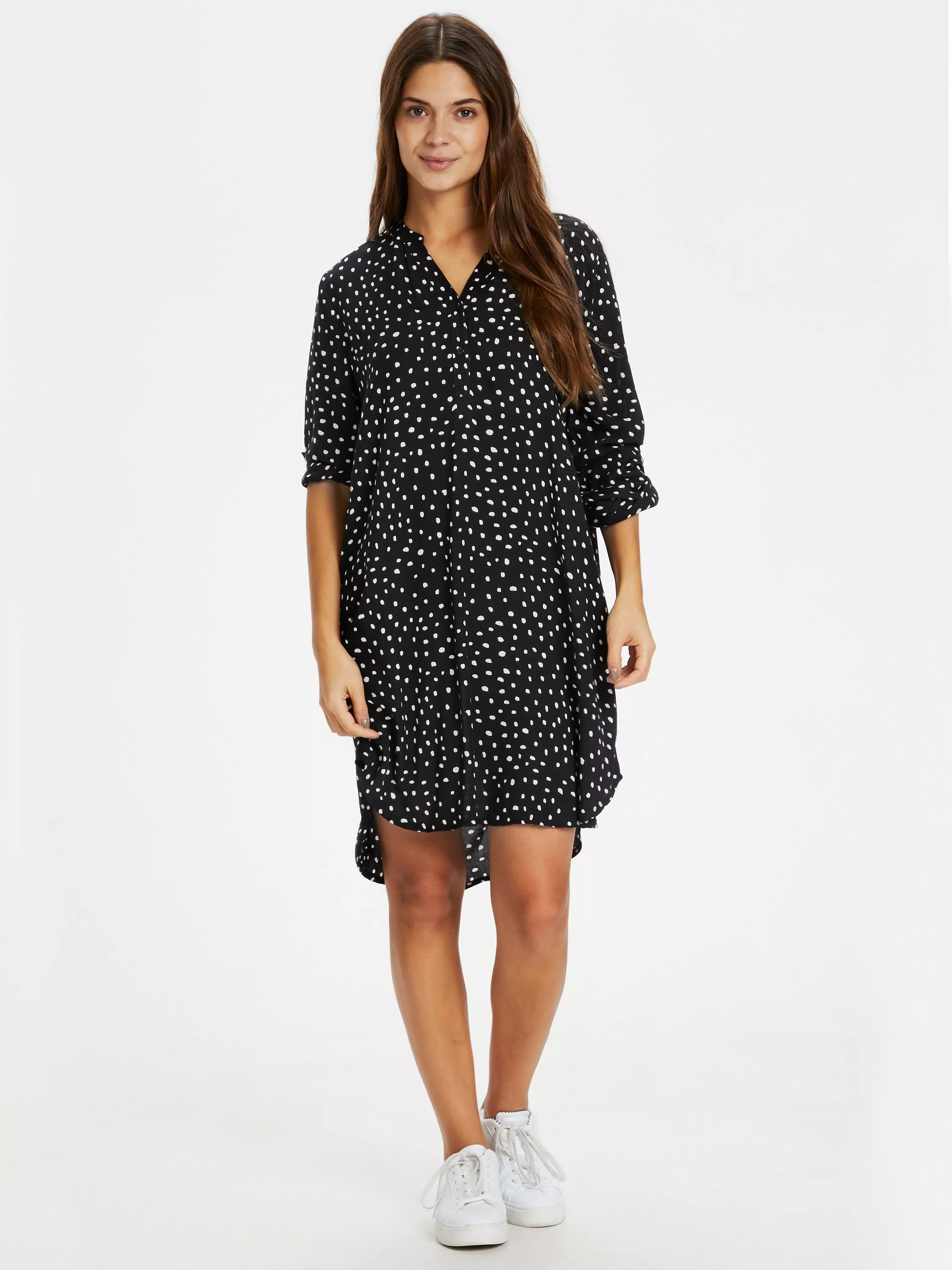 A sleek and modern choice, this thigh-grazing dress from KAFFE is made from viscose that's beloved for its weightless feel. With a universally flattering v-neckline and elbow length sleeves, it is decorated with a standout abstract spot pattern throughout.
