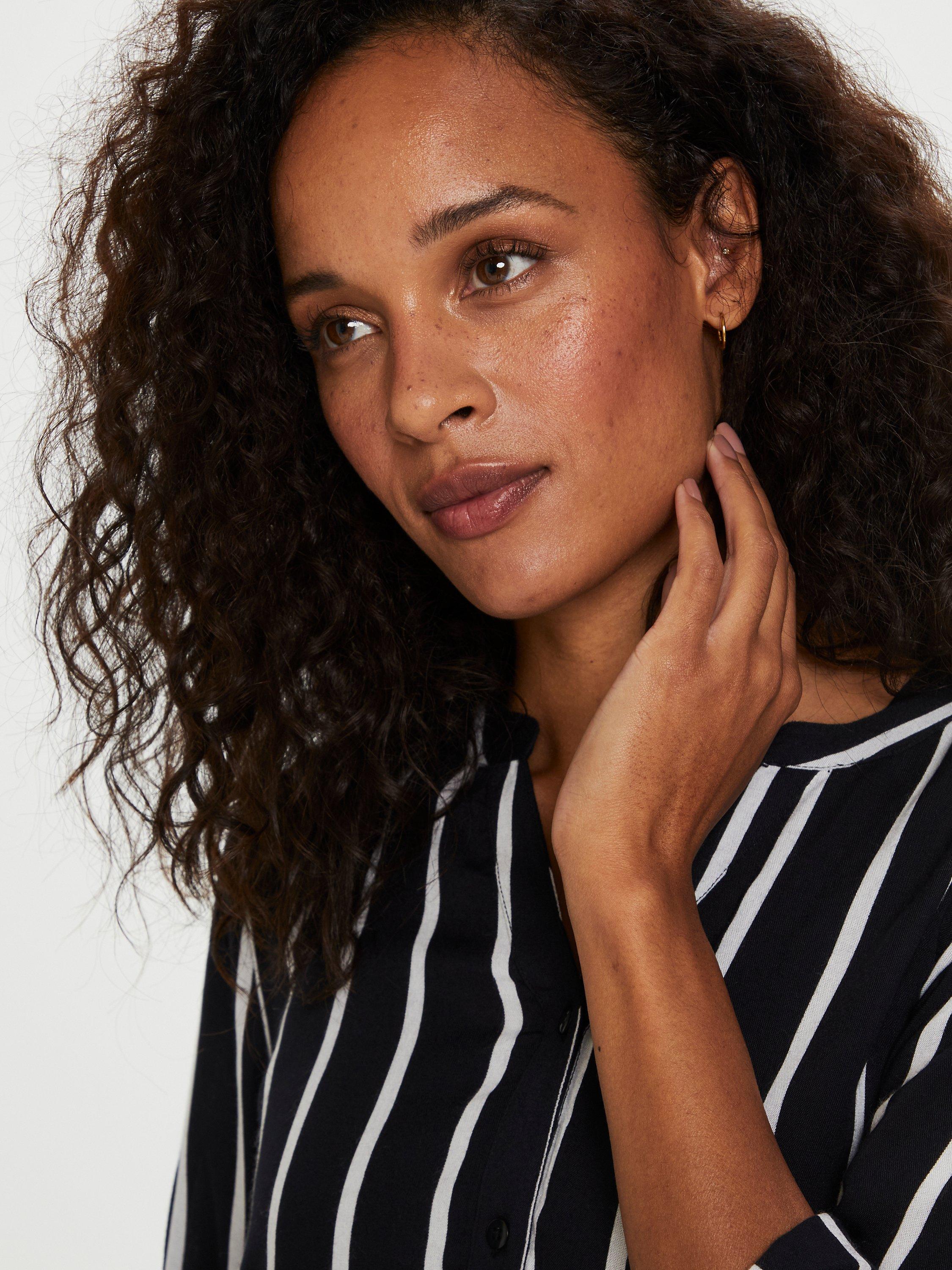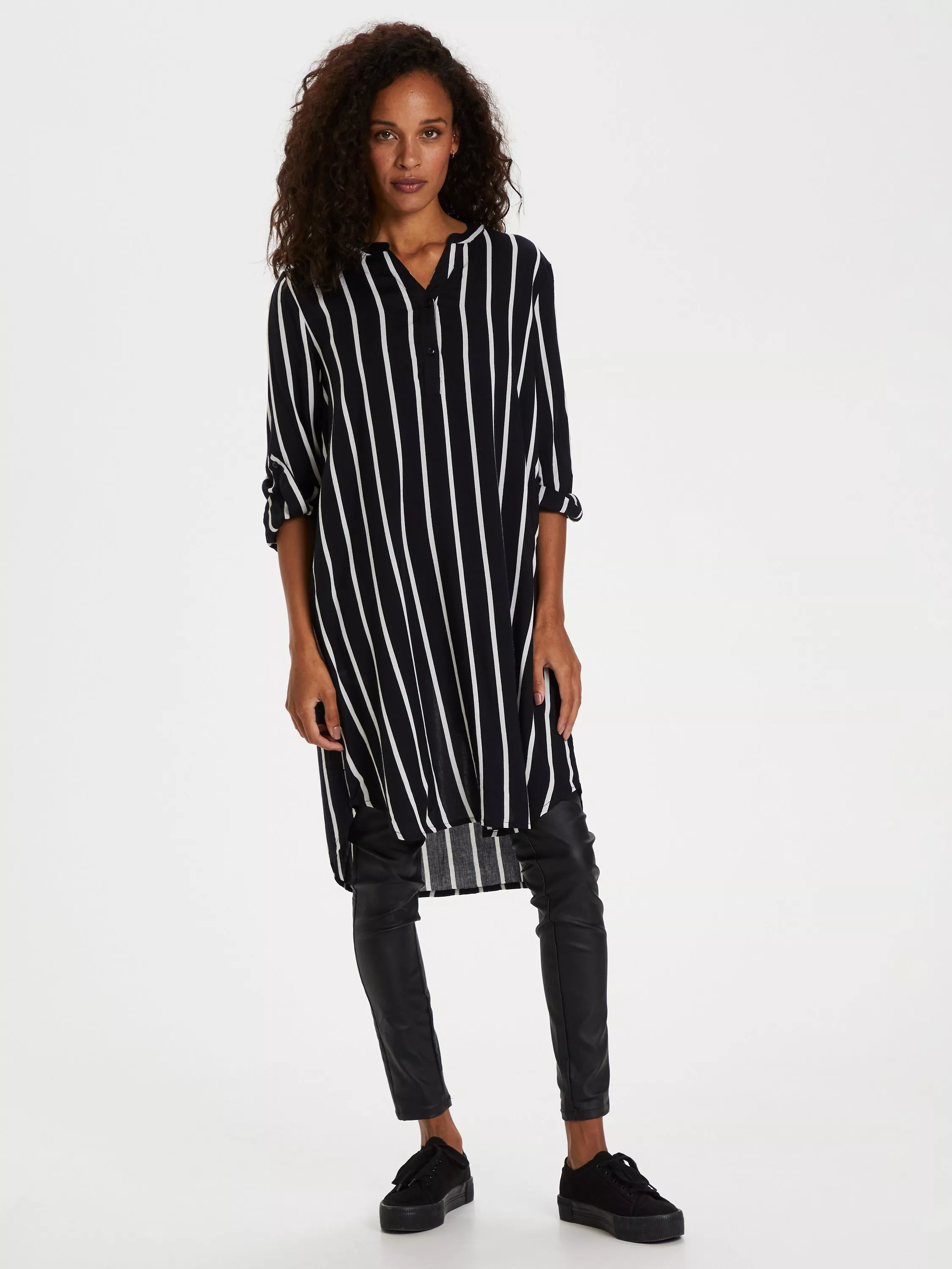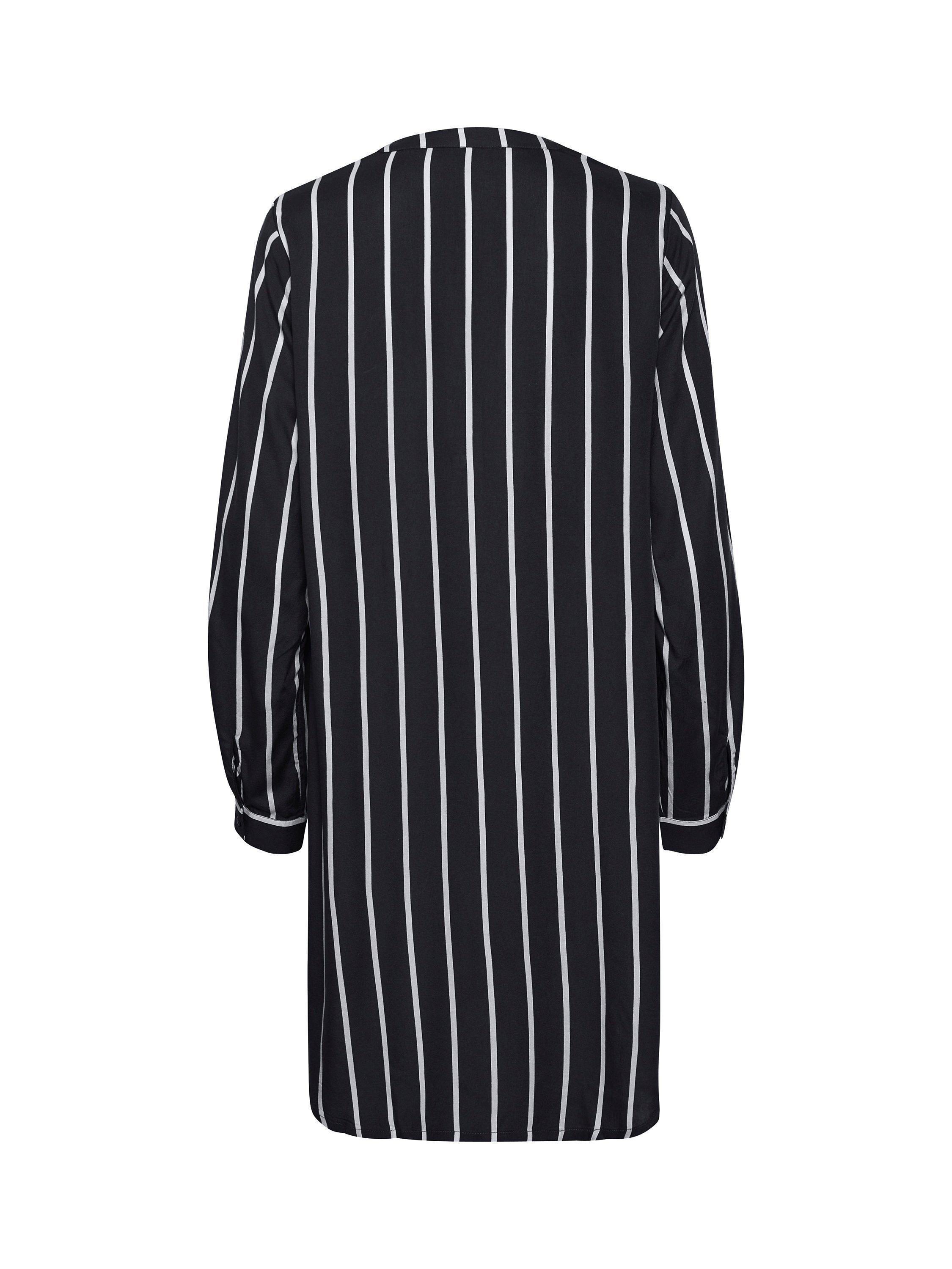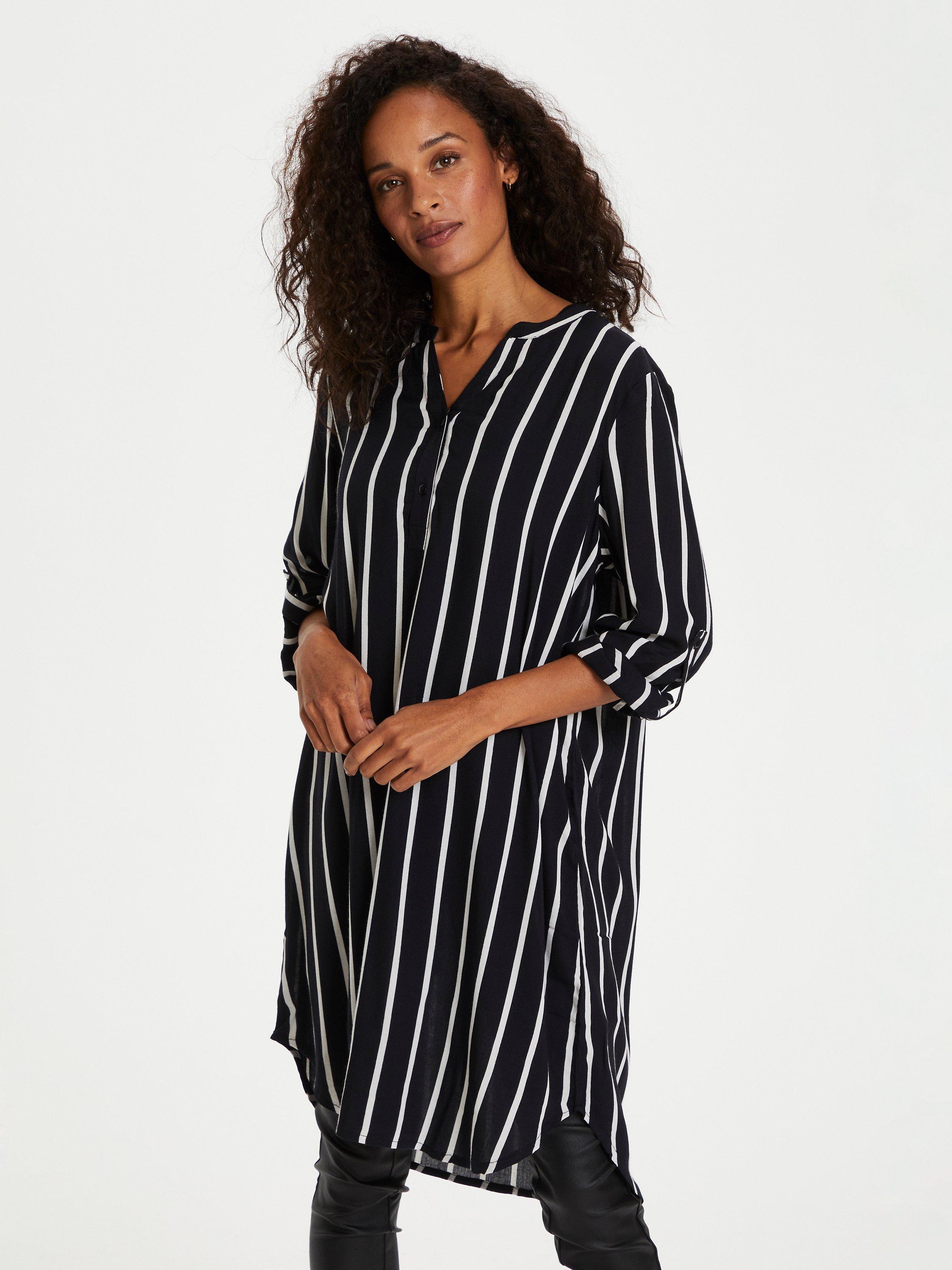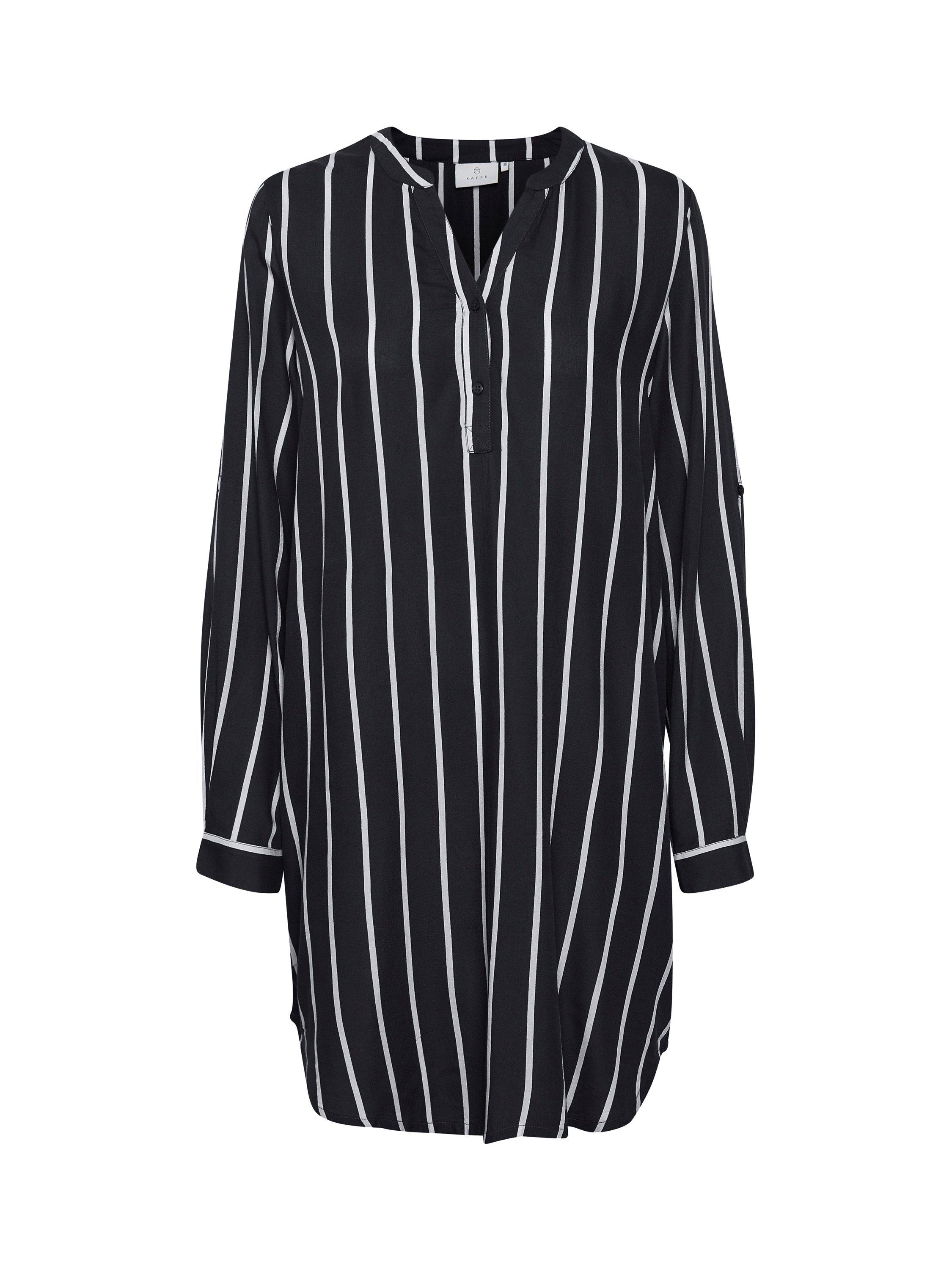 In a shirt style with a dipped hem that you will wear again and again, this mini dress from KAFFE is made from liquid-like viscose. Effortlessly flattering thanks to a fuss-free v-neckline and elbow length sleeves, this style is spotted for a distinctive pattern.