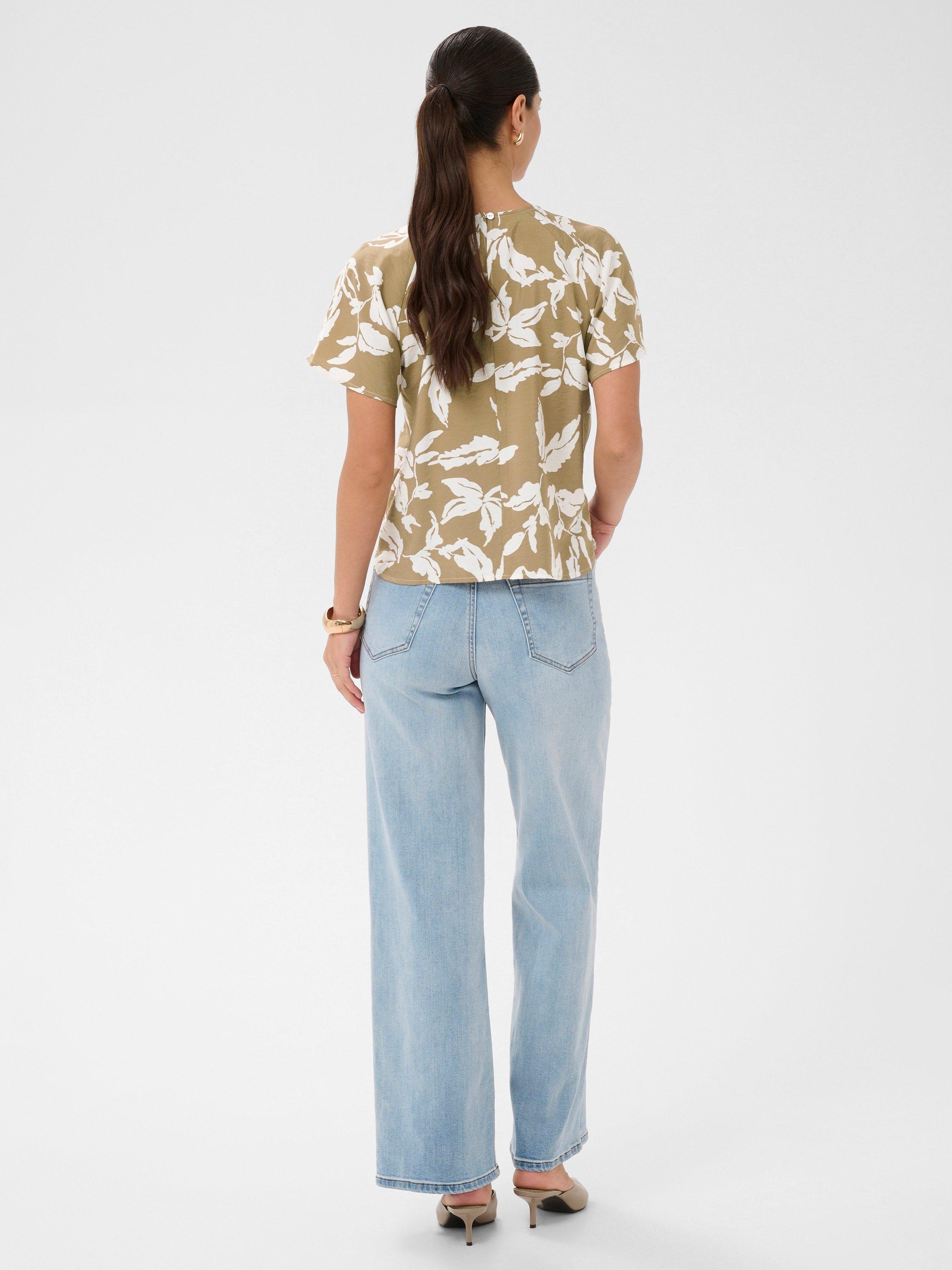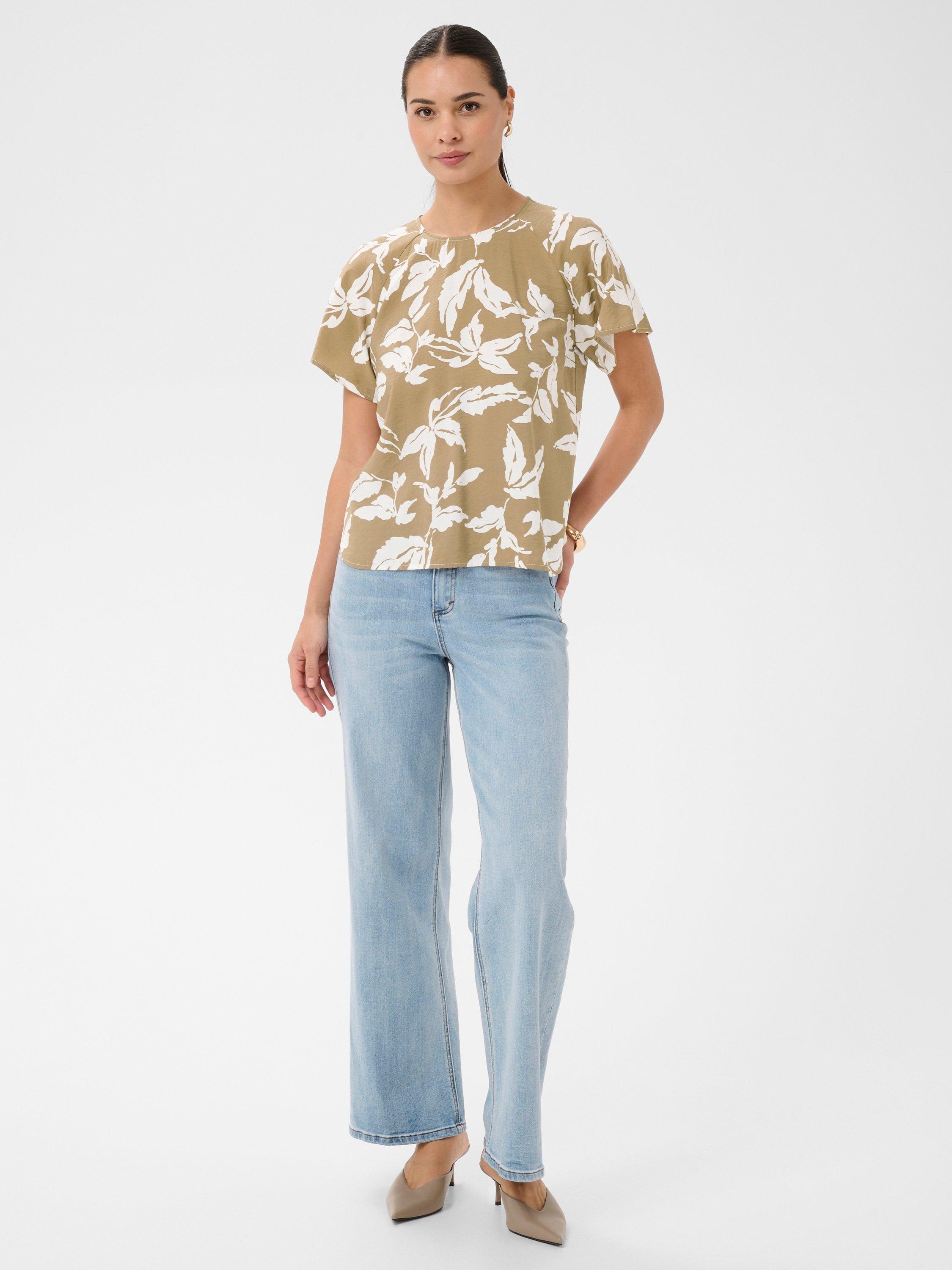 A soft, drapey blouse by KAFFE, made from a lightweight viscose blend. Featuring a round neck and short flutter sleeves, it gives a nod to nature with its unique print.
