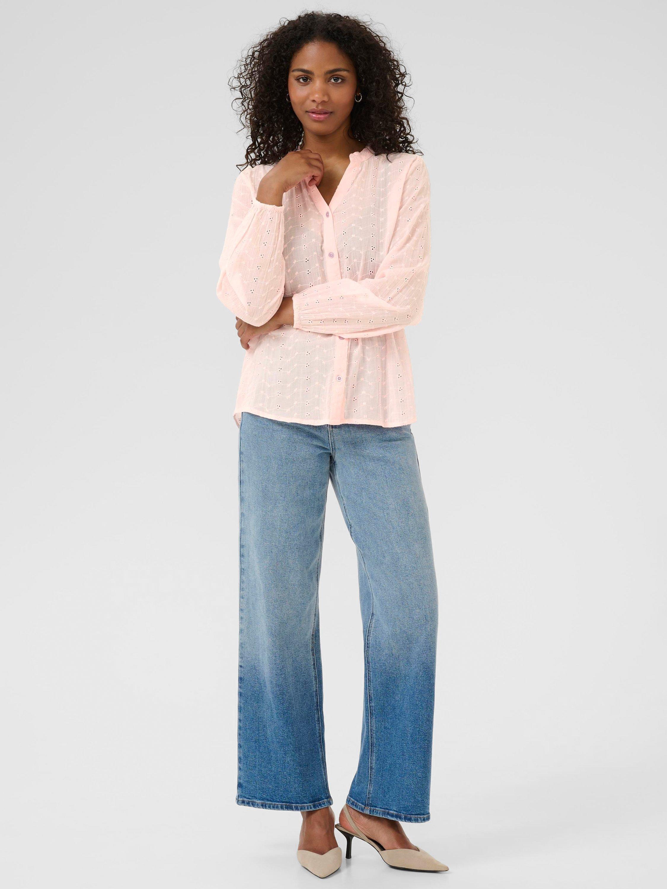 KAFFE’s blouse blends comfort and style in 100% cotton. Its V-neck and long sleeves offer a nod to classic tailoring, reimagined for everyday ease.