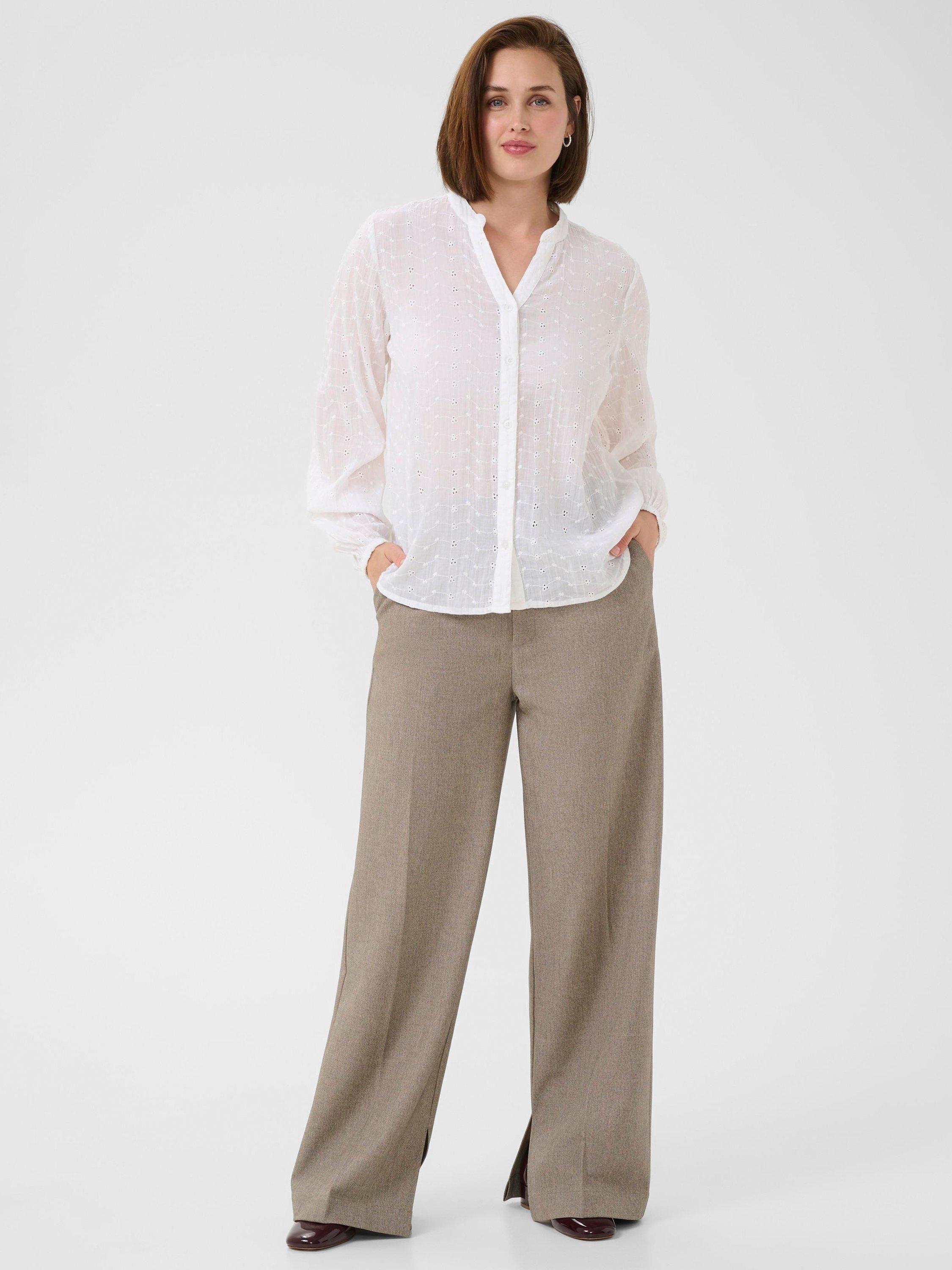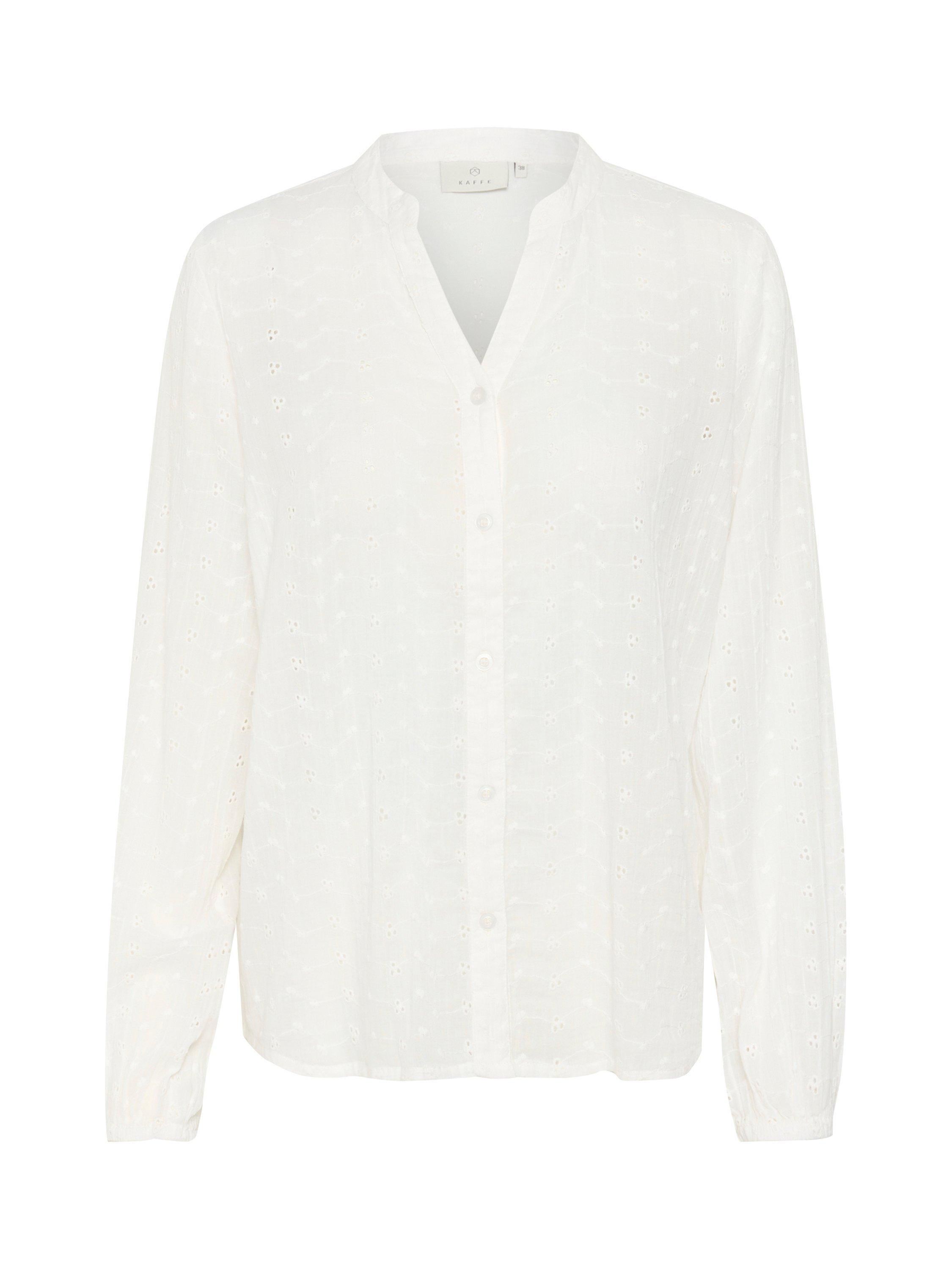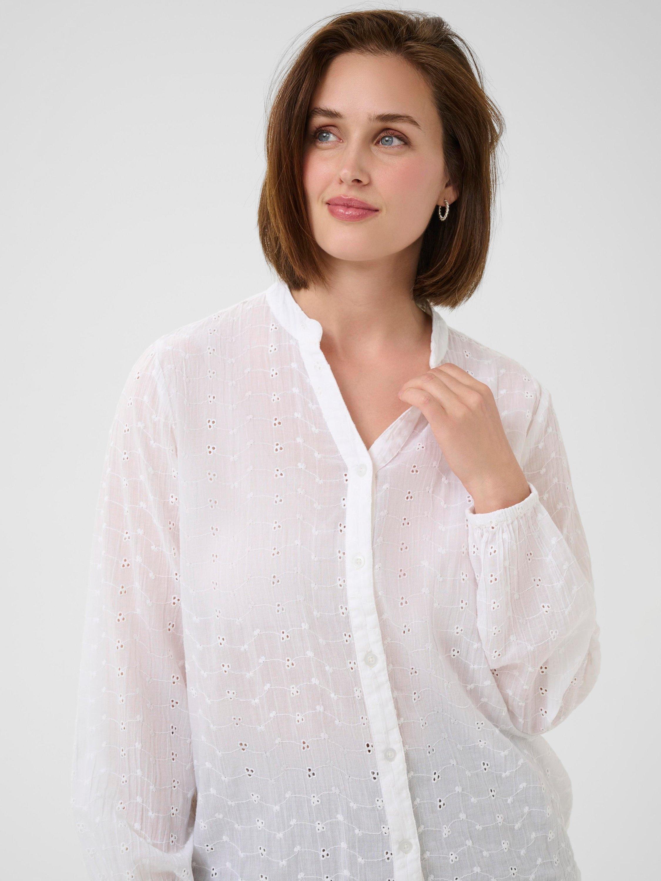 KAFFE’s blouse blends comfort and style in 100% cotton. Its V-neck and long sleeves offer a nod to classic tailoring, reimagined for everyday ease.