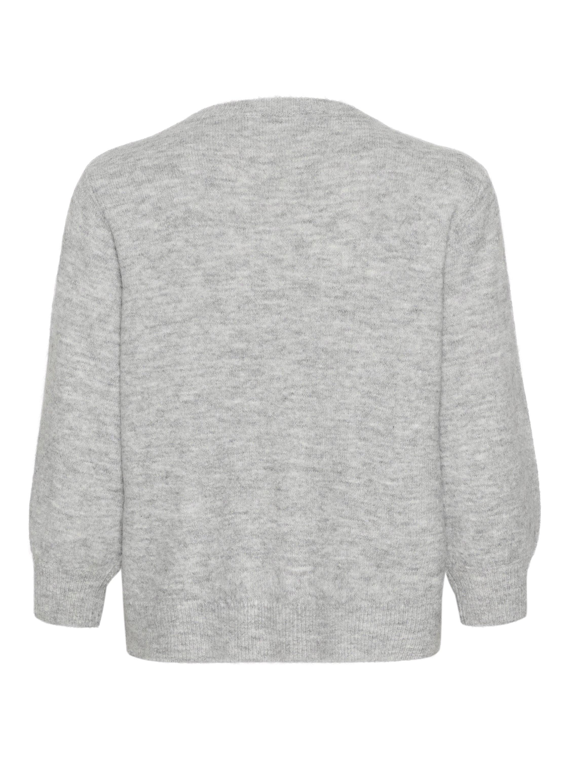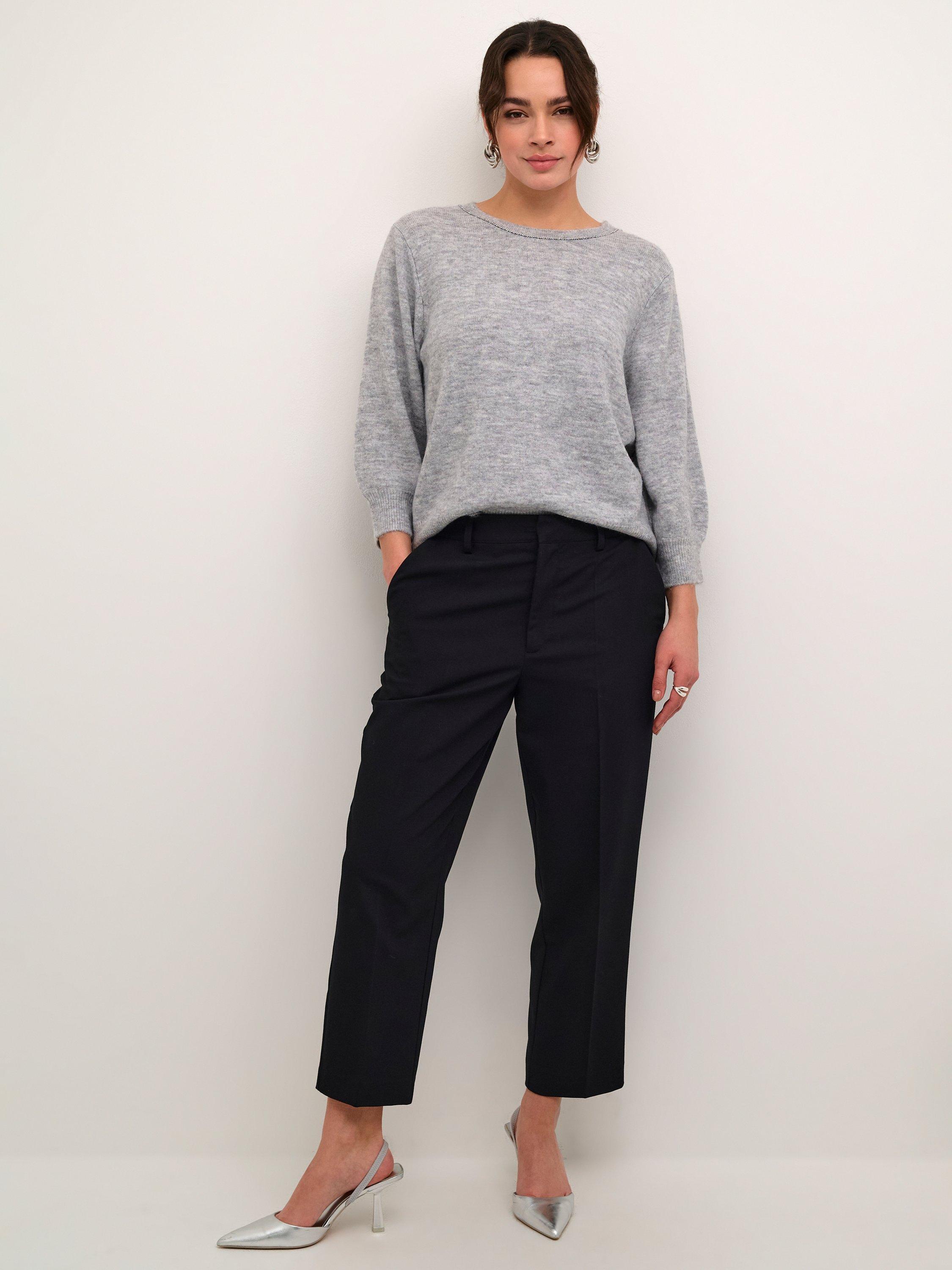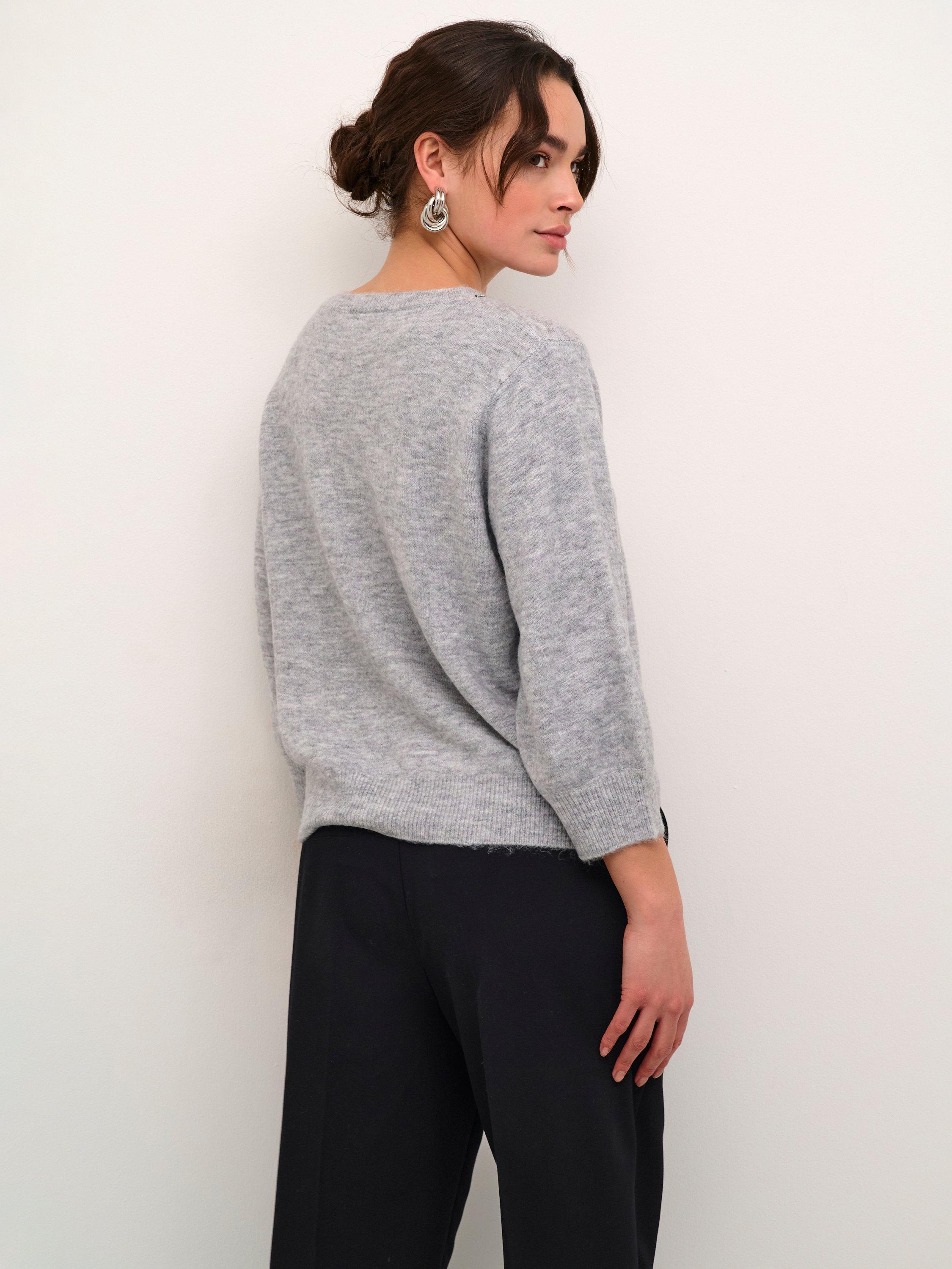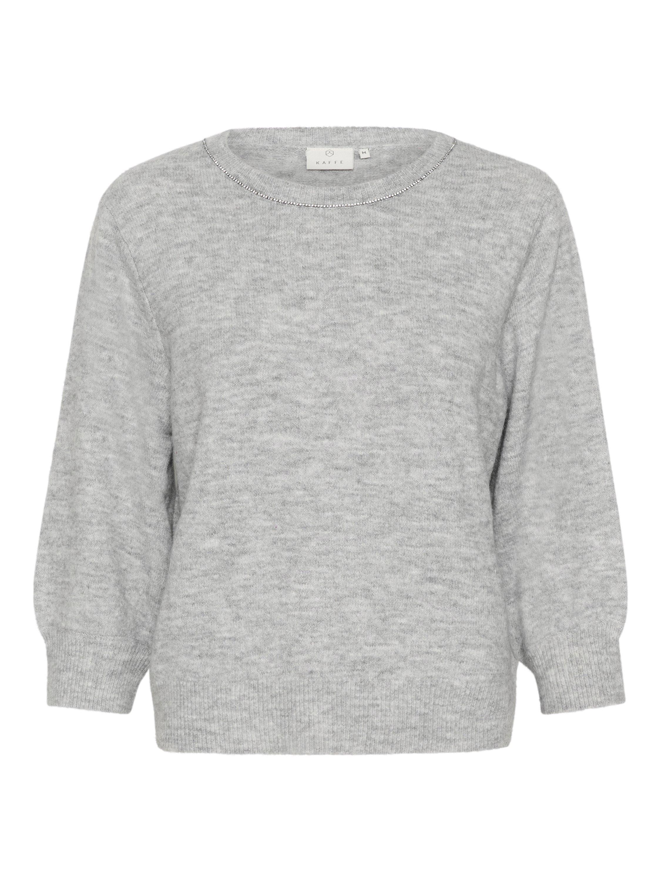 The meridith pullover is as elegant as it is cosy, and it will add a feminine touch to any outfit. It has a round neck with beading along the neckline, and it has a casual fit and is made in a soft knit fabric. The sleeves are 3/4 length with a tapered fit, and the pullover is cut at the top of the hips and has rib knit edges.