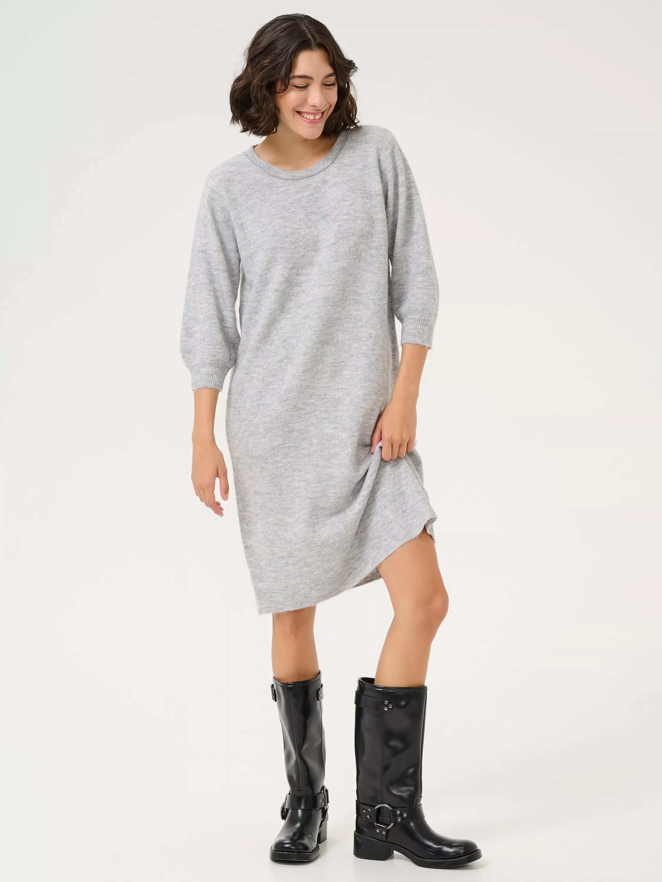 With a straight silhouette, this knee length jumper dress from KAFFE is comprised of a round neckline, subtly voluminous three quarter length sleeves and is kept minimal for a truly seasonal collection.