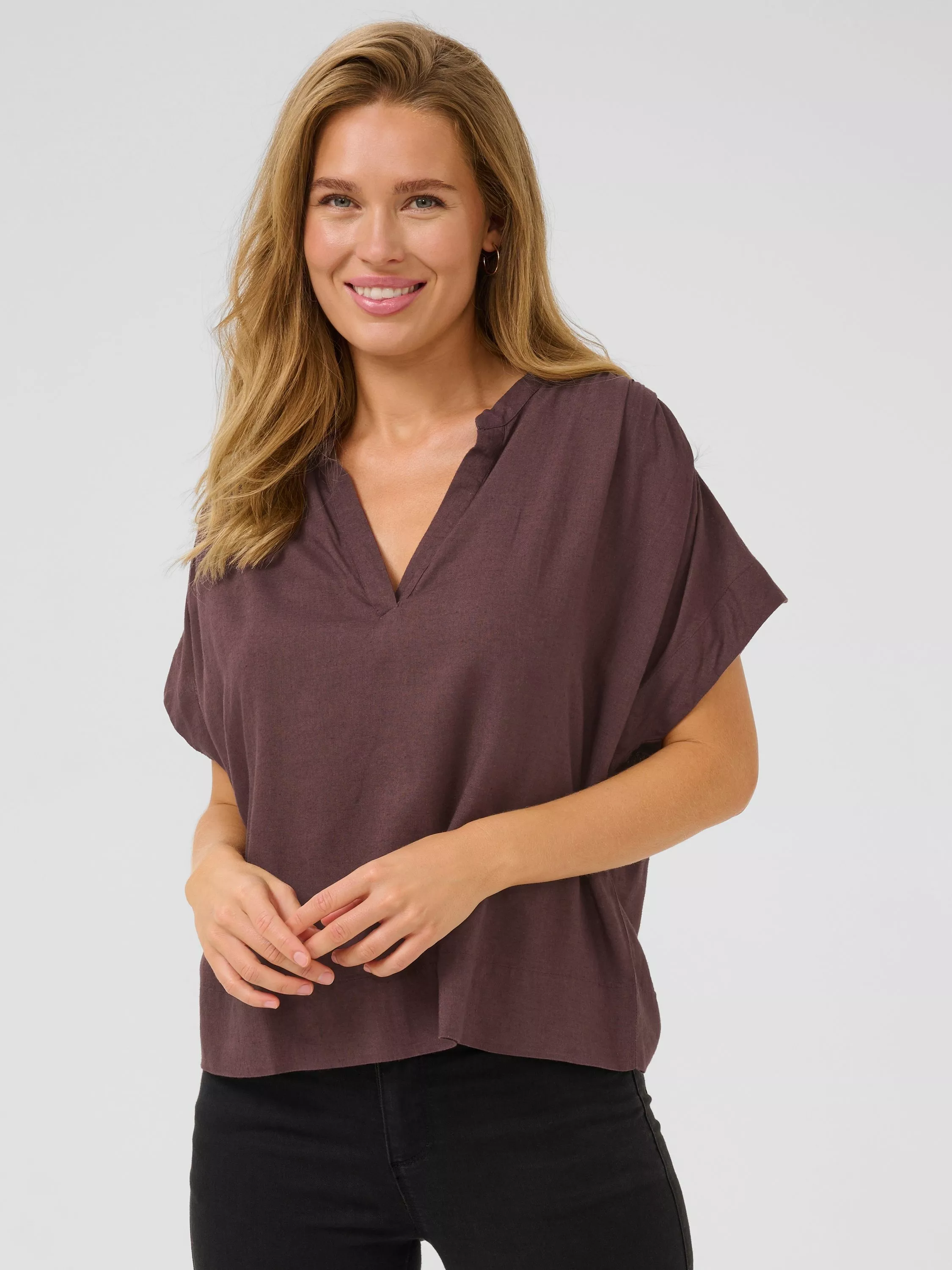 Bringing a neat addition to your wardrobe, this blouse from KAFFE allows for endless styling opportunities. Classic in cut with a v-neckline and short sleeves, it is made from a light yet durable blended fabric and is an everyday wardrobe essential.