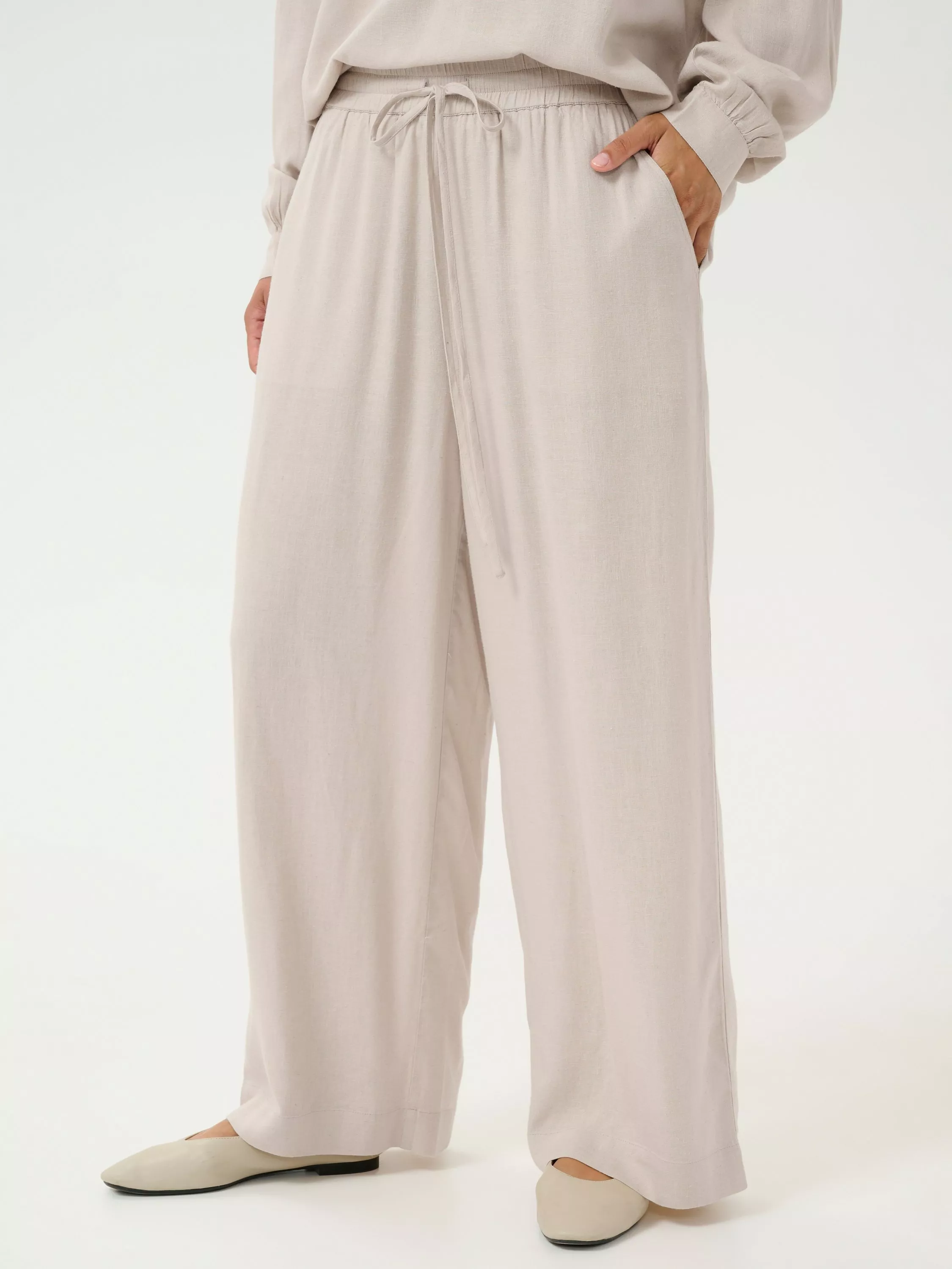Tailored to flatter your profile, this pair of trousers from KAFFE sit naturally on the hips and have a wide-legged fit.