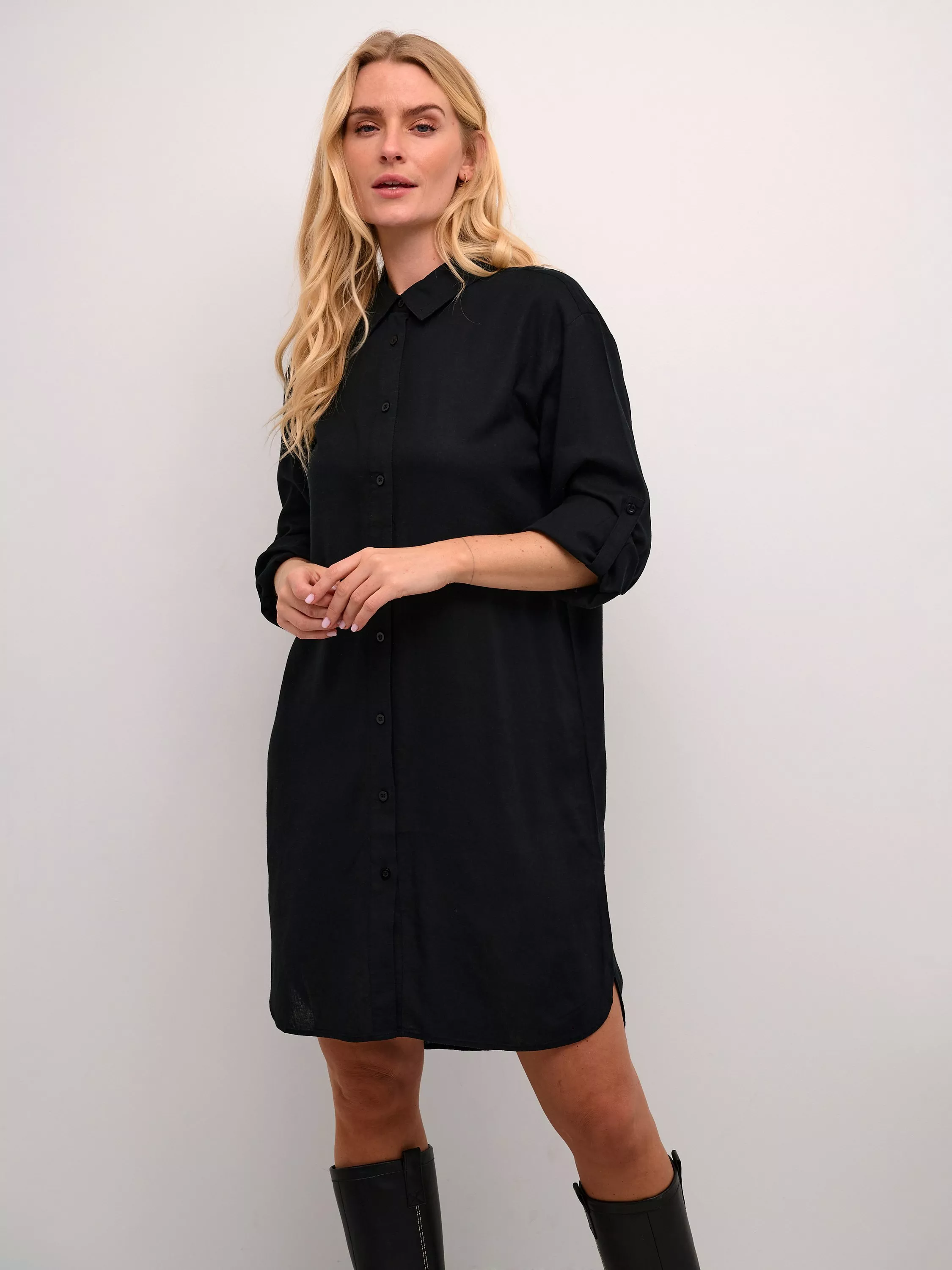 Sure the become one of the hardest working pieces in your wardrobe, this mini dress from KAFFE is blended with viscose for a weightless feel. Featuring a collar neckline and three quarter length sleeves, it is free of unnecessary embellishments.