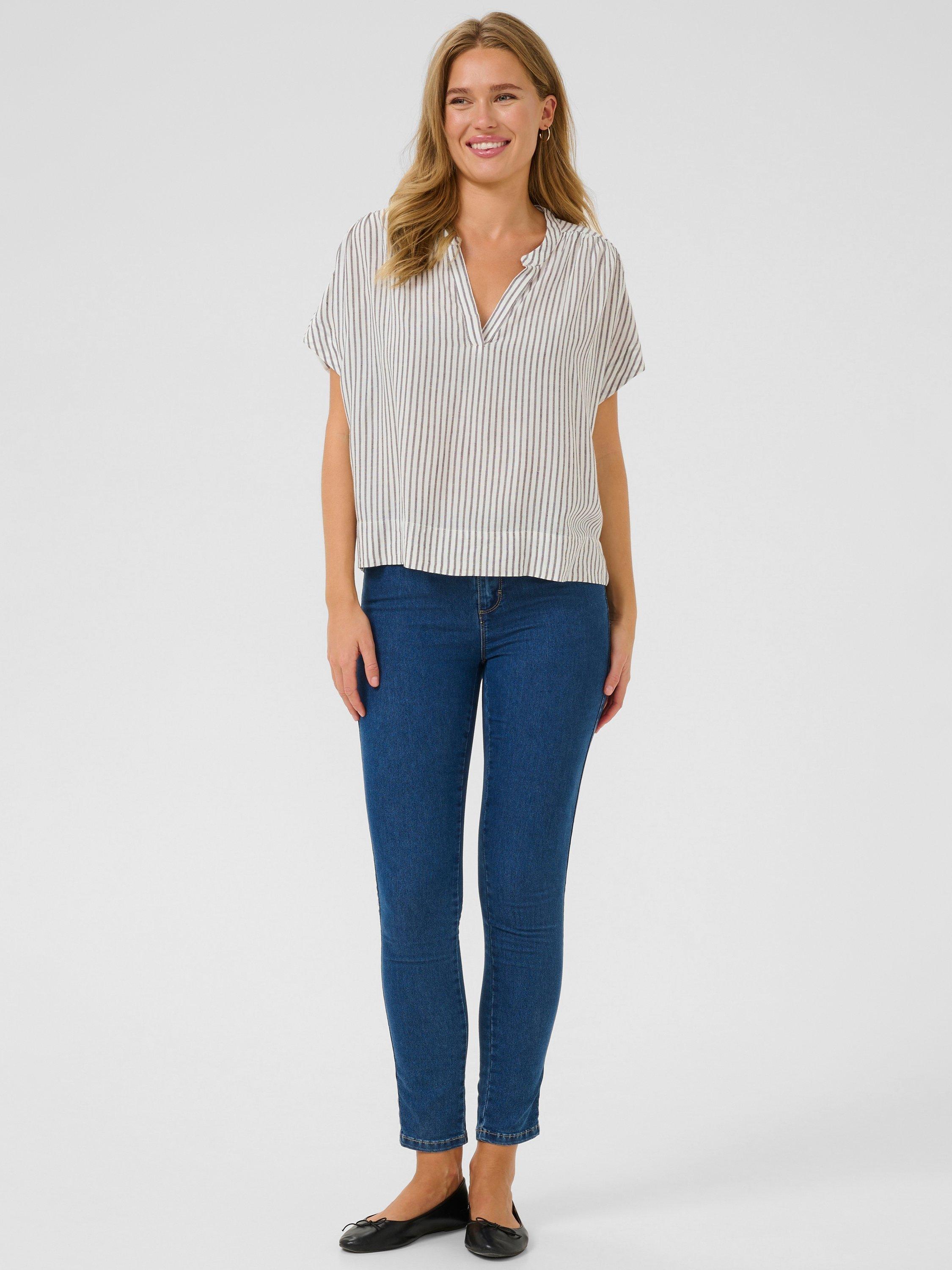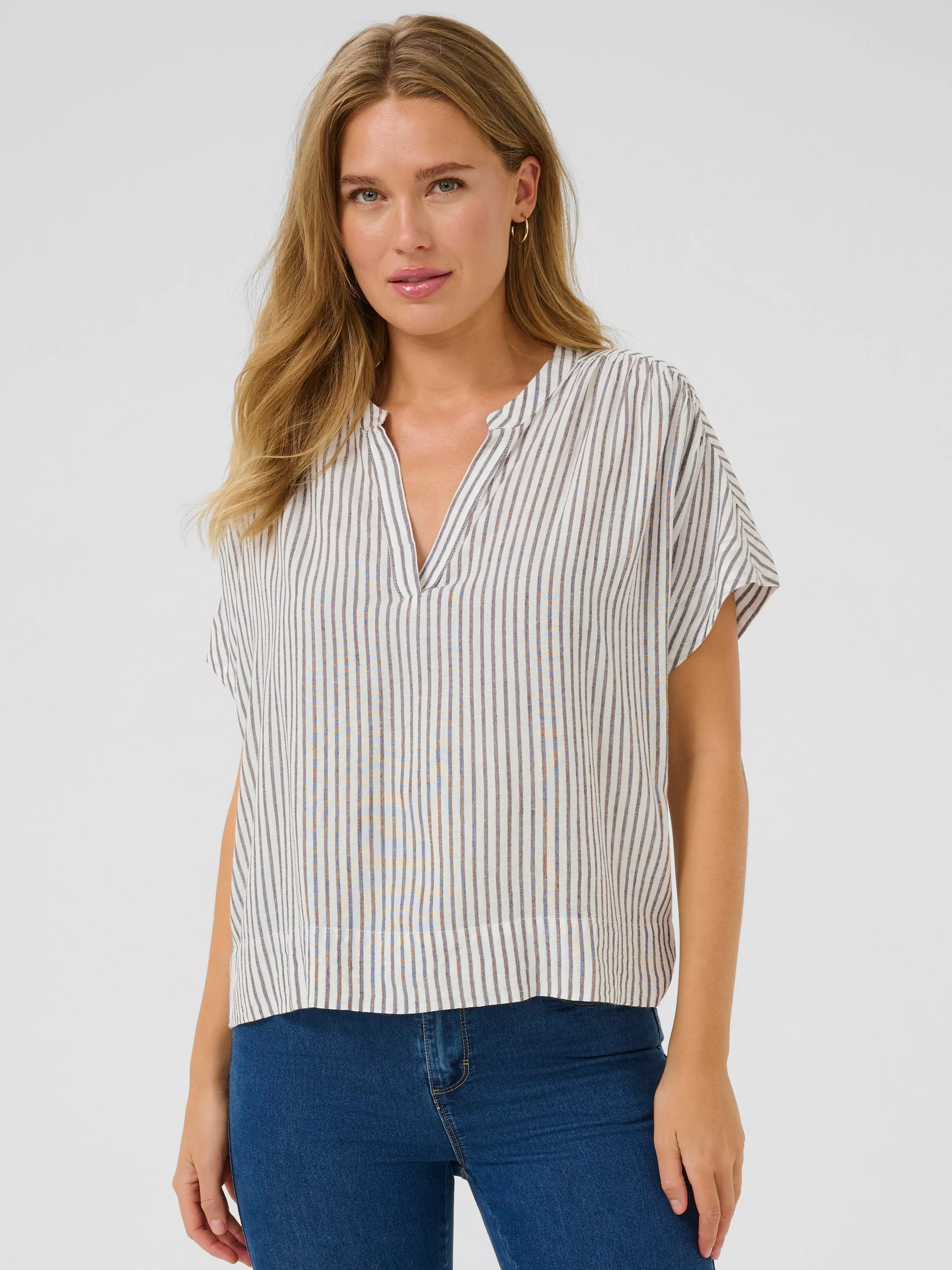 An effortless choice, this blouse from KAFFE boasts classic stripes for a nautical touch. Cut with a classic v-neck and short sleeves, it is made with light yet robust blended fabric for longevity of wear and is an easy daytime option.