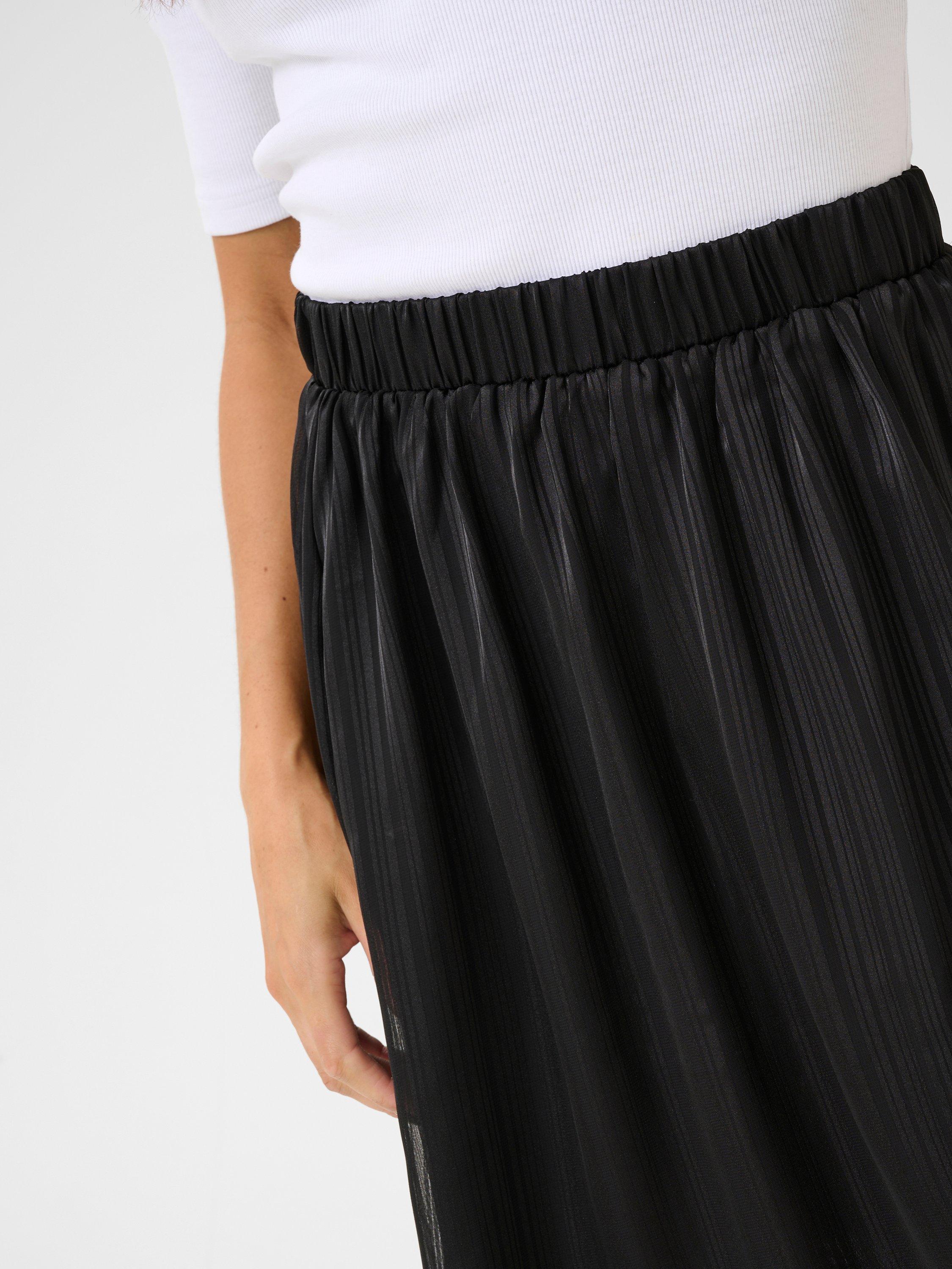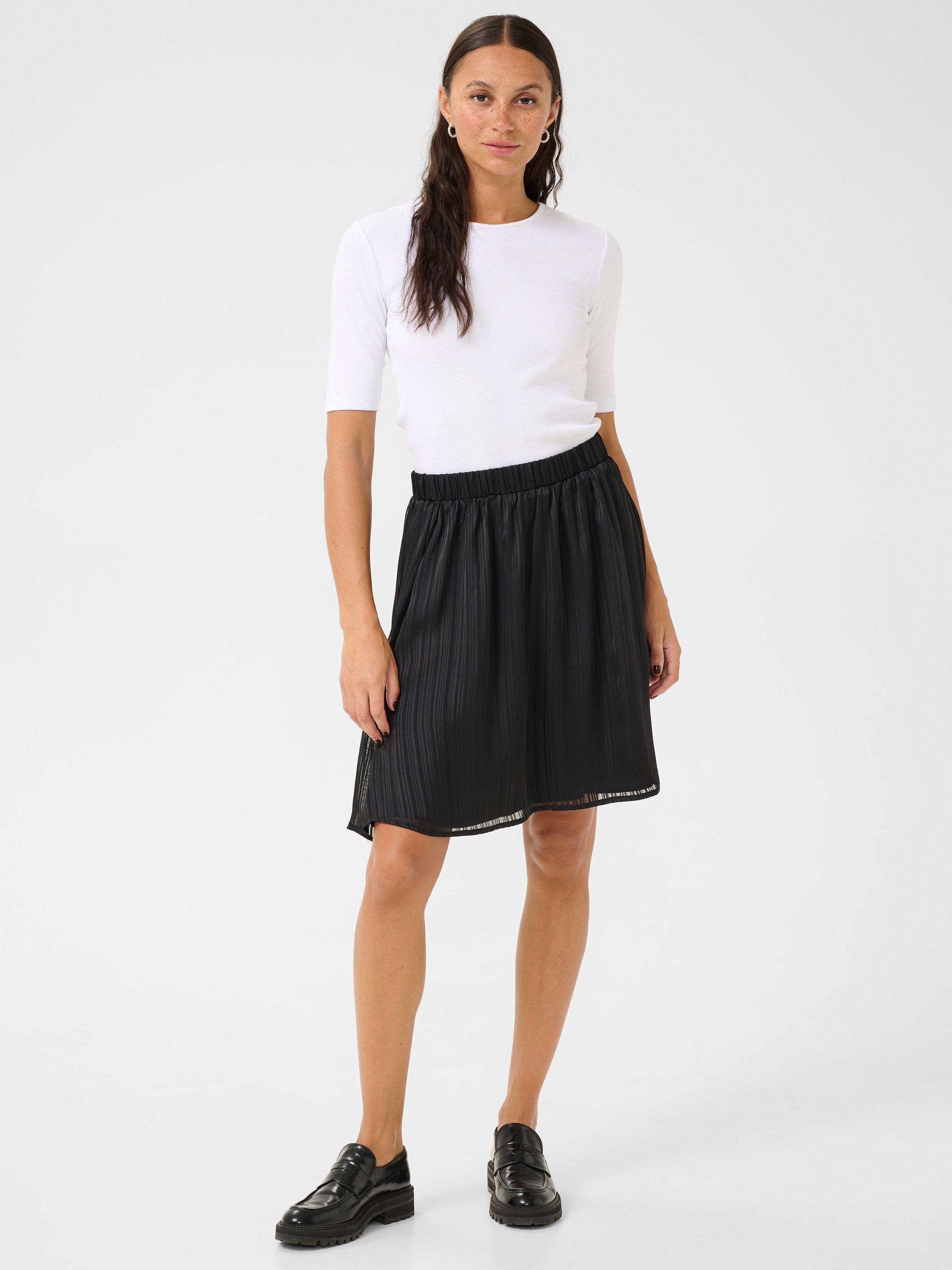 The mille skirt is the perfect way to add a feminine touch to any outfit. It is high-waisted with an elastic waistband, and it has a flowy A-line fit. The skirt is made in a light chiffon fabric with a matching lining, and it is cut above the knees.