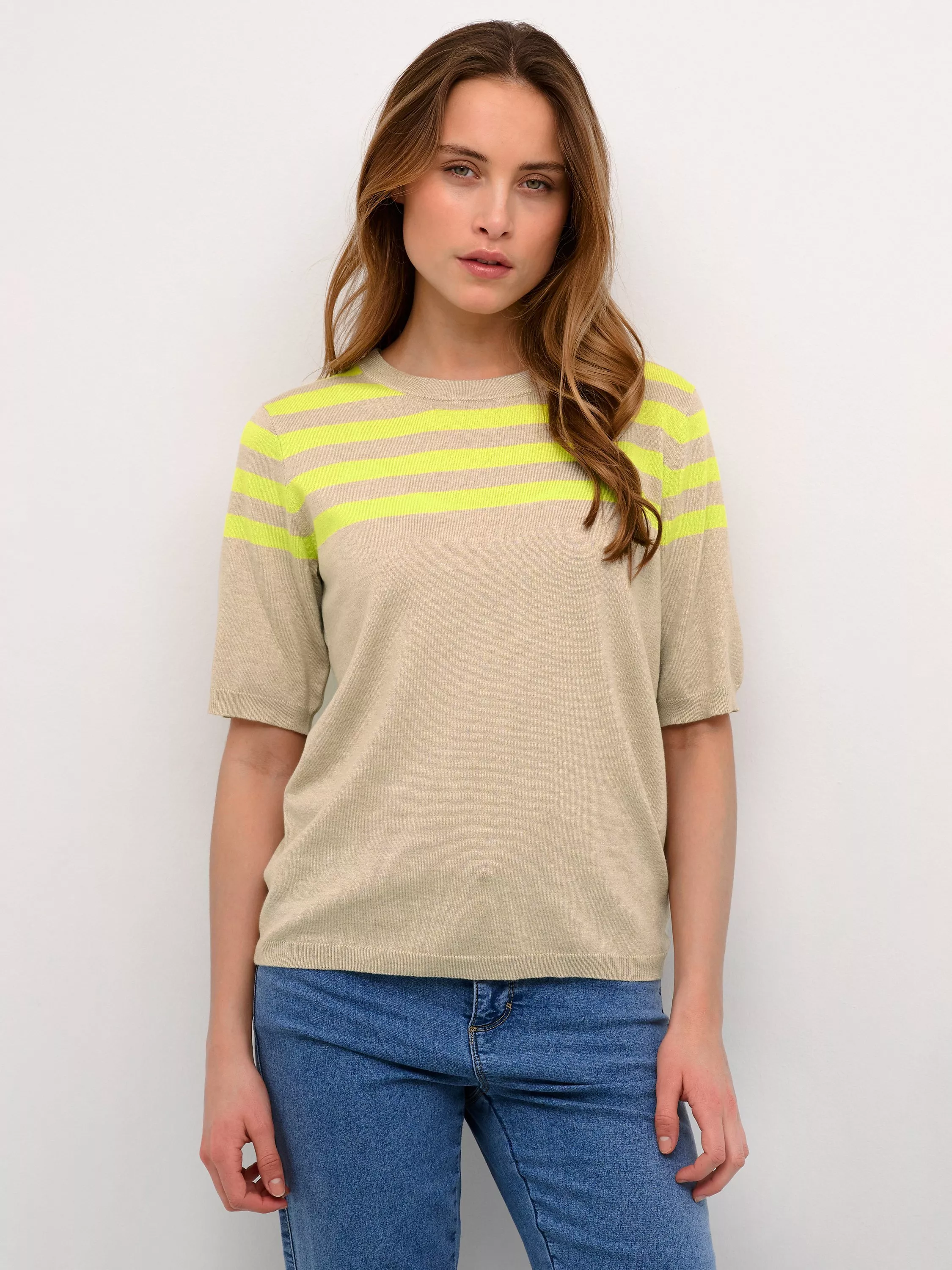 Round at the neck for fuss-free layering, this lightweight jumper by KAFFE livens up stripes from their default status and is made from a lightweight blended fabric for comfortable wear.