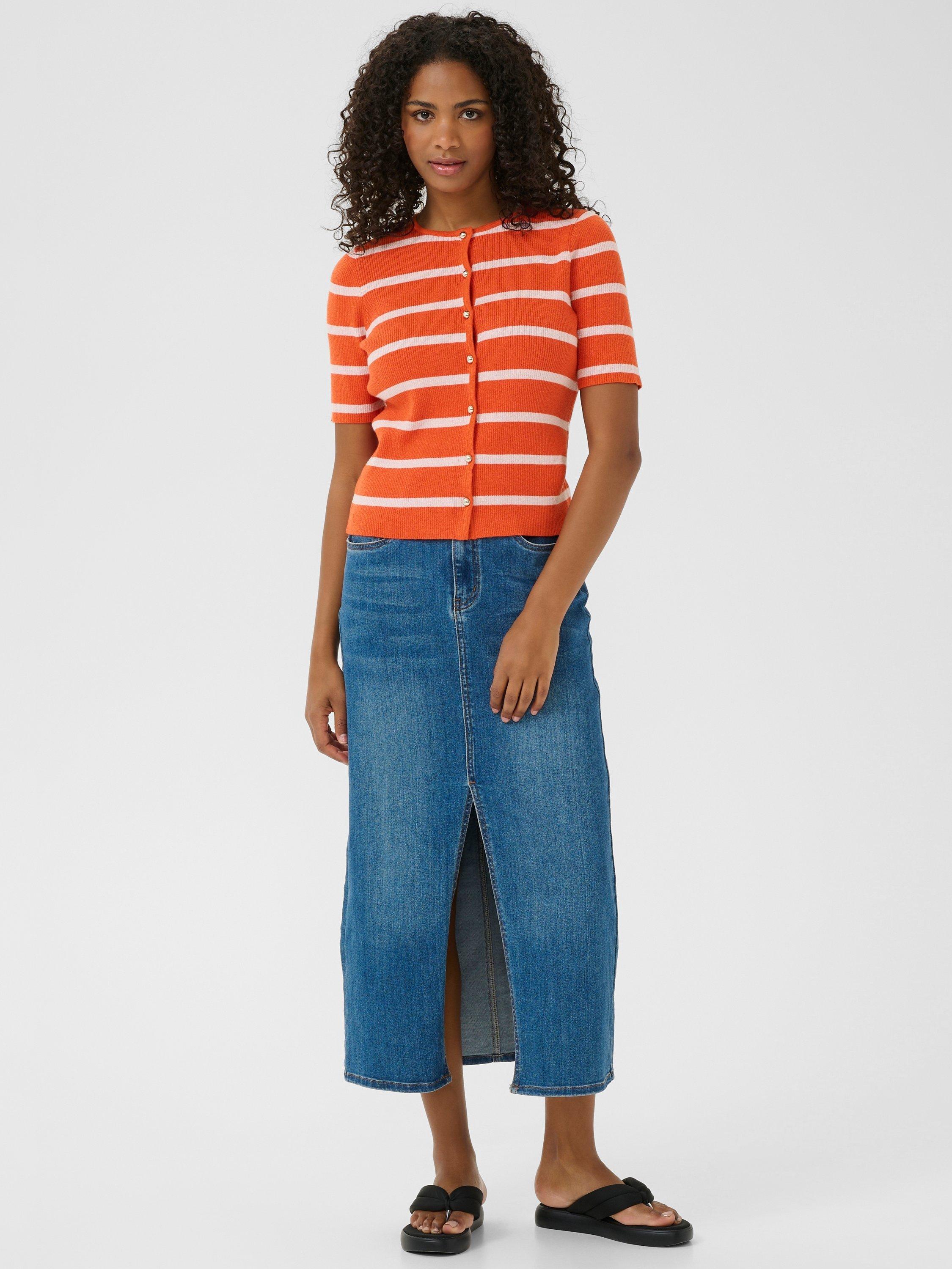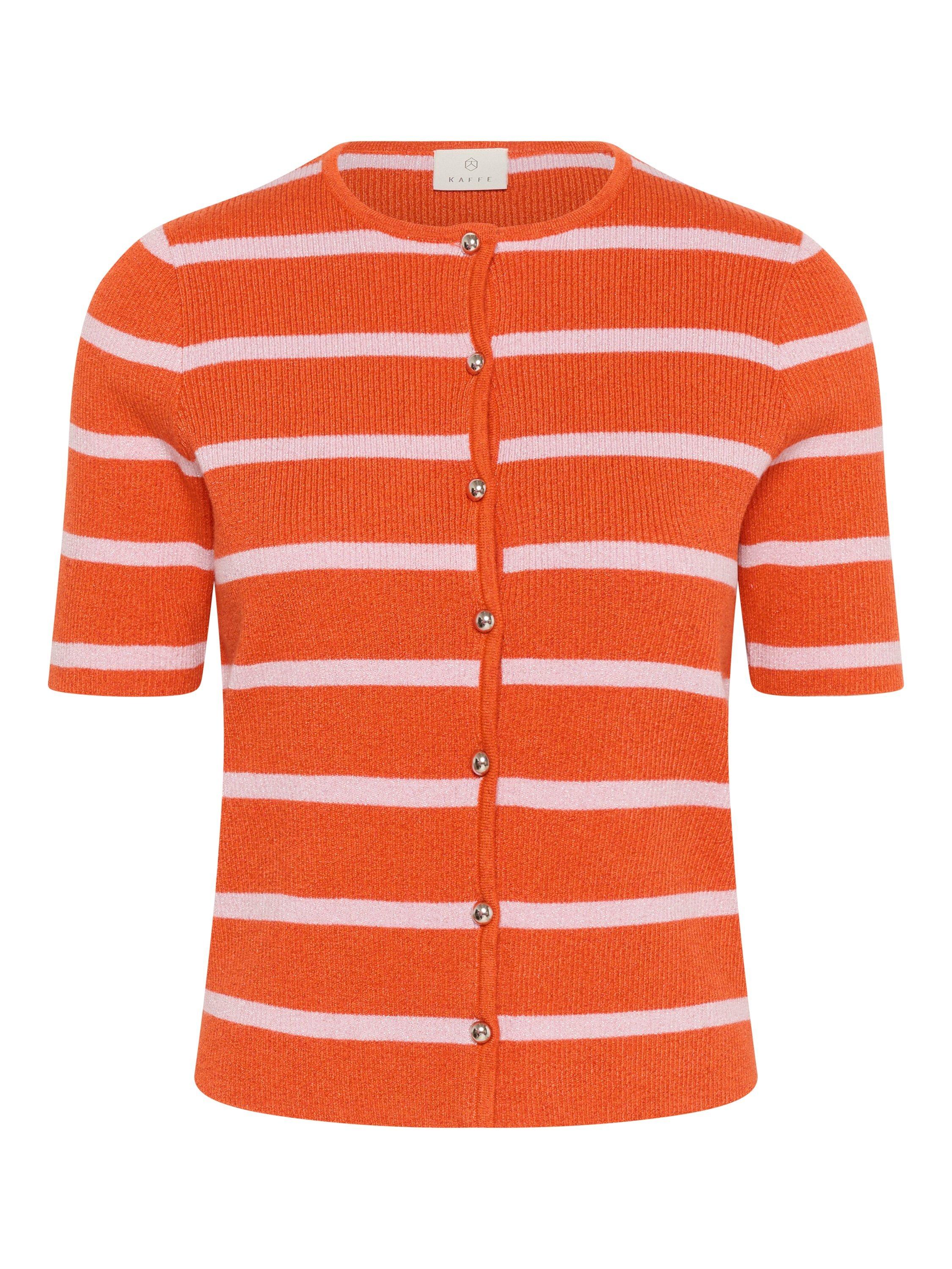 A handy layering piece for when the temperature cools, this cardigan by KAFFE boasts a timeless stripe throughout and subtle shimmer. Made with smooth, blended fabric for light and comfortable wear.