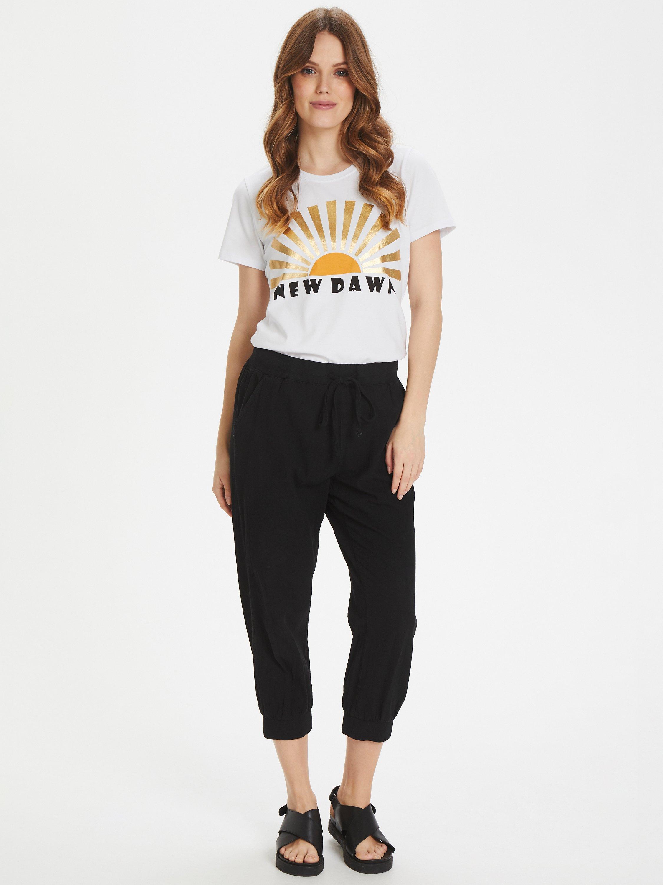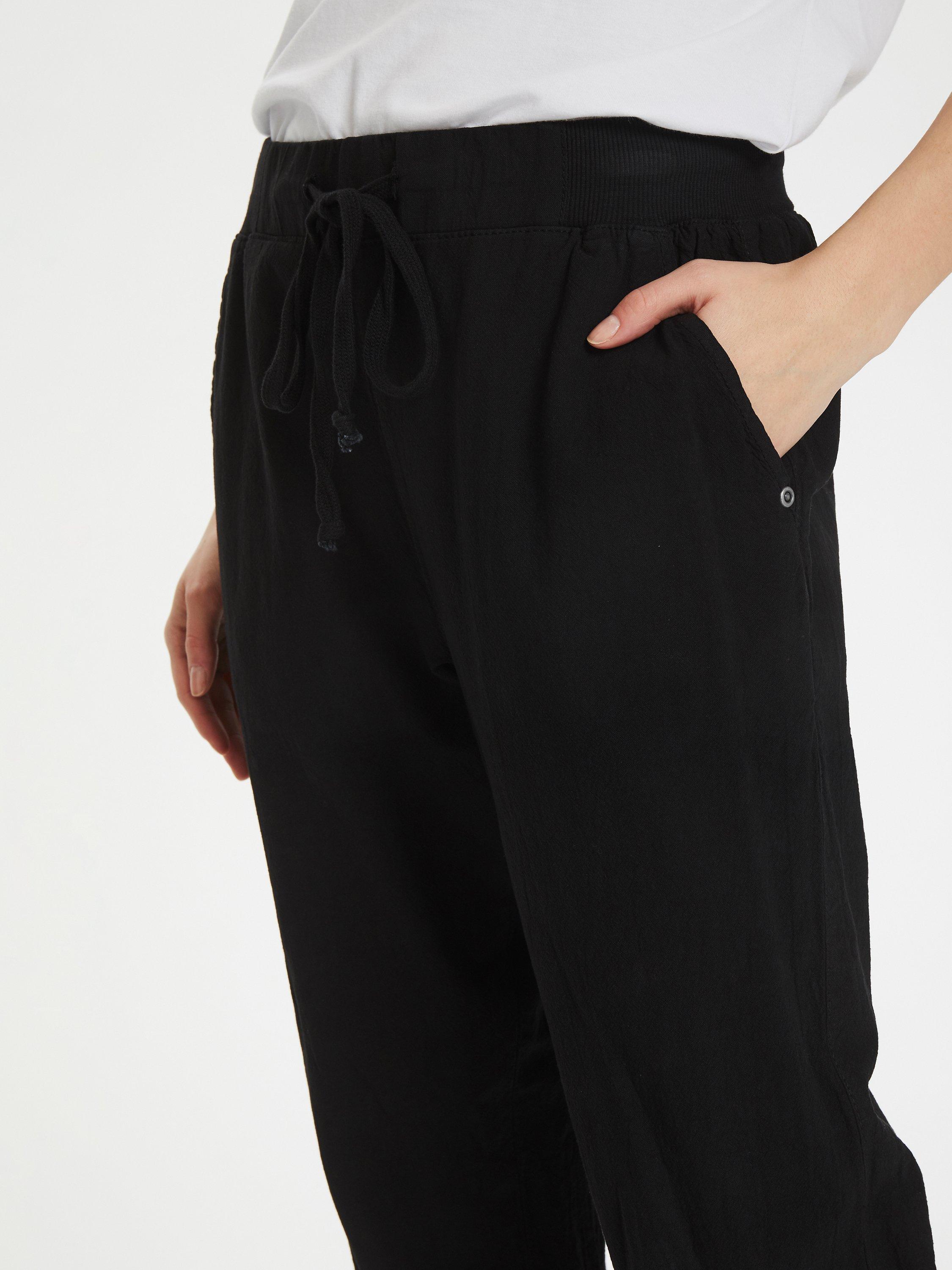 These calf-length joggers are the most comfortable, sporty option for this summer. They have an elasticated band with tie and elasticated trouser legs. They are perfect for everyday activities.