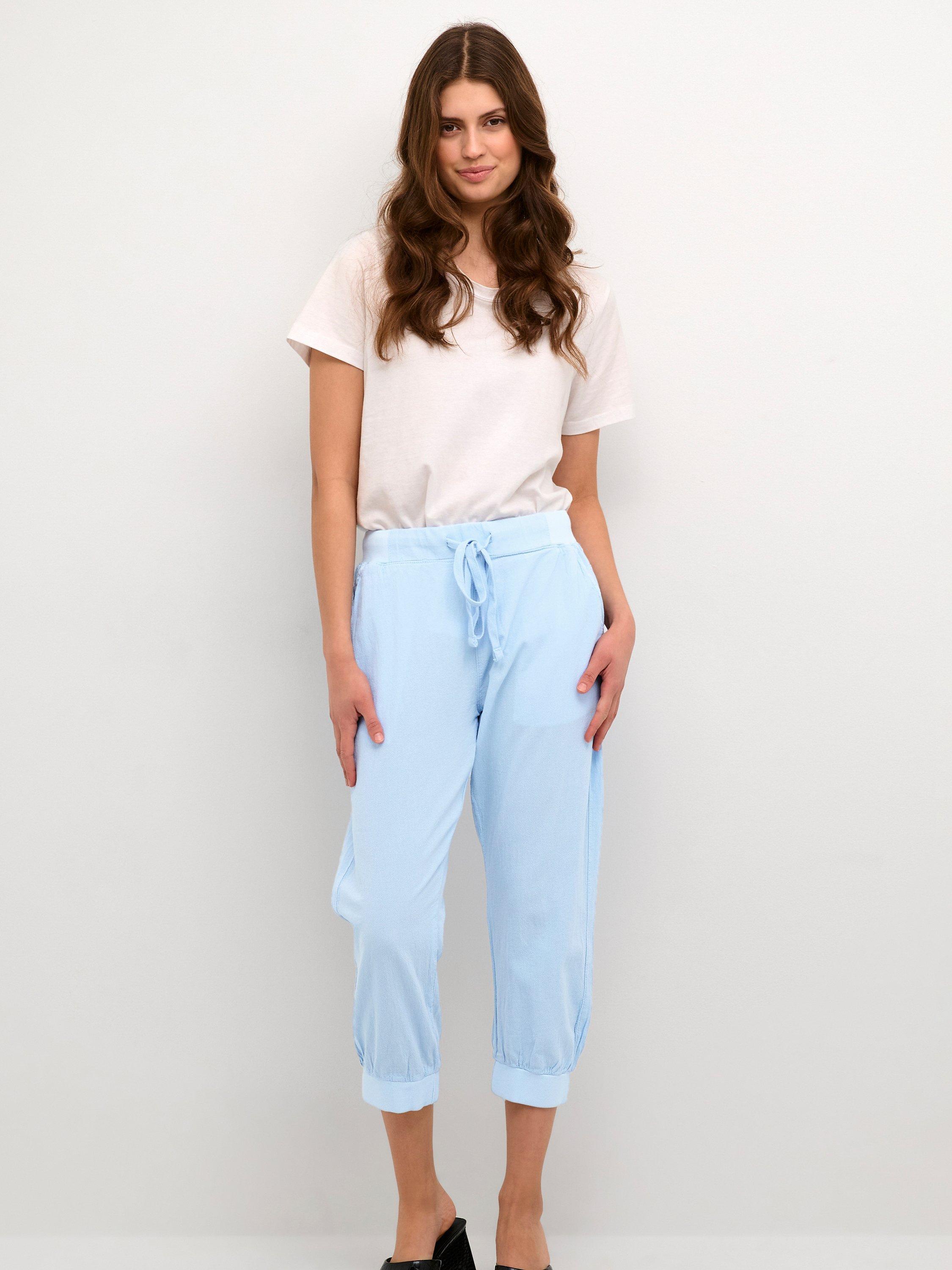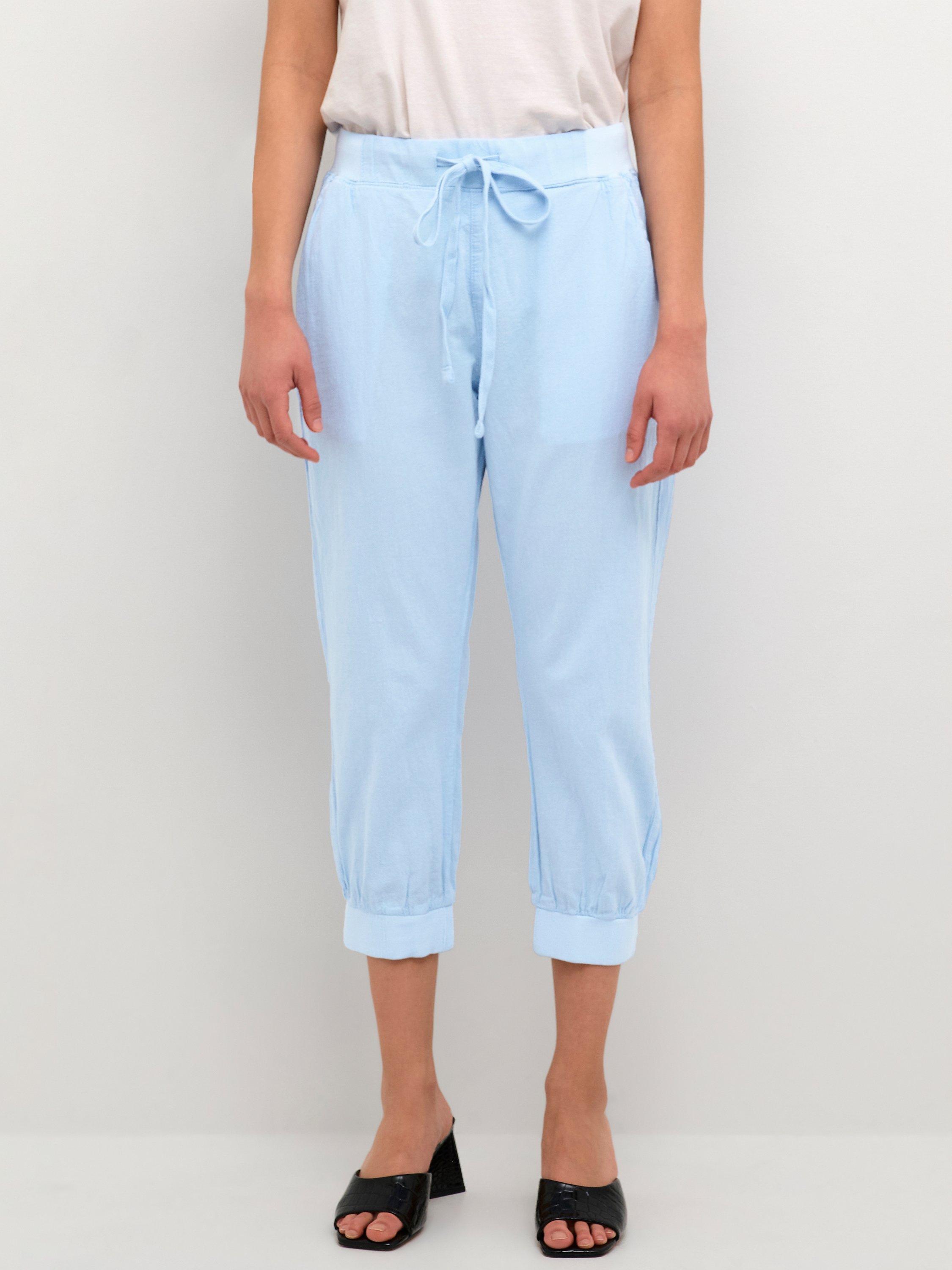 These calf-length joggers are the most comfortable, sporty option for this summer. They have an elasticated band with tie and elasticated trouser legs. They are perfect for everyday activities.
