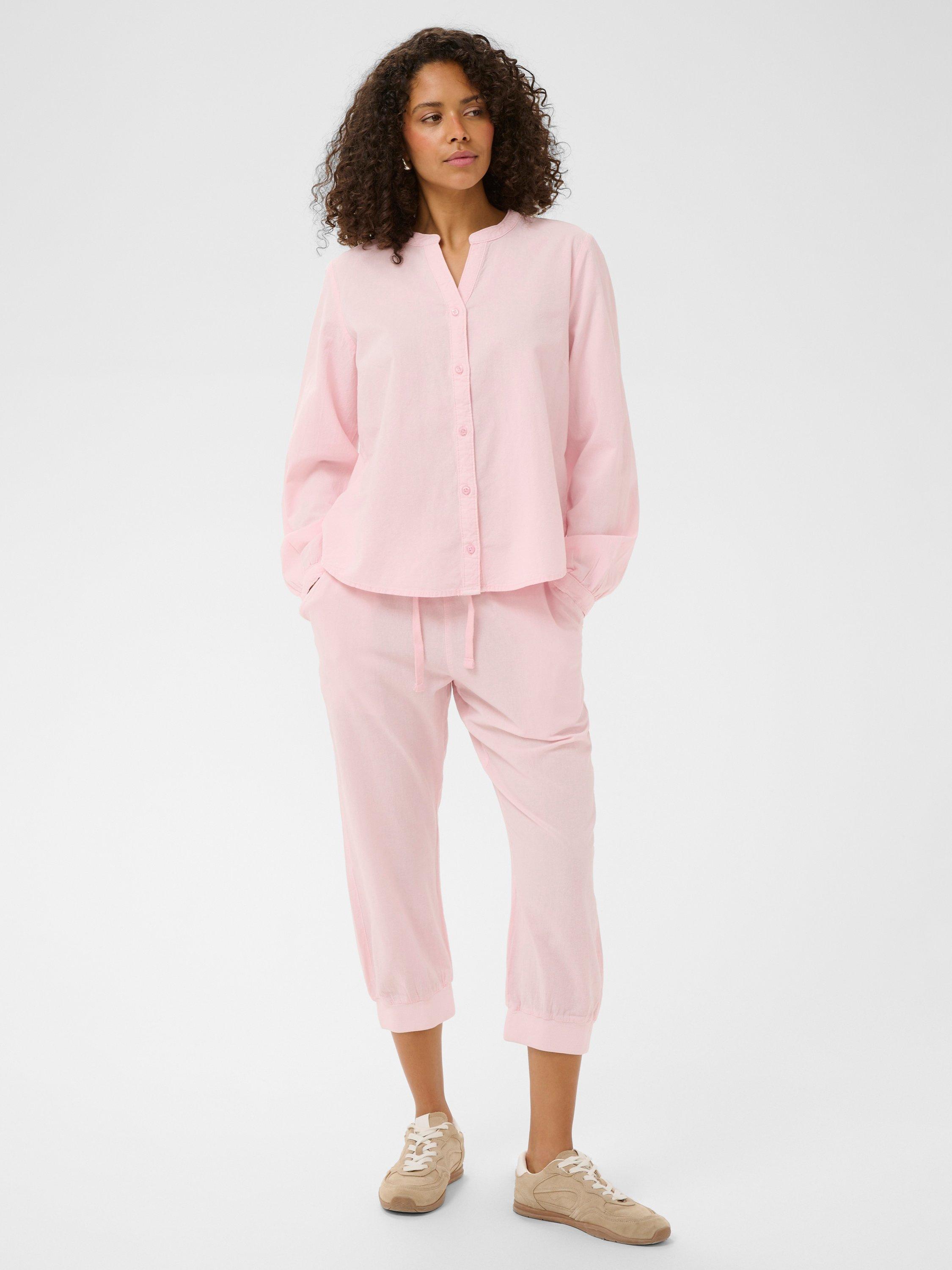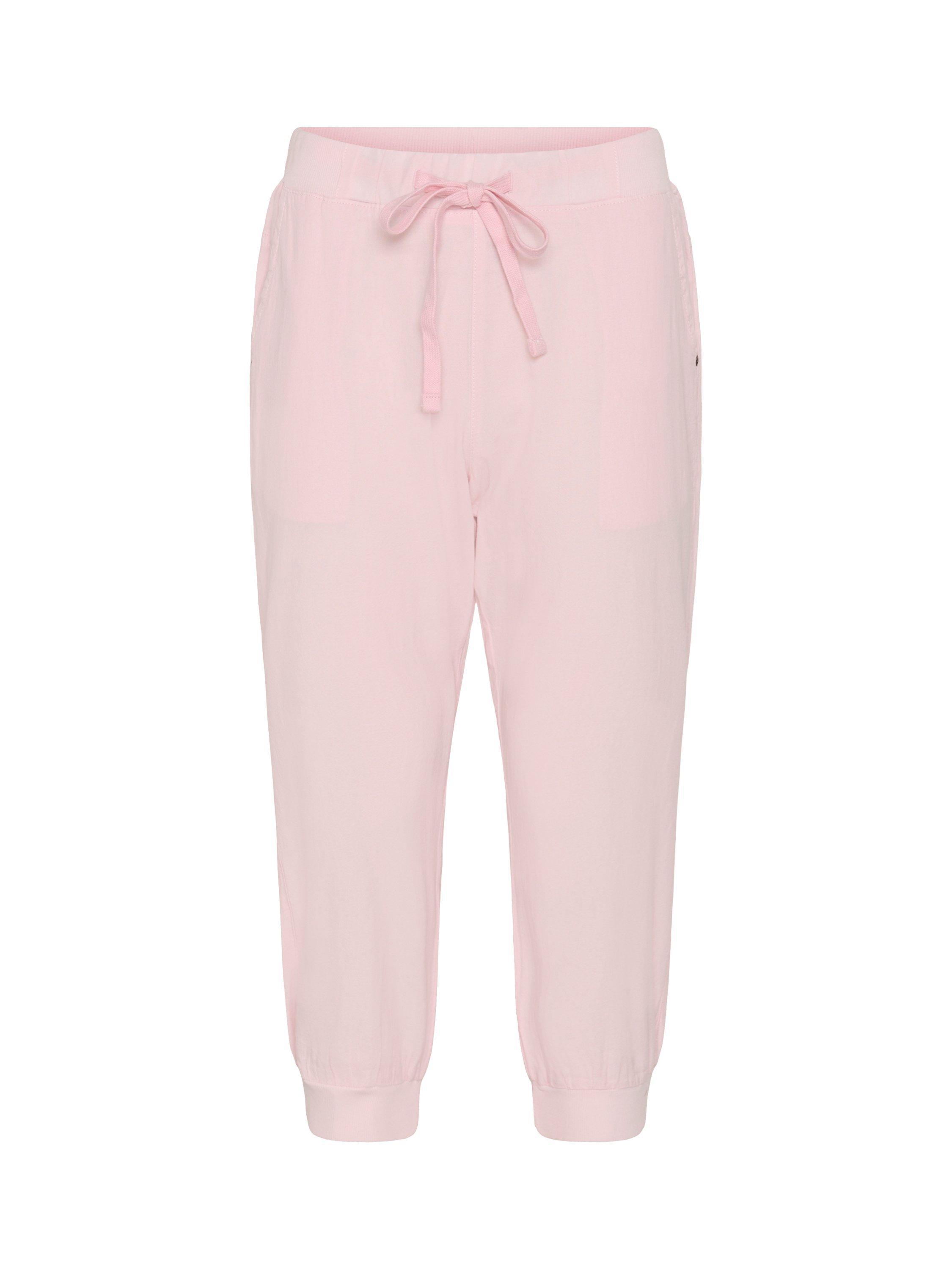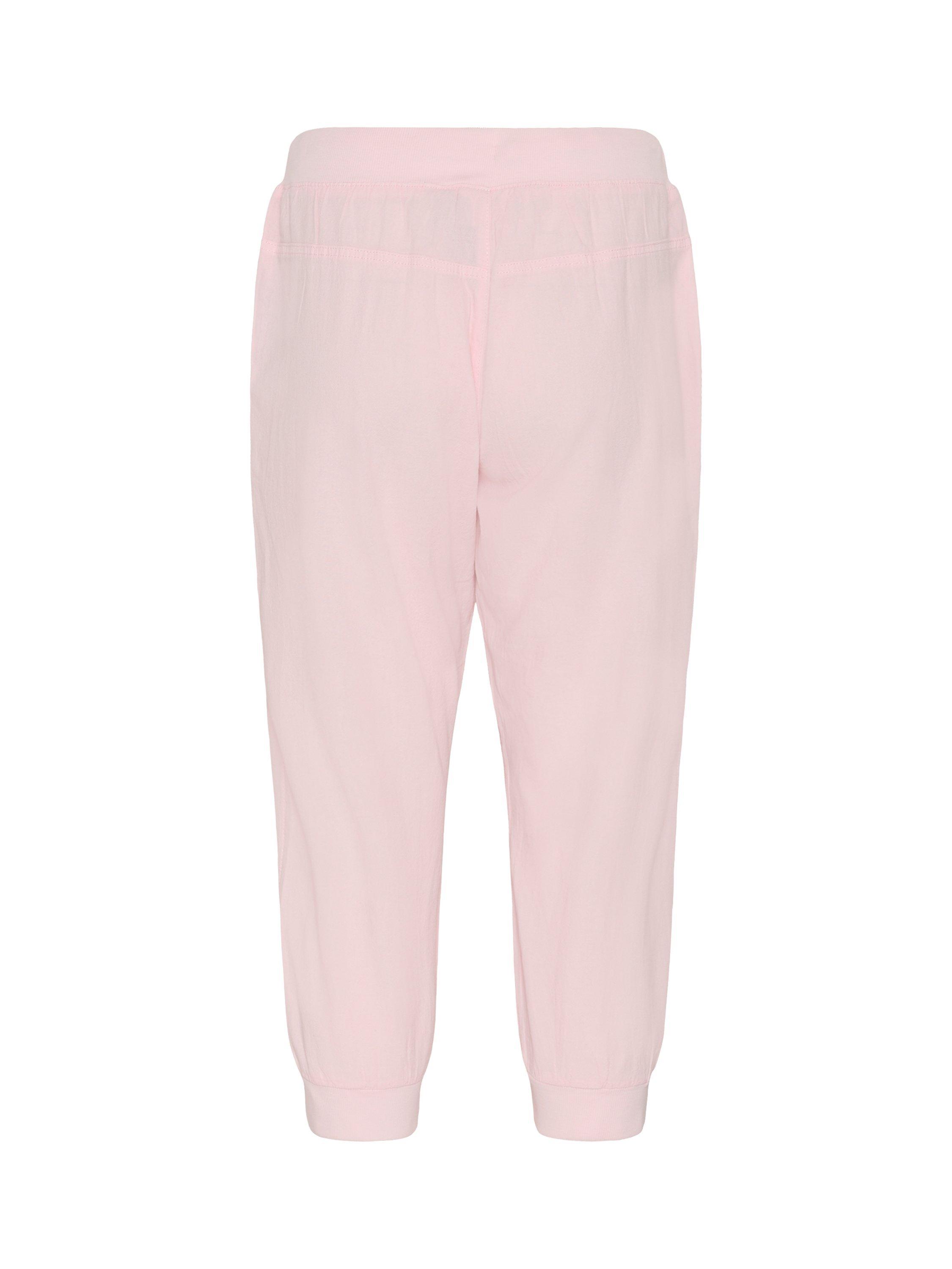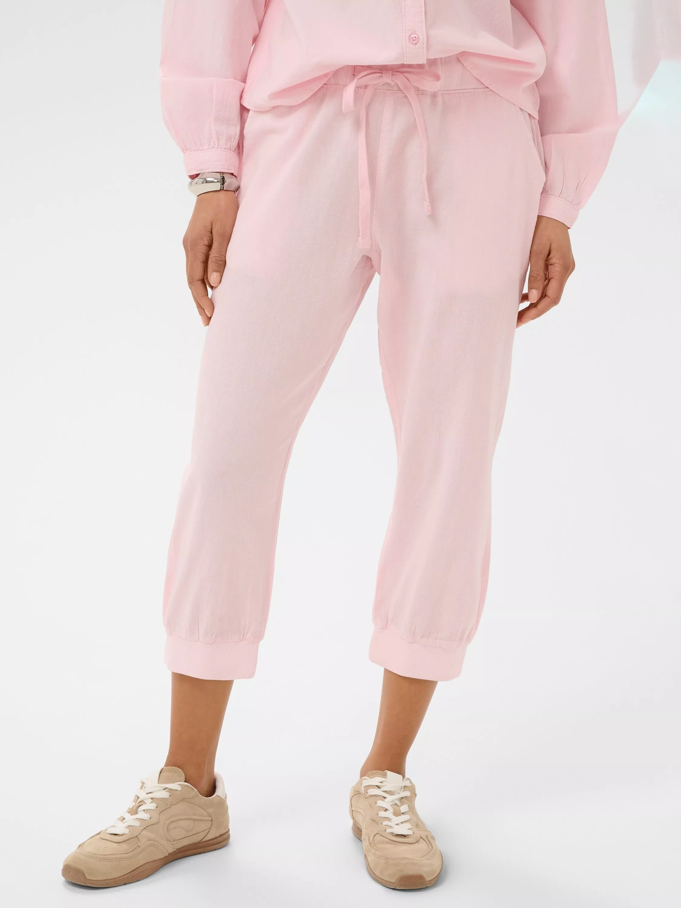 Airy cropped joggers offering a relaxed silhouette with drawstring comfort and cuffed ankles, designed for laidback days and easy travel.