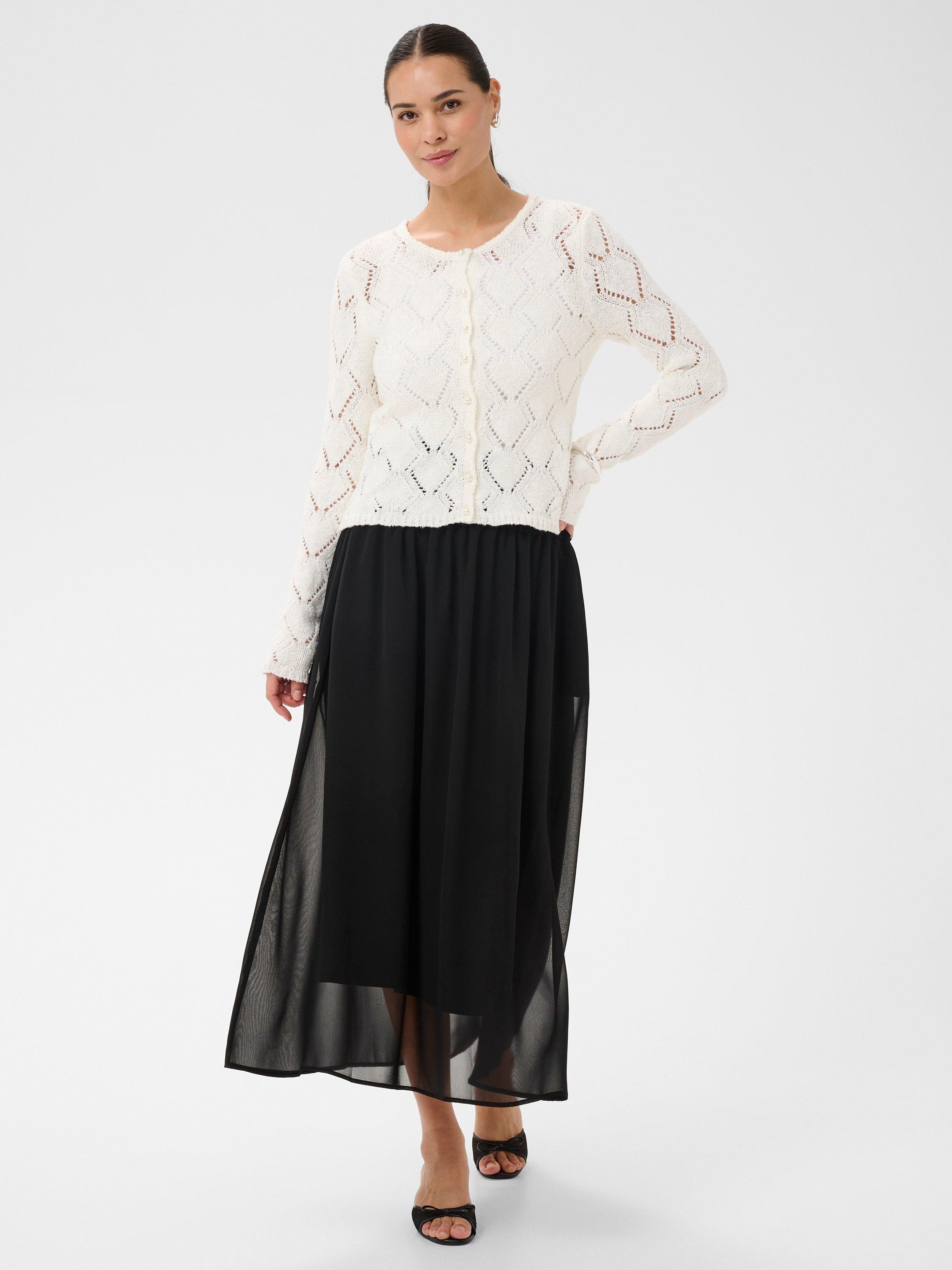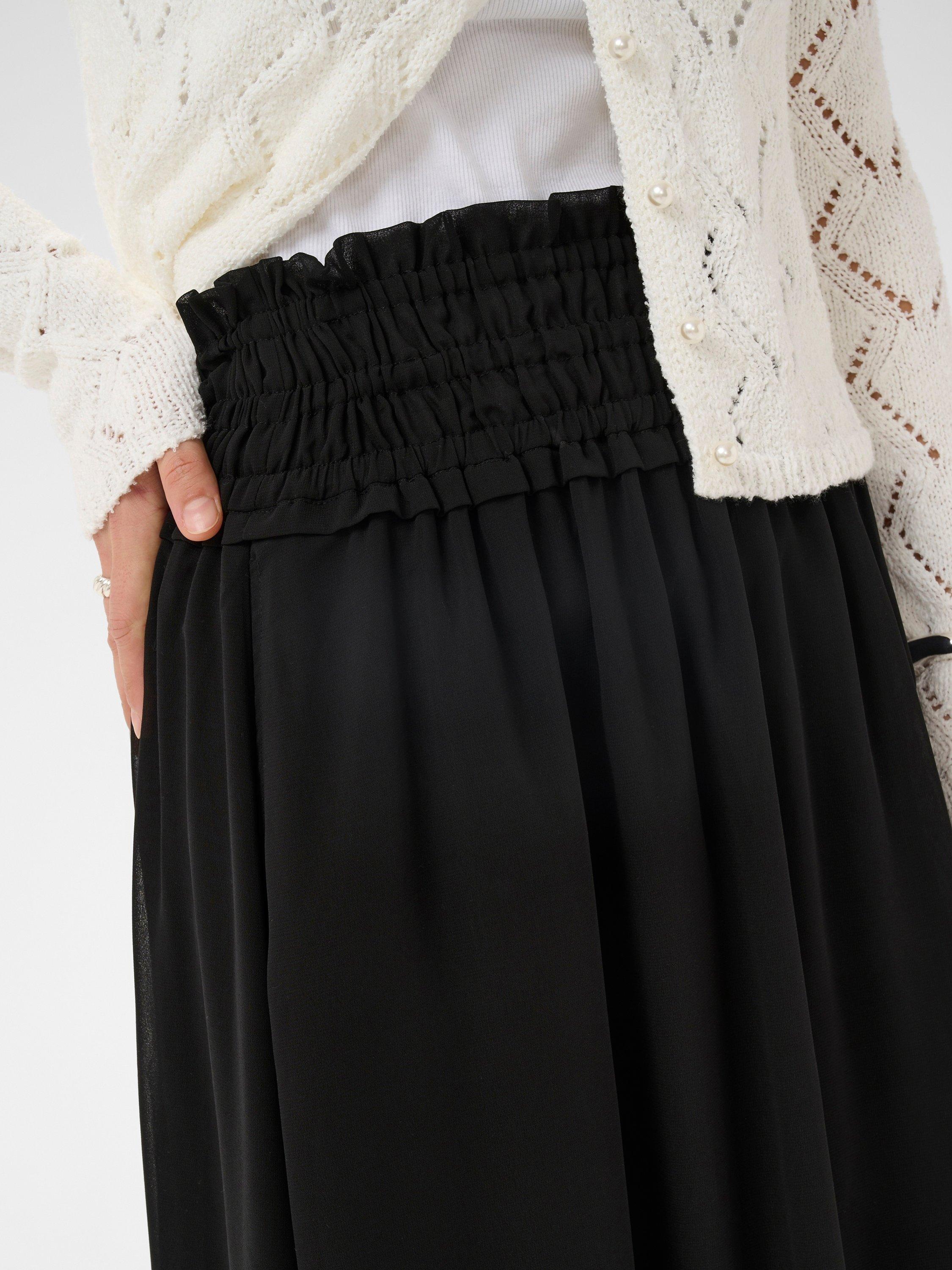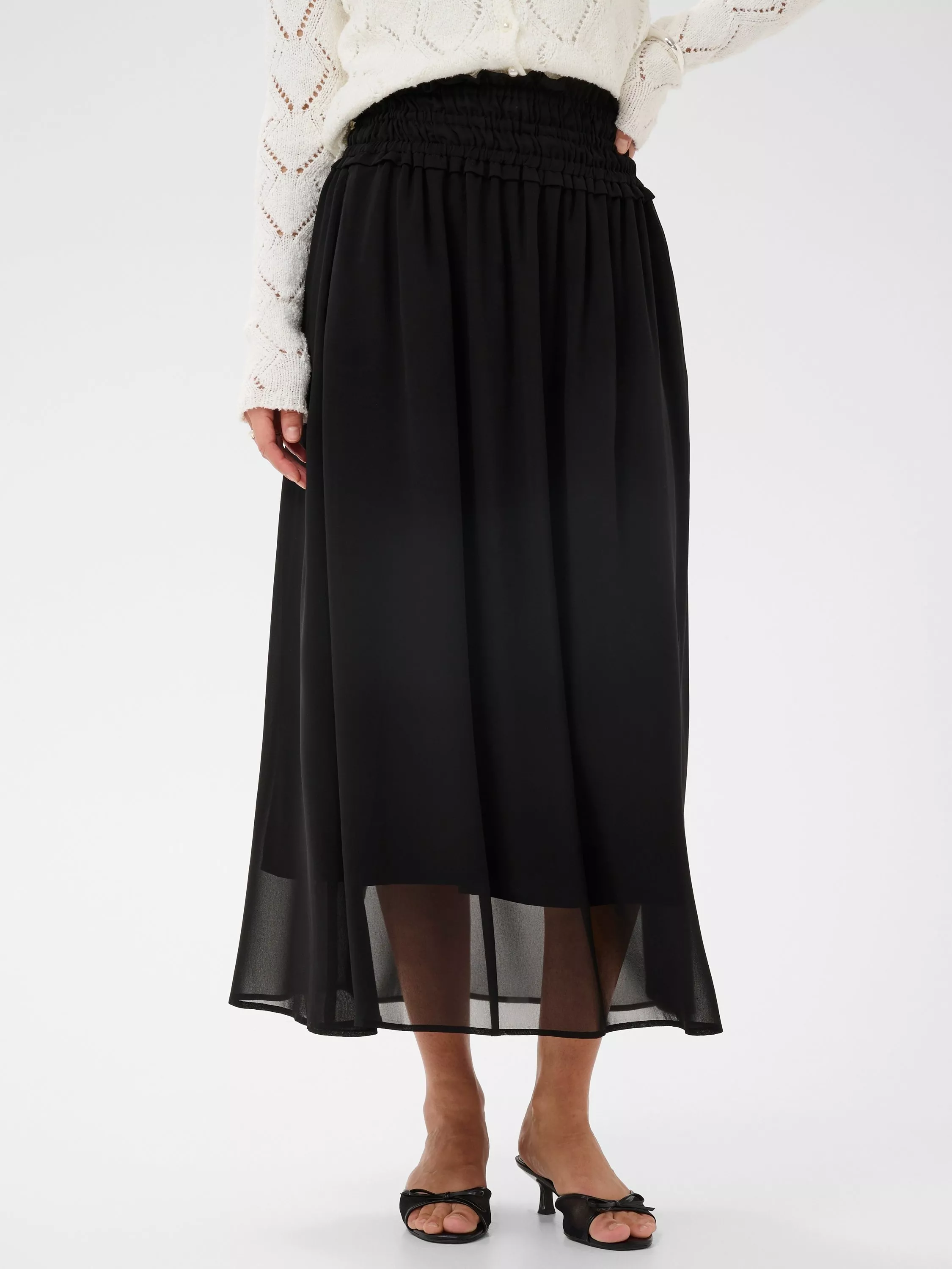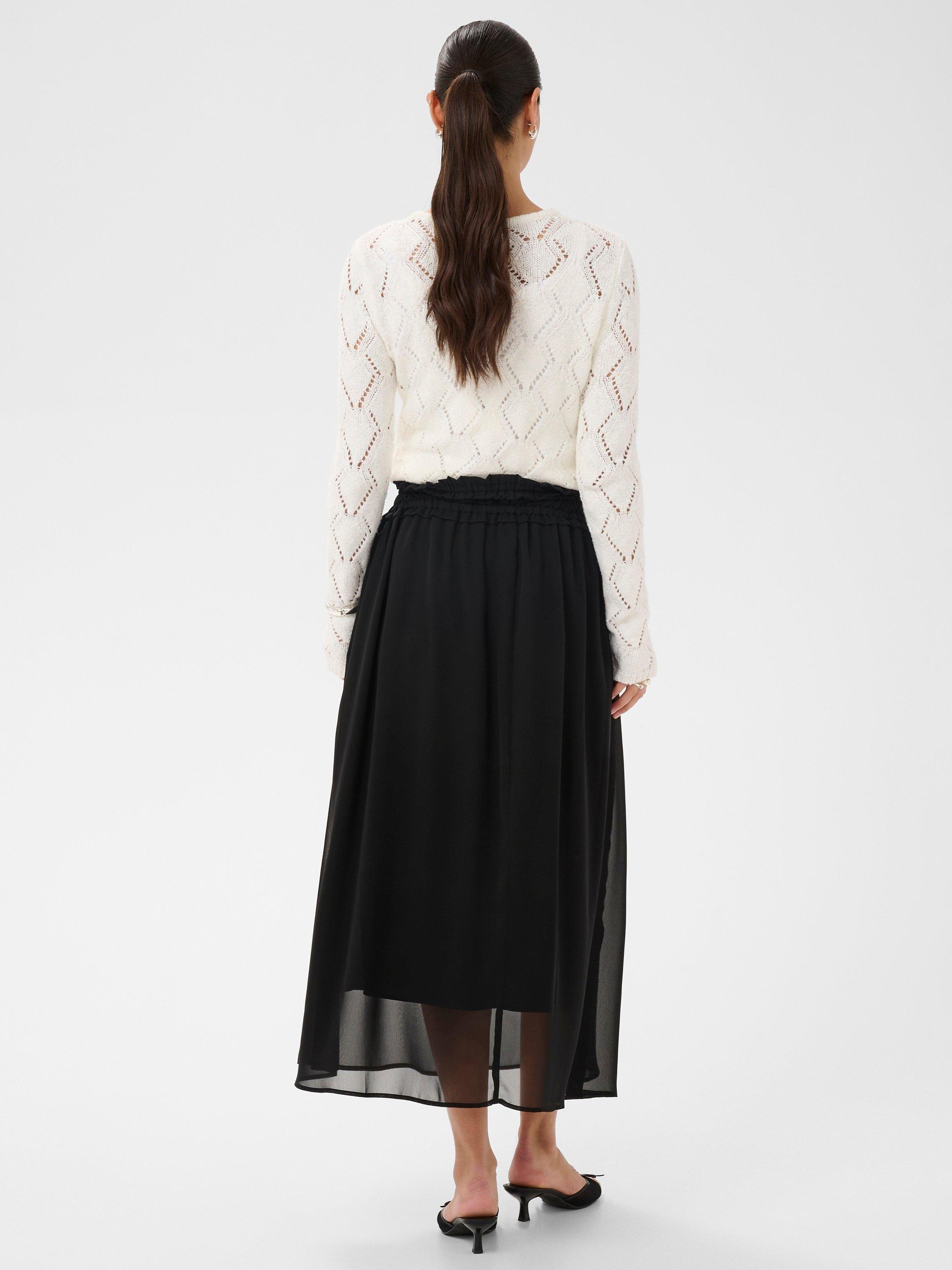 This A-line midi skirt makes every day dressing easier. With an elastic waistband for comfort, it drifts in airy layers for graceful movement.